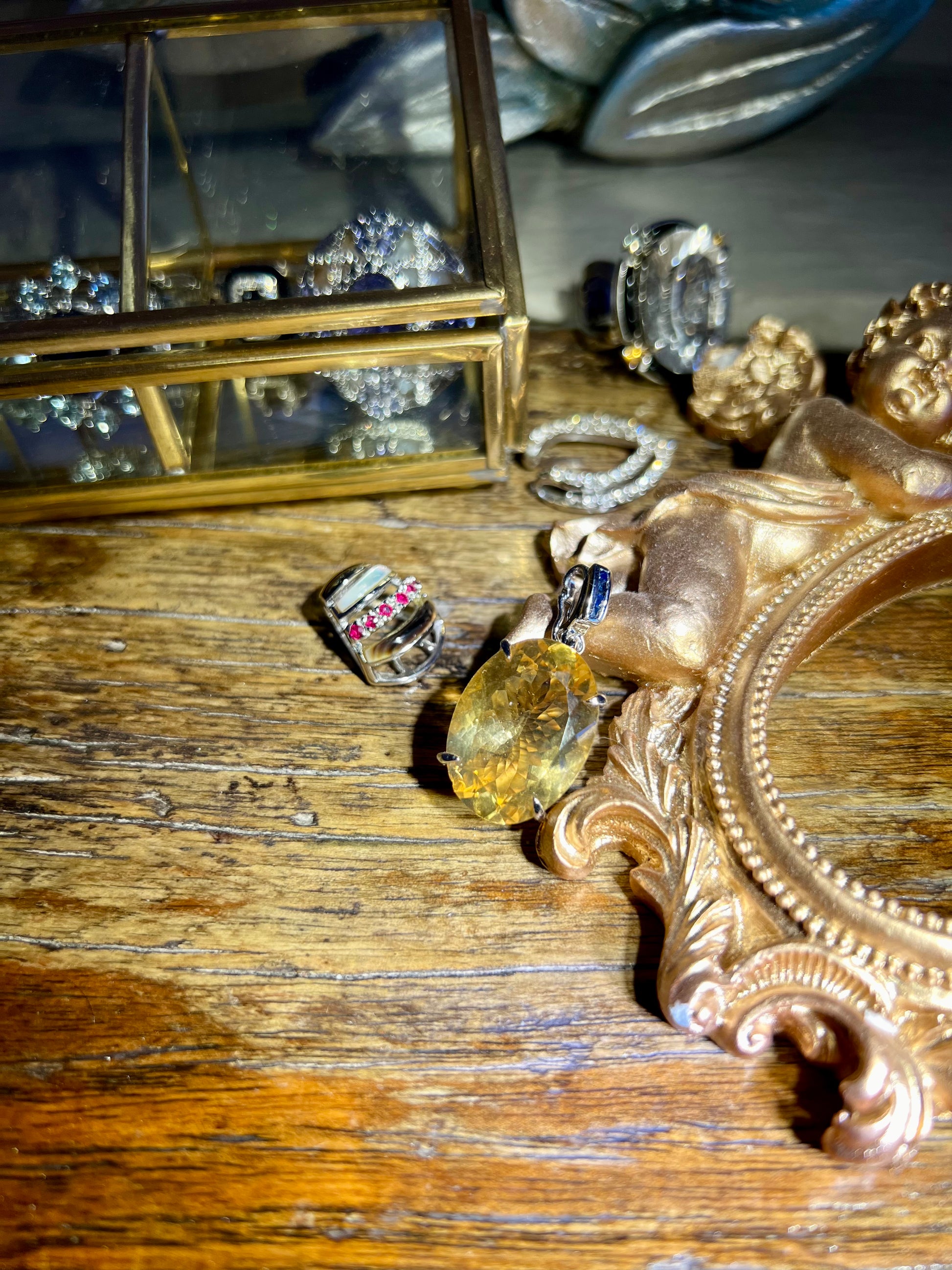 - Stone Weight: citrine total 18 carats, ruby total 0.4 carat