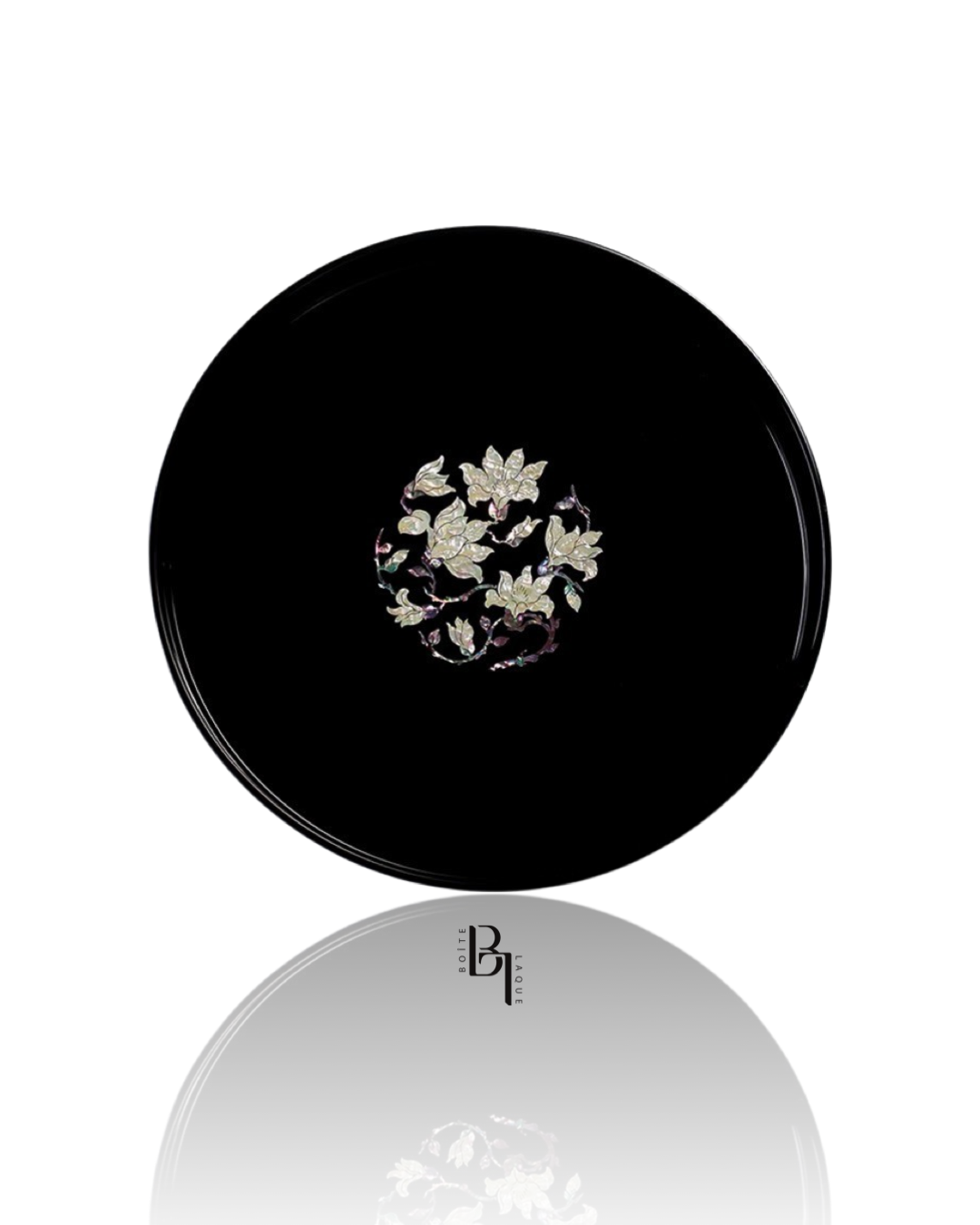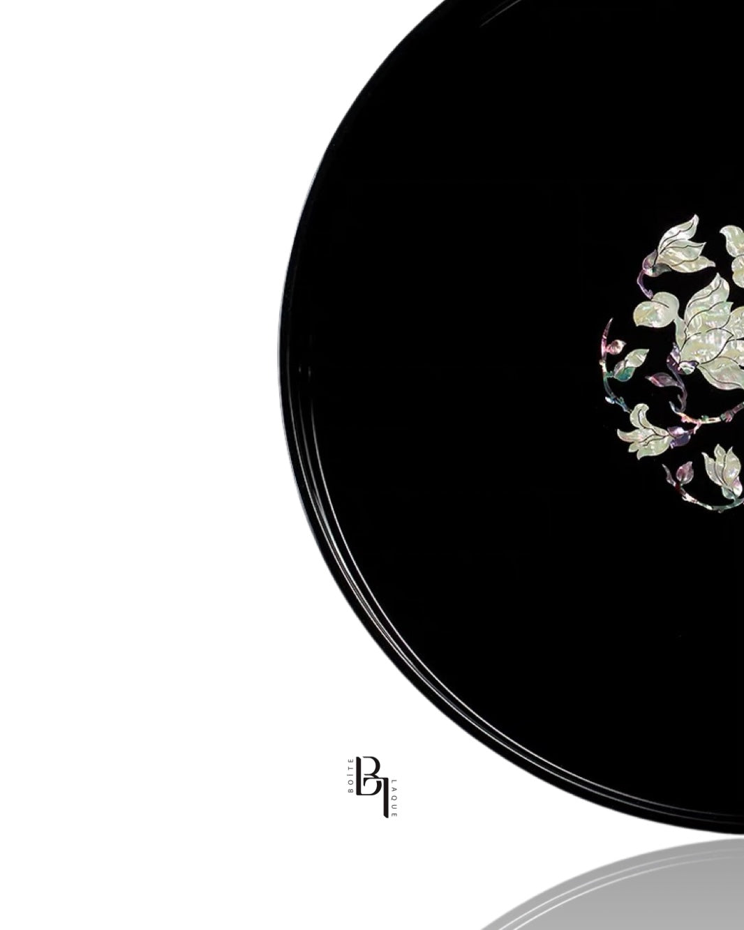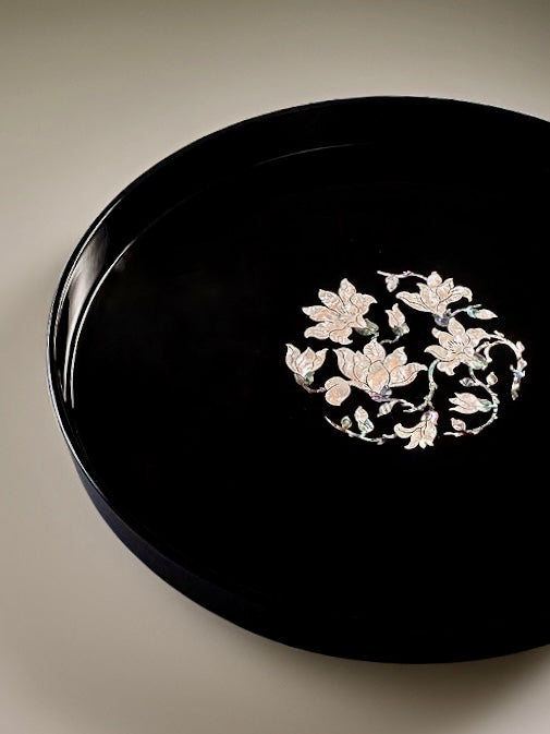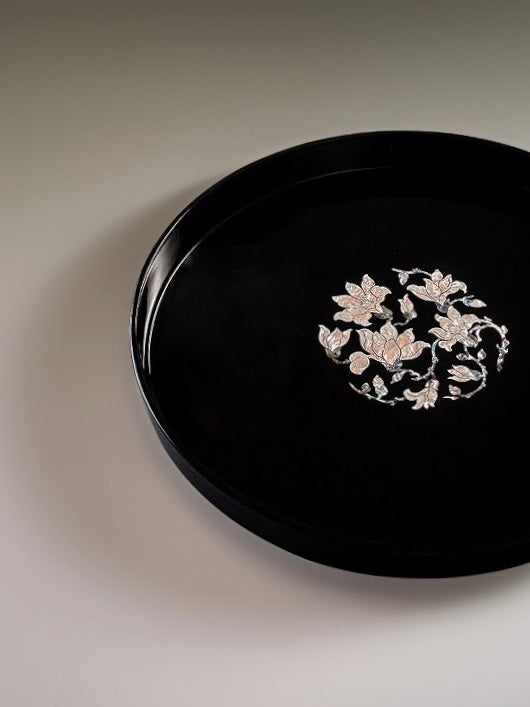 Gardenia Mother of Pearl Lacquer Wood Round Tray