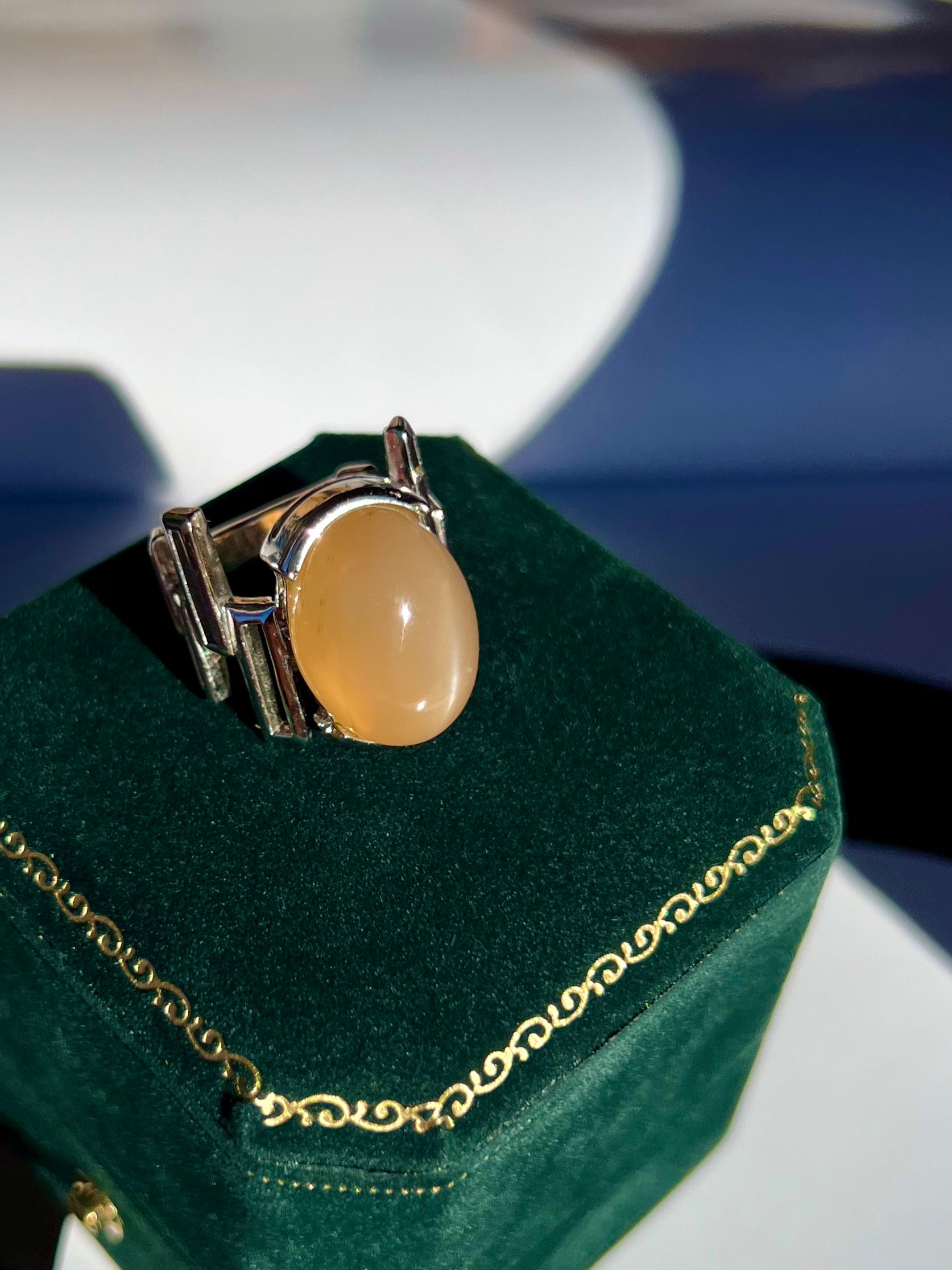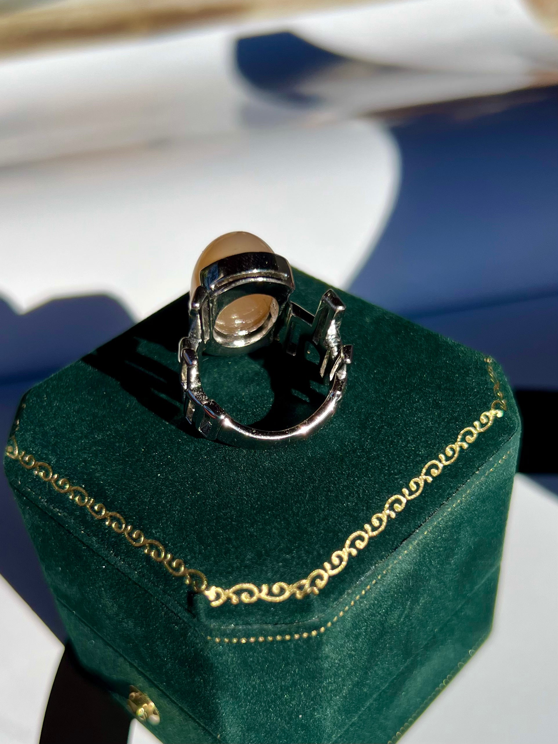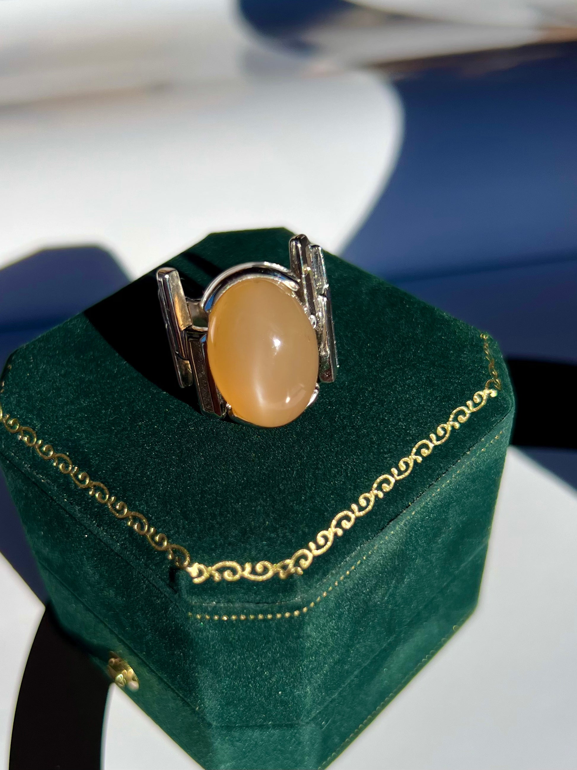 12 Carat Pomelo Cat’s Eye Moonstone Cabochon Cocktail Ring