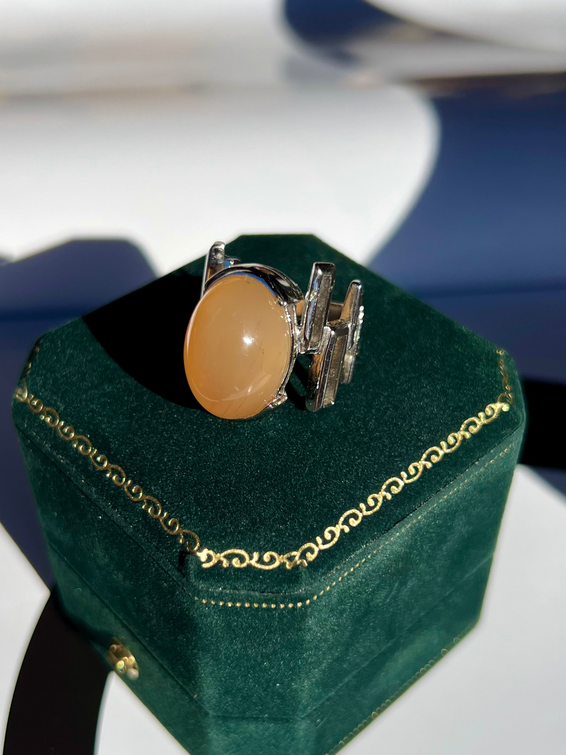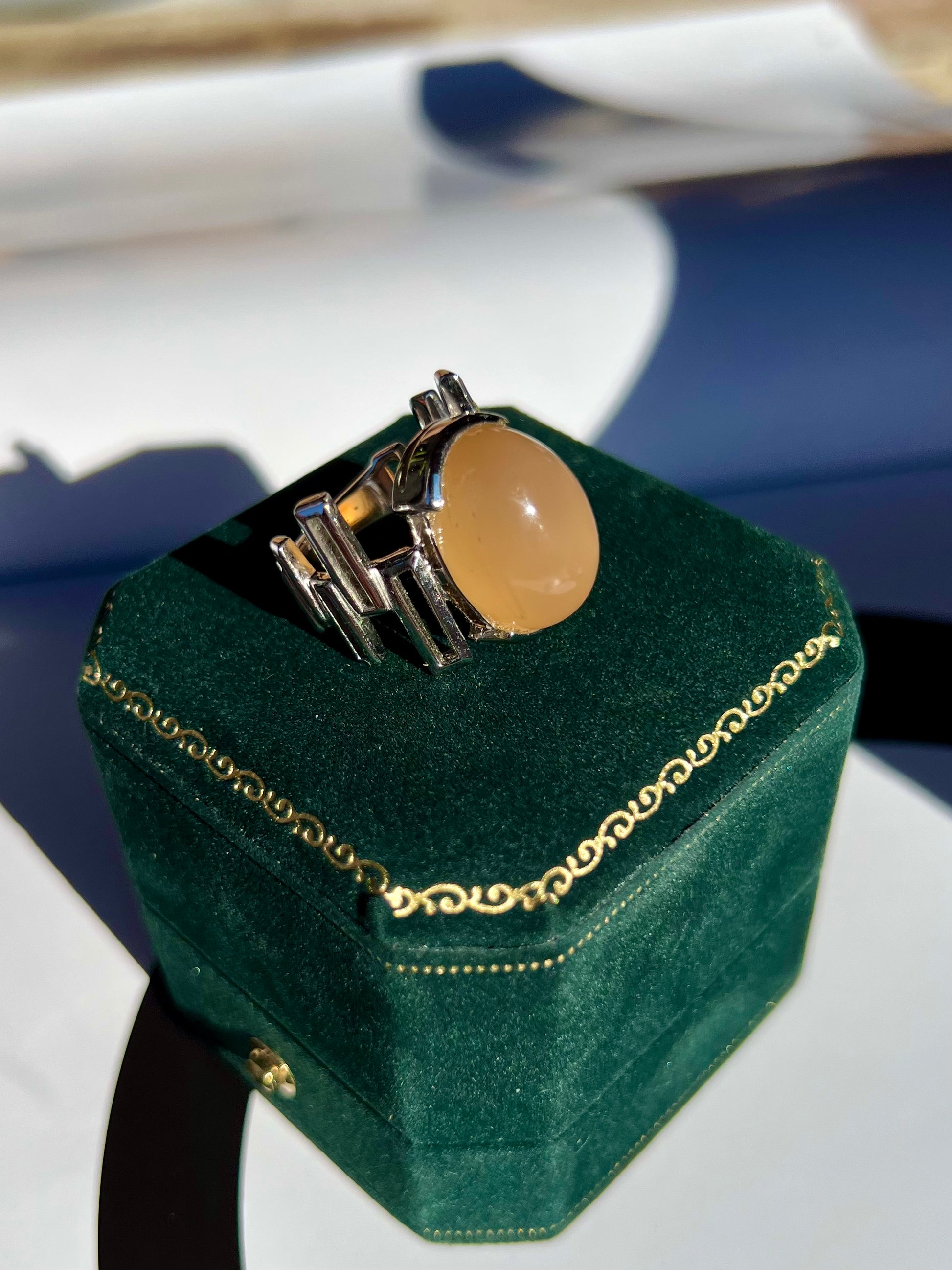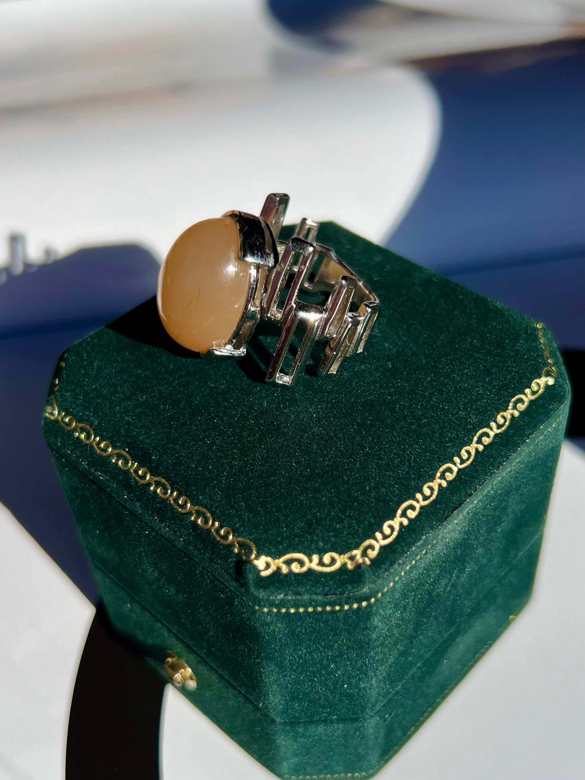 12 Carat Pomelo Cat’s Eye Moonstone Cabochon Cocktail Ring