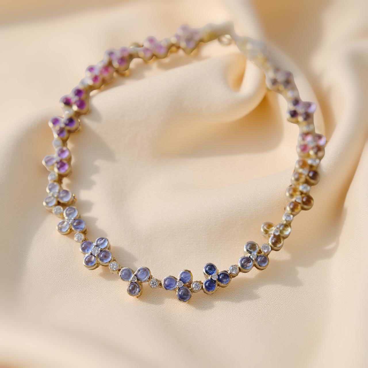 Step into a garden of color with this exquisite fancy sapphire and diamond bracelet by BOÎTE LAQUE.