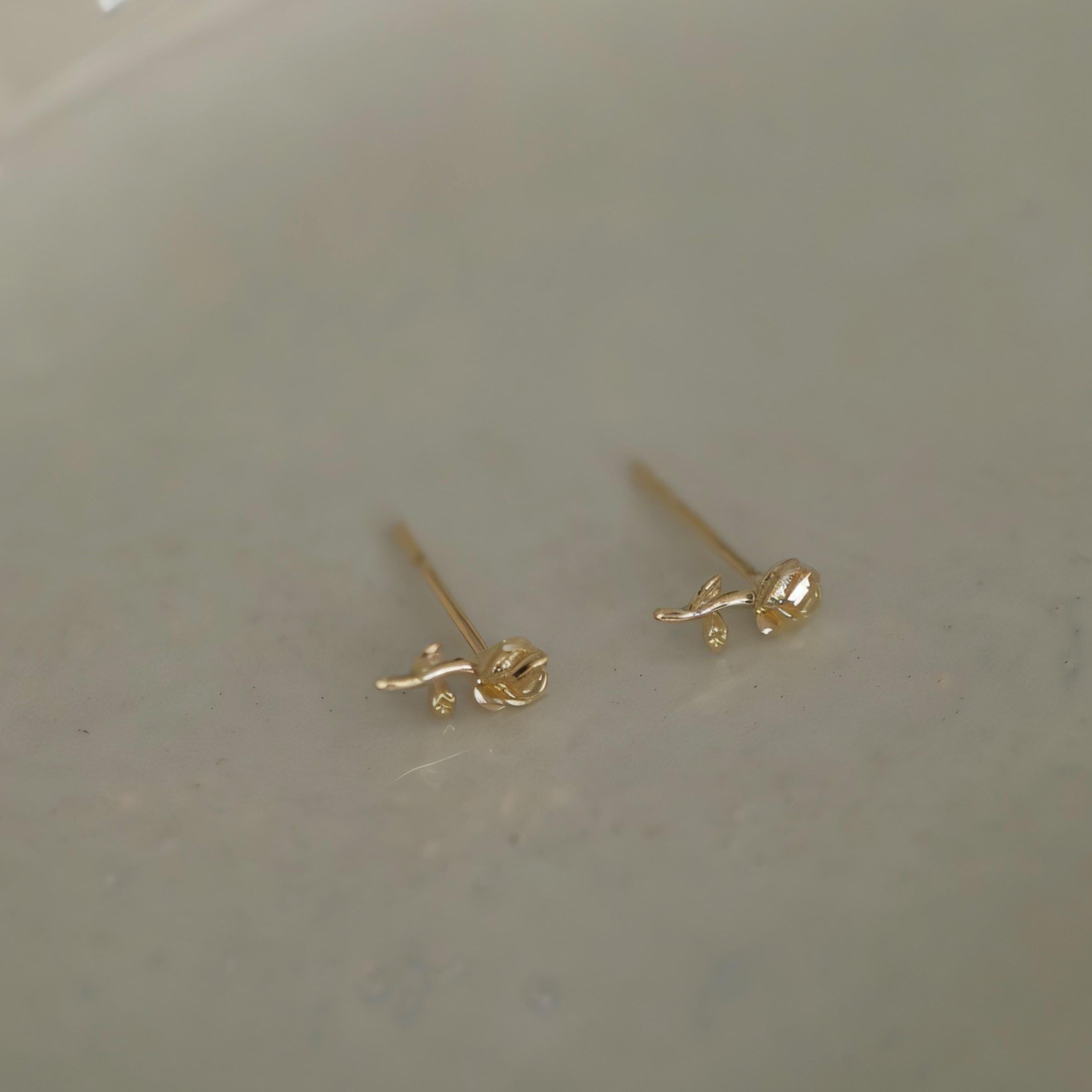 14k Solid Gold Tiny Rose Stud Earrings • Le Petit Prince Rose