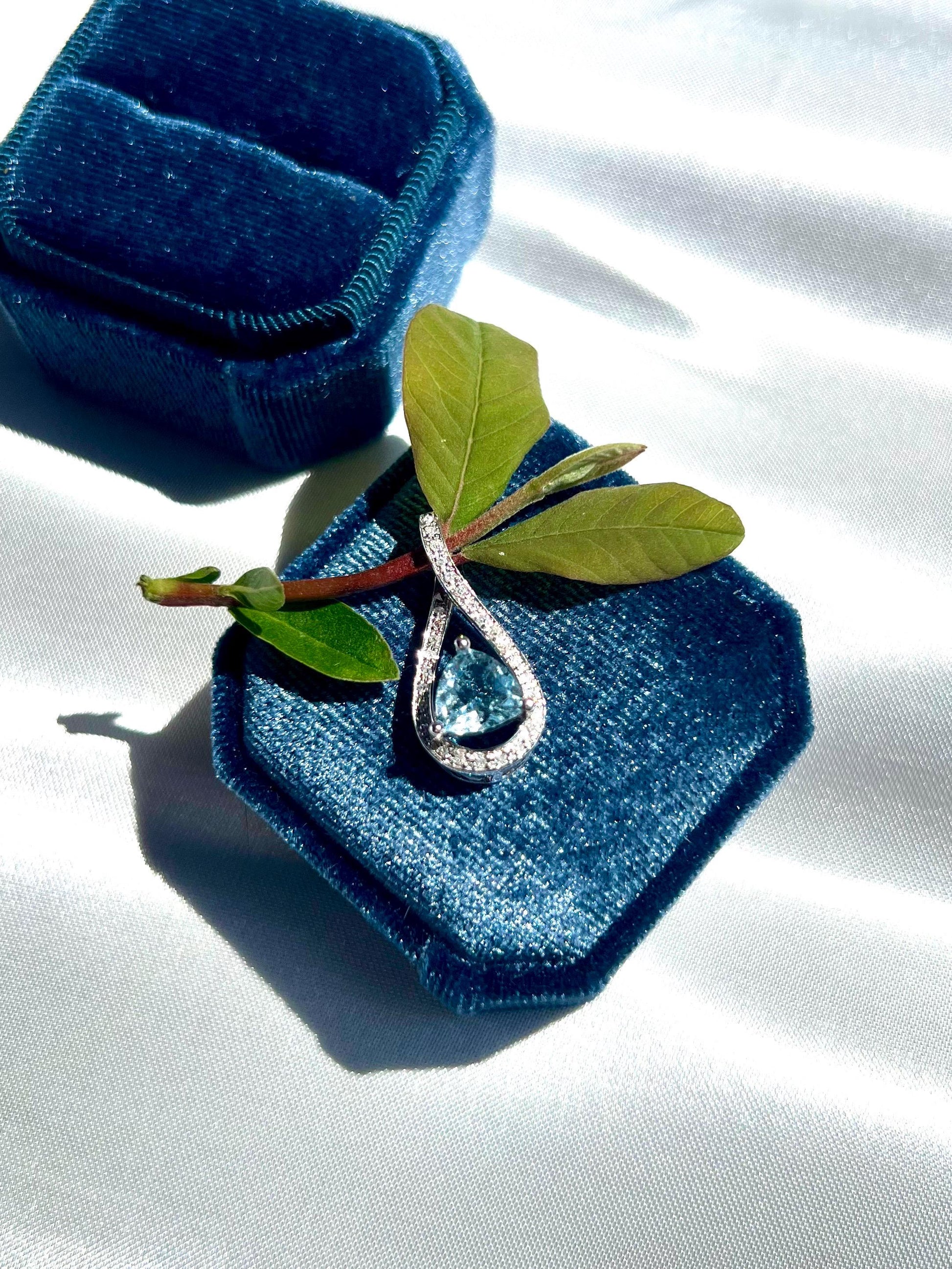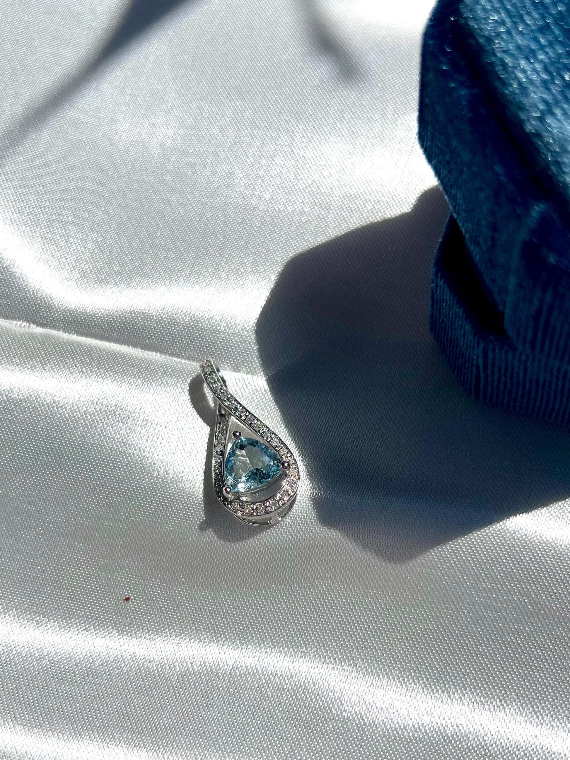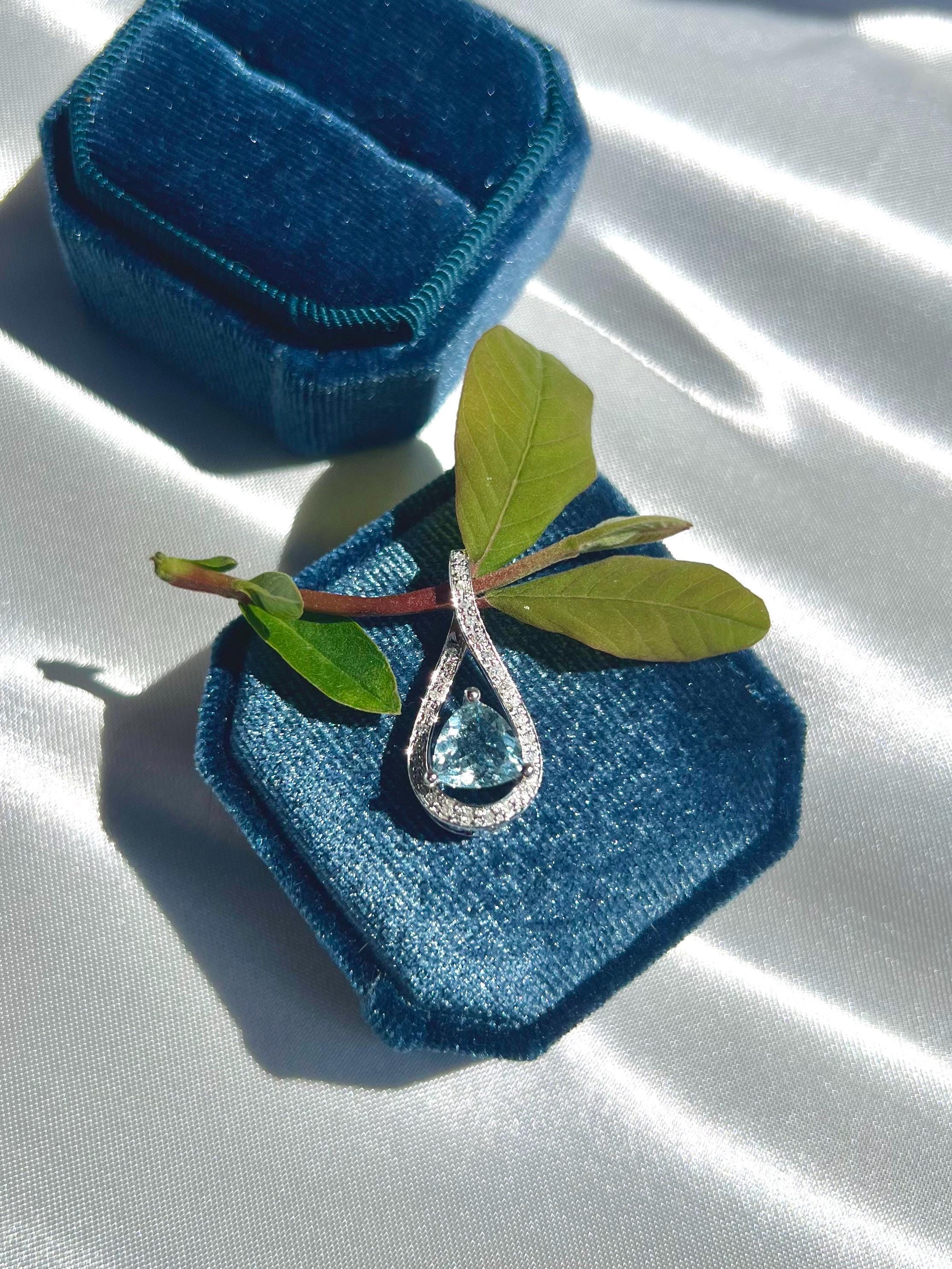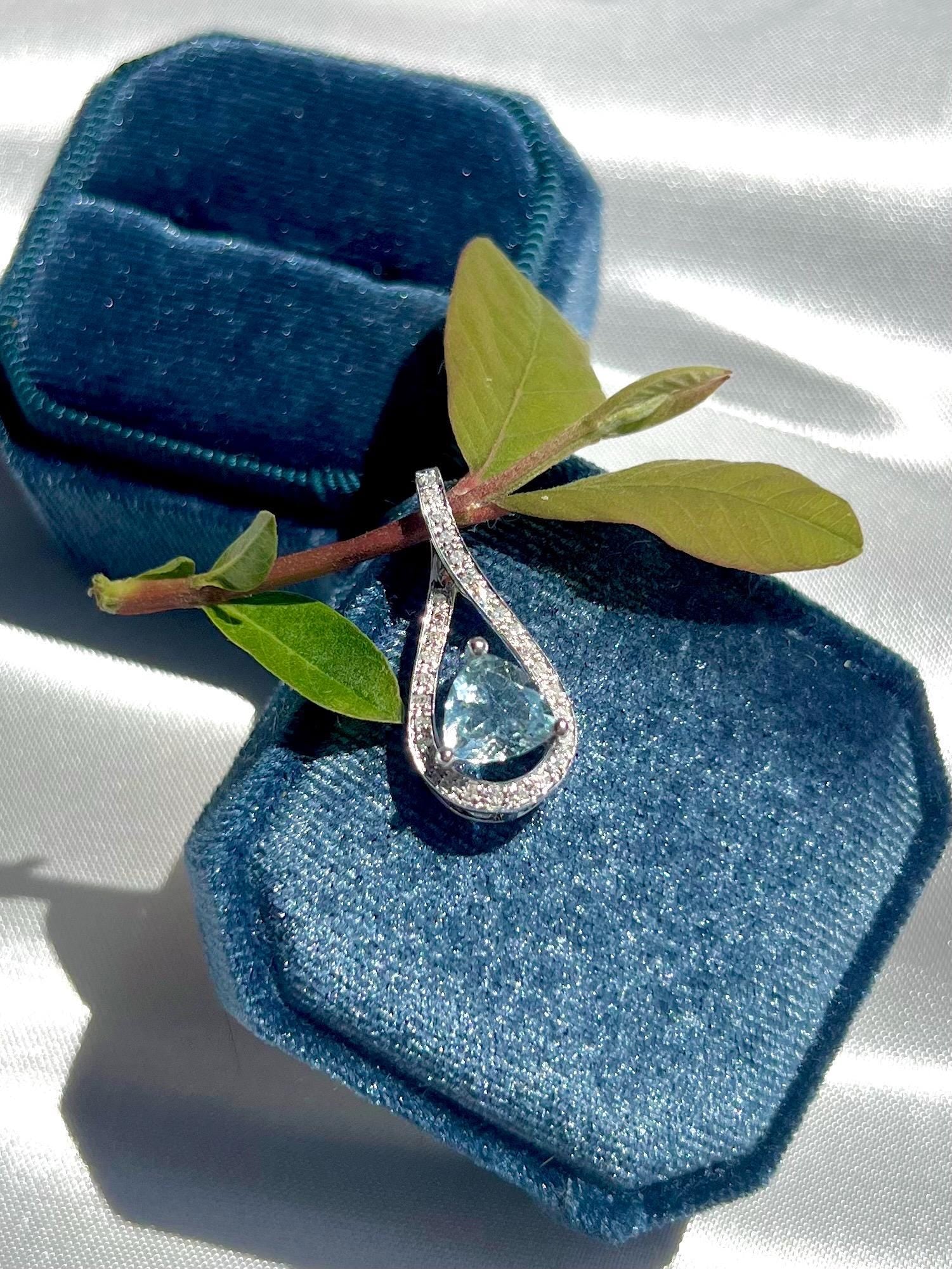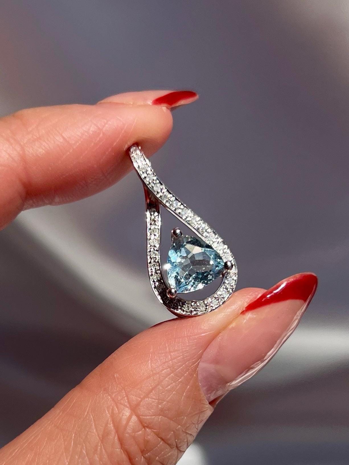 14K Solid White Gold Aquamarine & Diamond Pendant • Earth-Mined Diamonds • Elegant Teardrop Necklace , gift for her