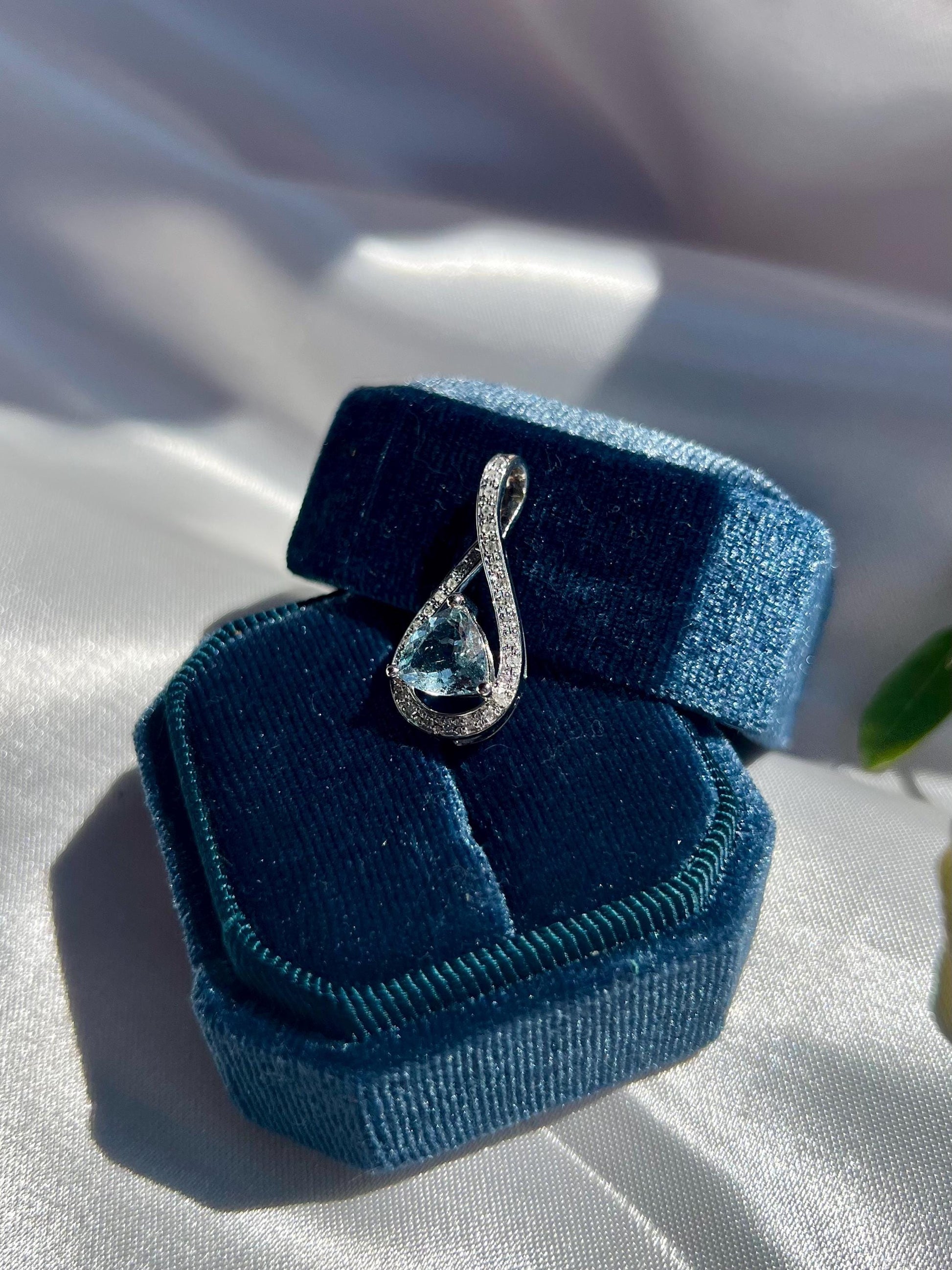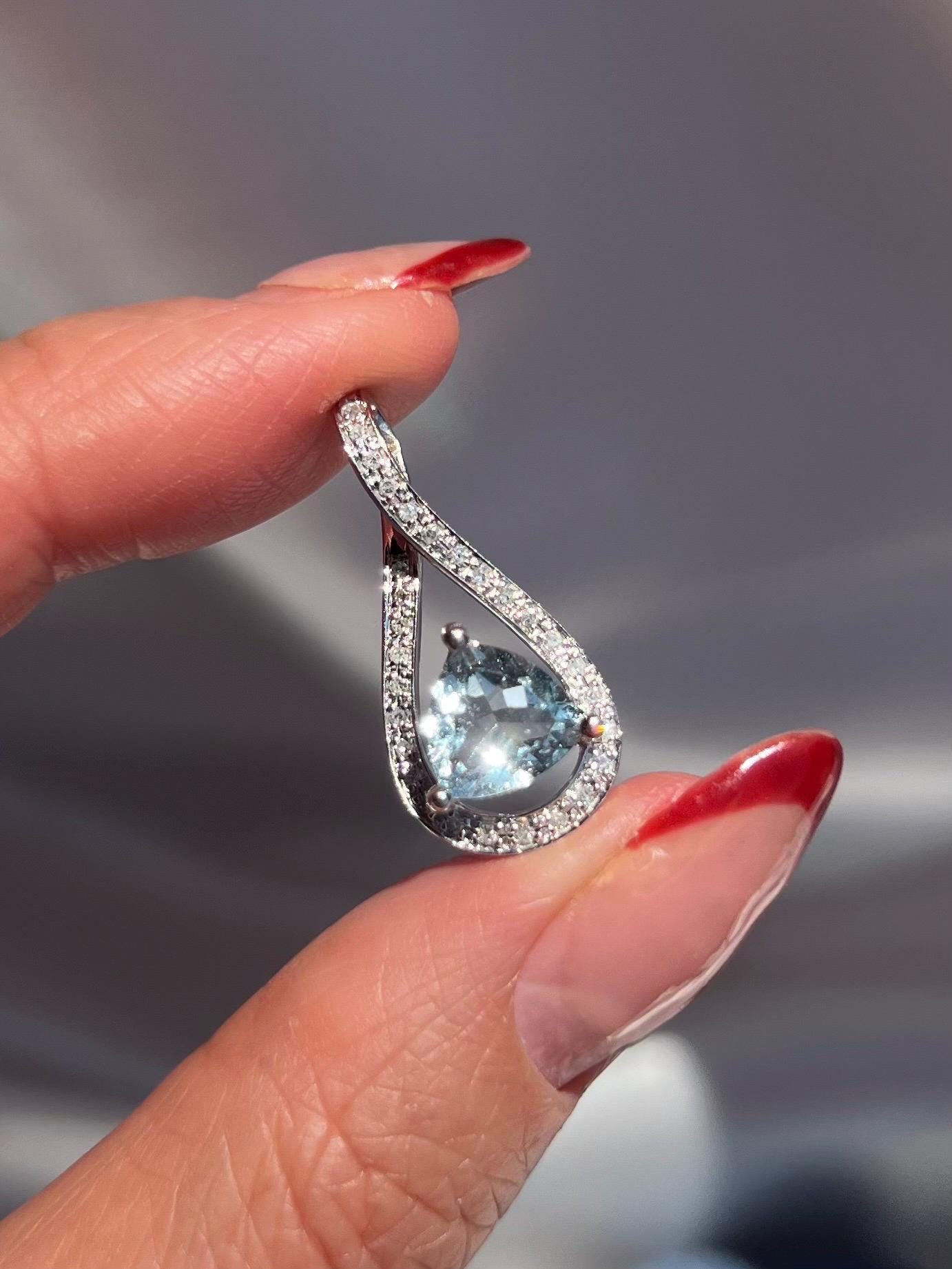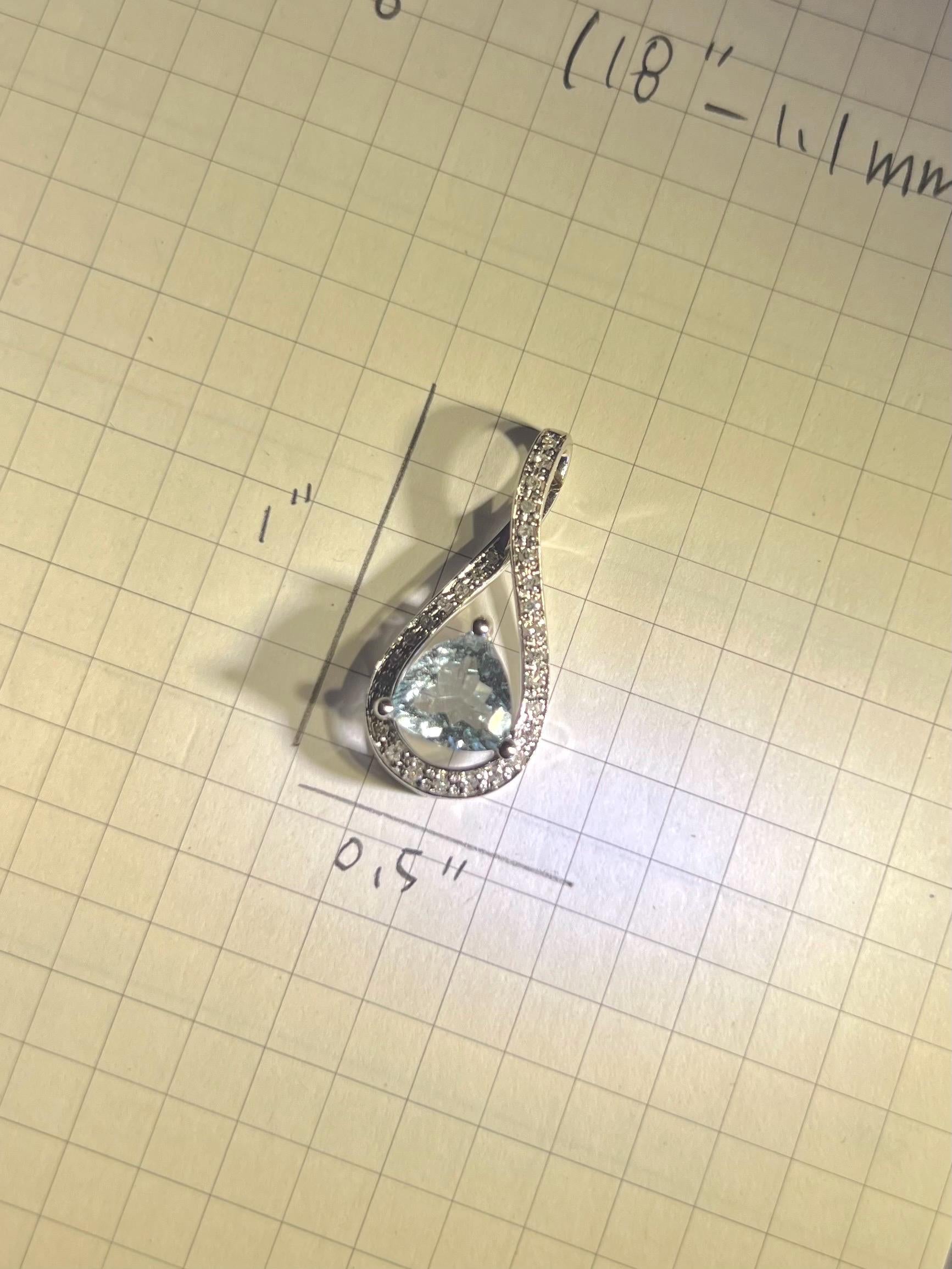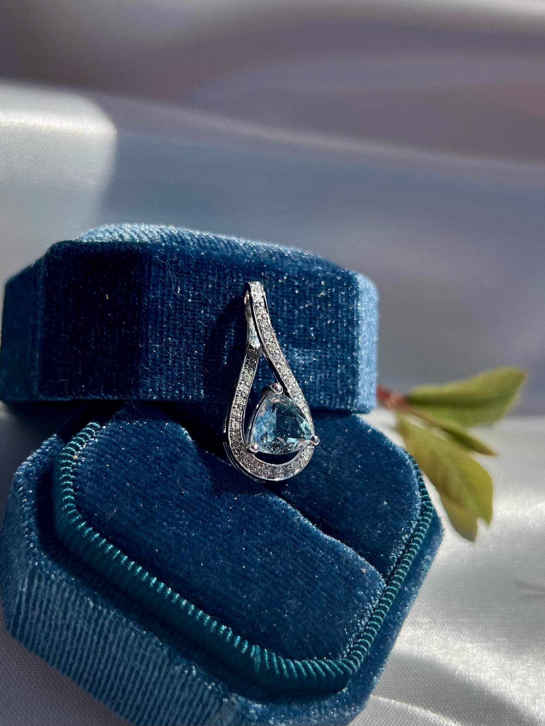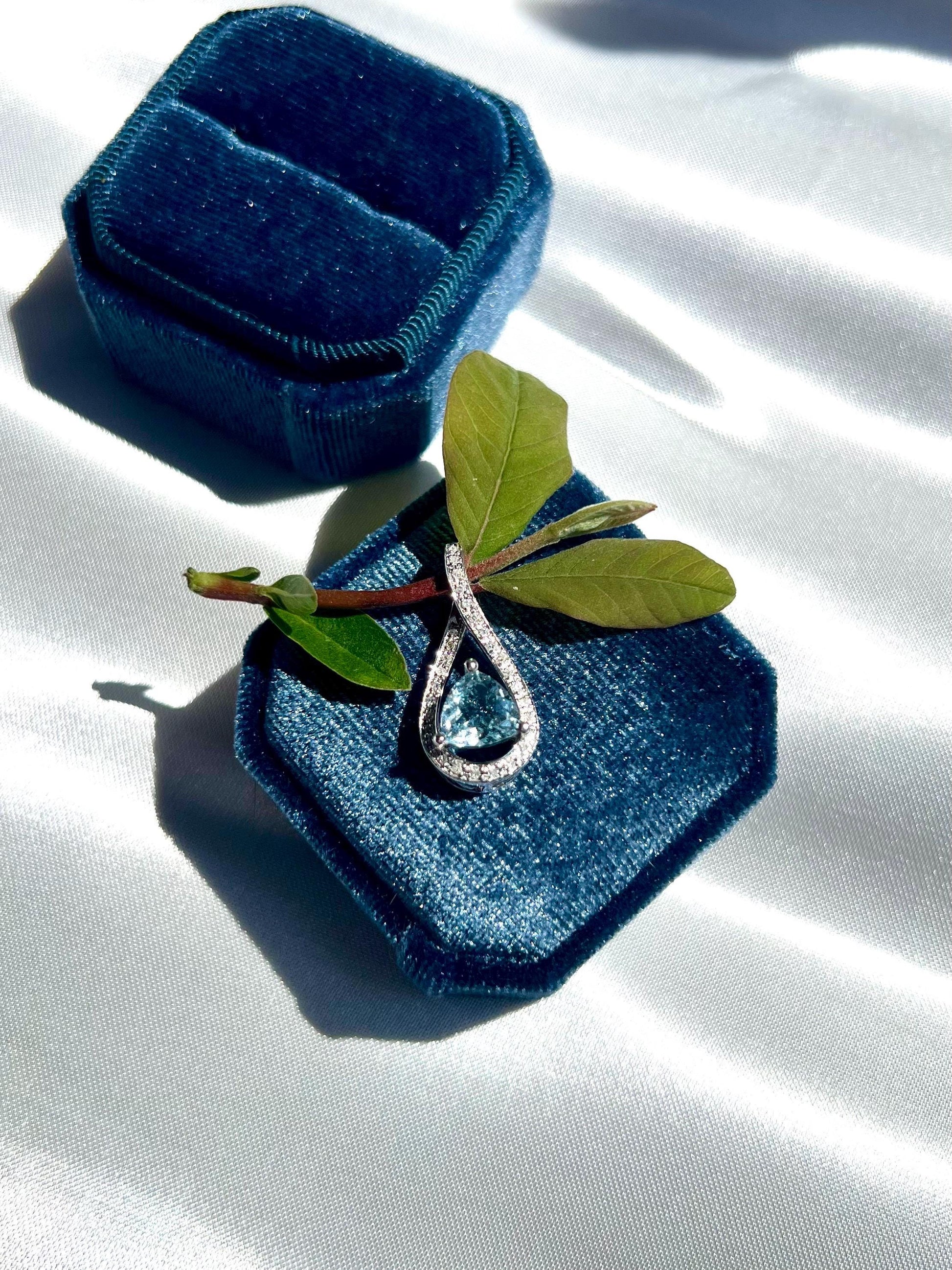 14K Solid White Gold Aquamarine & Diamond Pendant • Earth-Mined Diamonds • Elegant Teardrop Necklace , gift for her