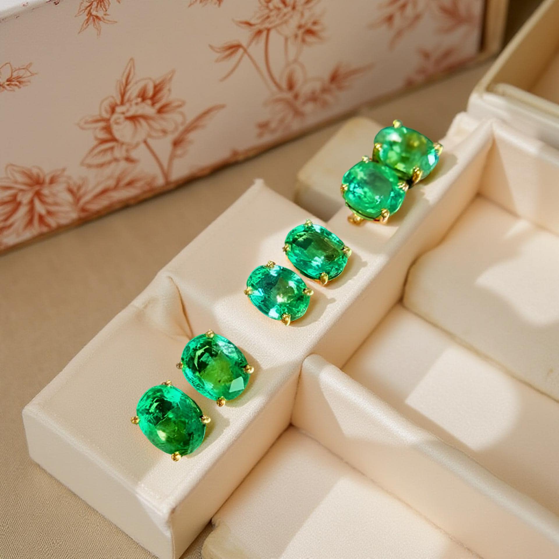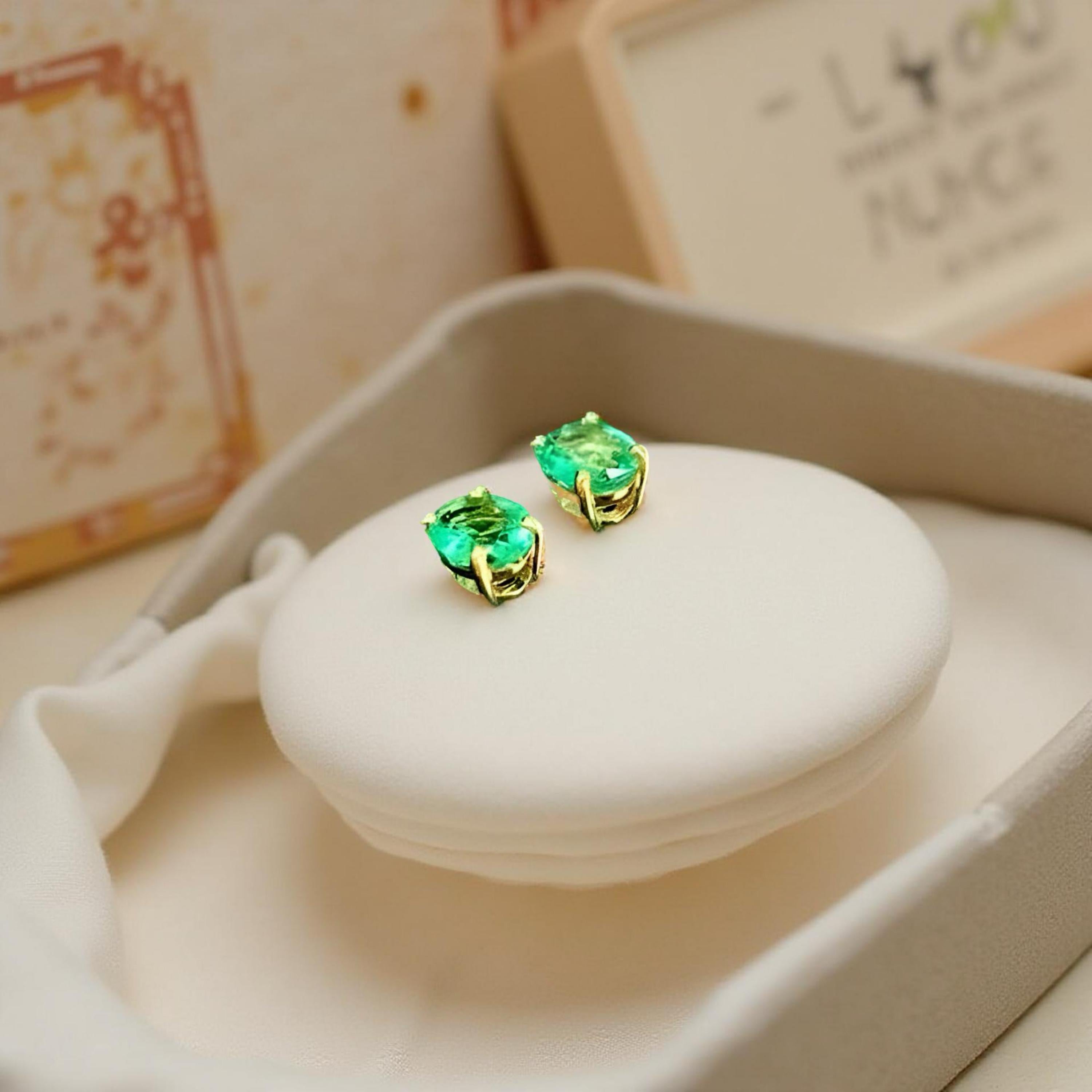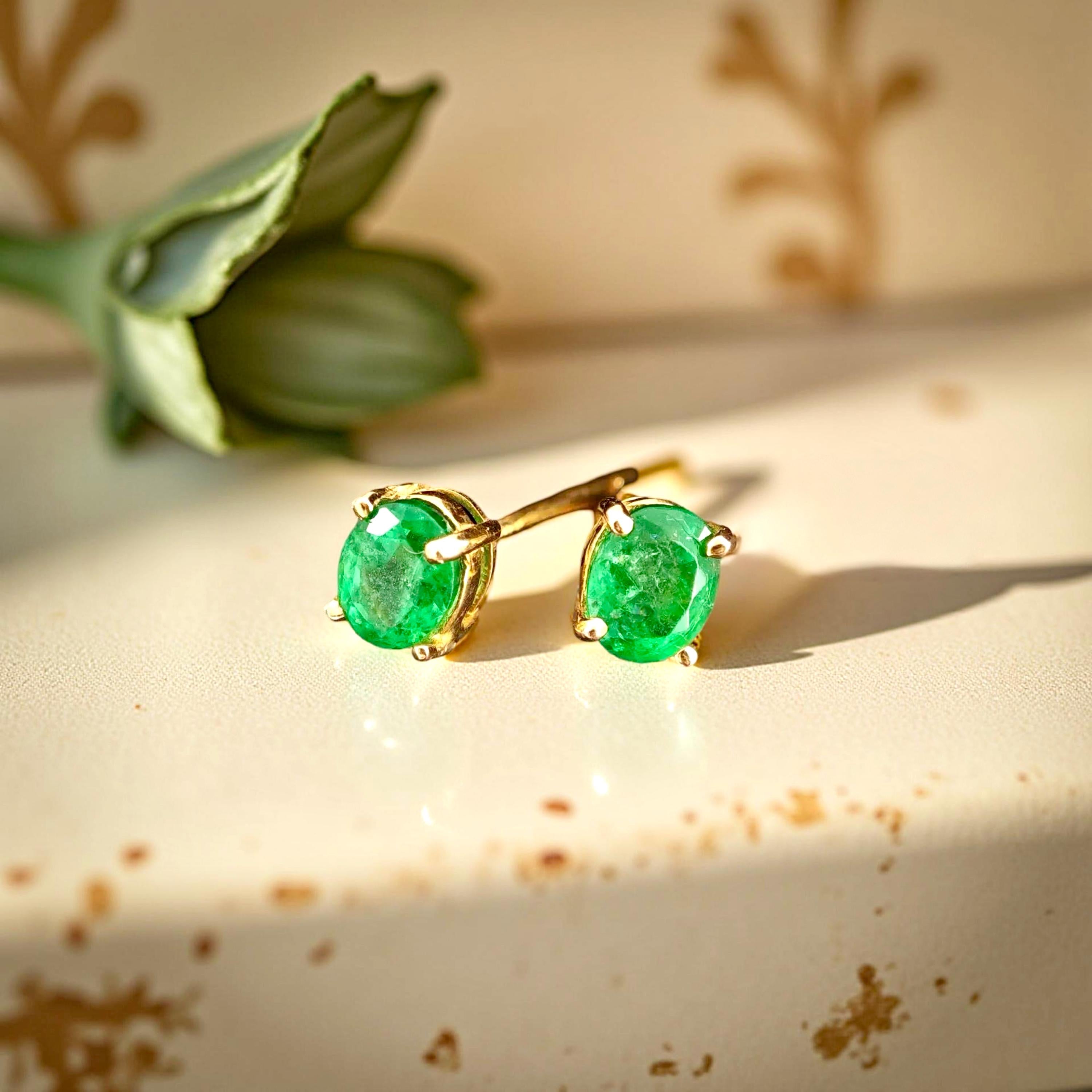These natural Colombian emerald studs are a little luxury we reach for every day—refined, radiant, and effortlessly timeless. Set in 18k solid gold, each genuine emerald is hand-selected for its vivid green hue and clarity, sourced from the famed mines of Colombia.