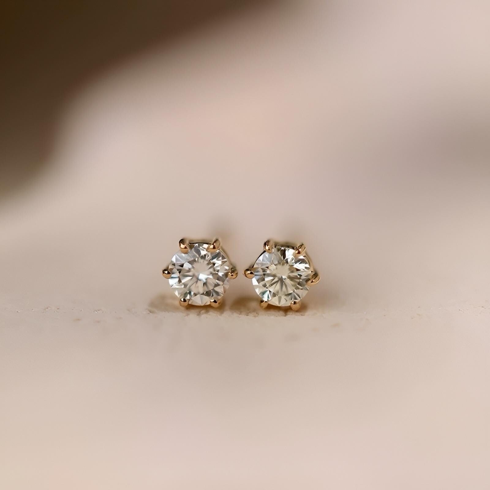 Carefully crafted with round-cut natural diamonds, these timeless stud earrings feature a six-prong setting made of durable 18K solid gold that won’t tarnish or fade.