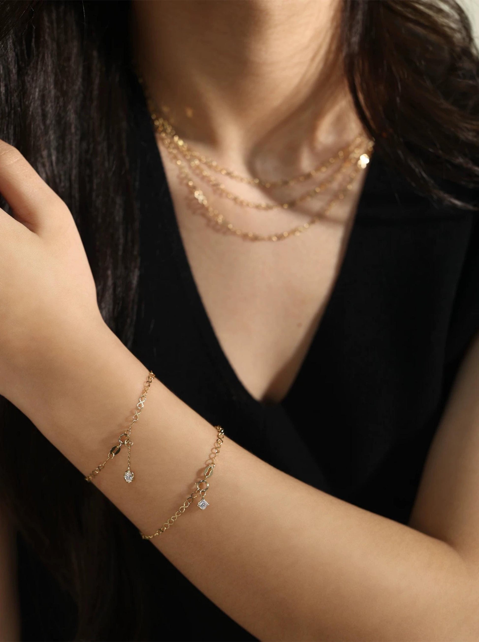 • Available as a necklace or bracelet — adjustable lengths