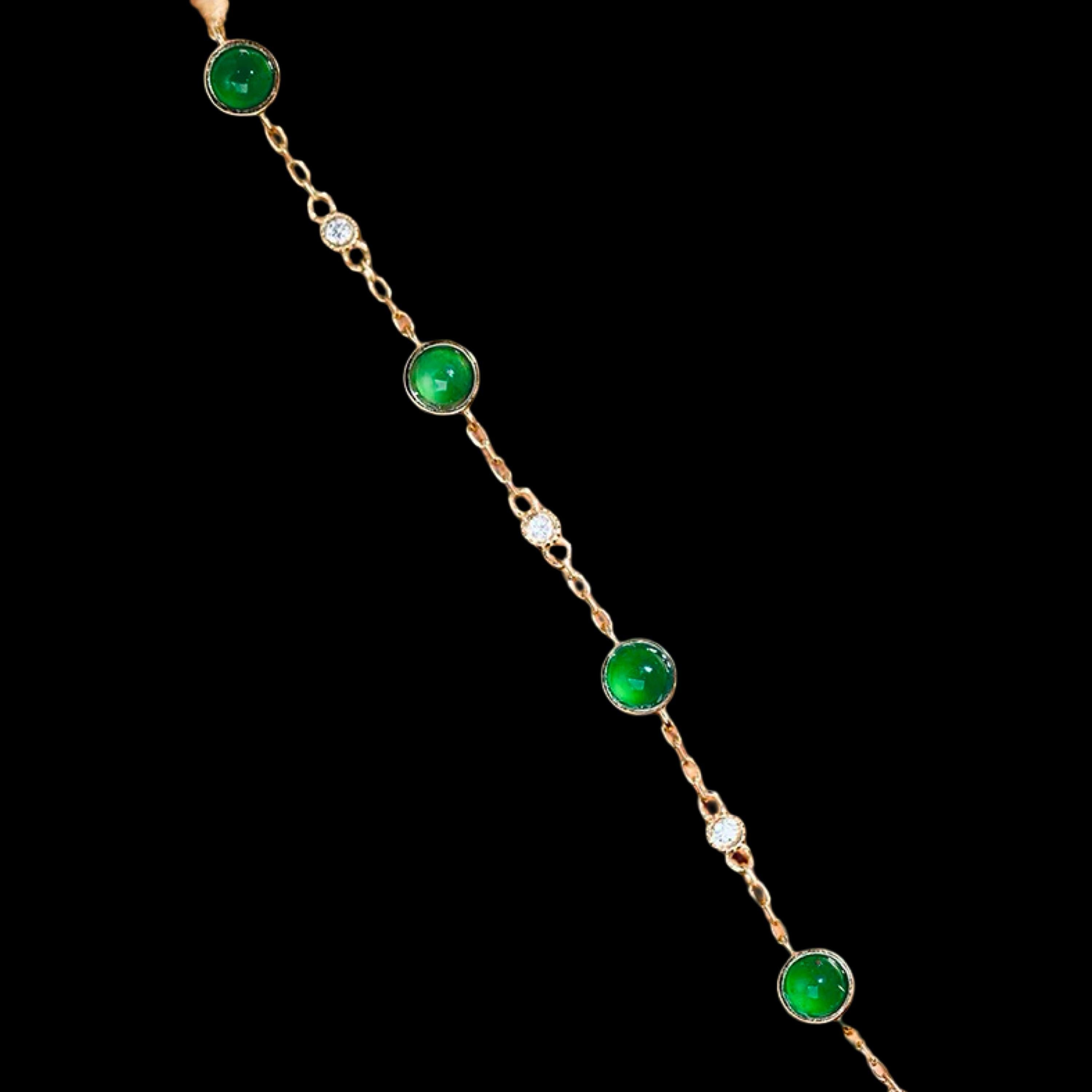 18K Solid Gold Natural Jadeite Jade and Diamond Bracelet