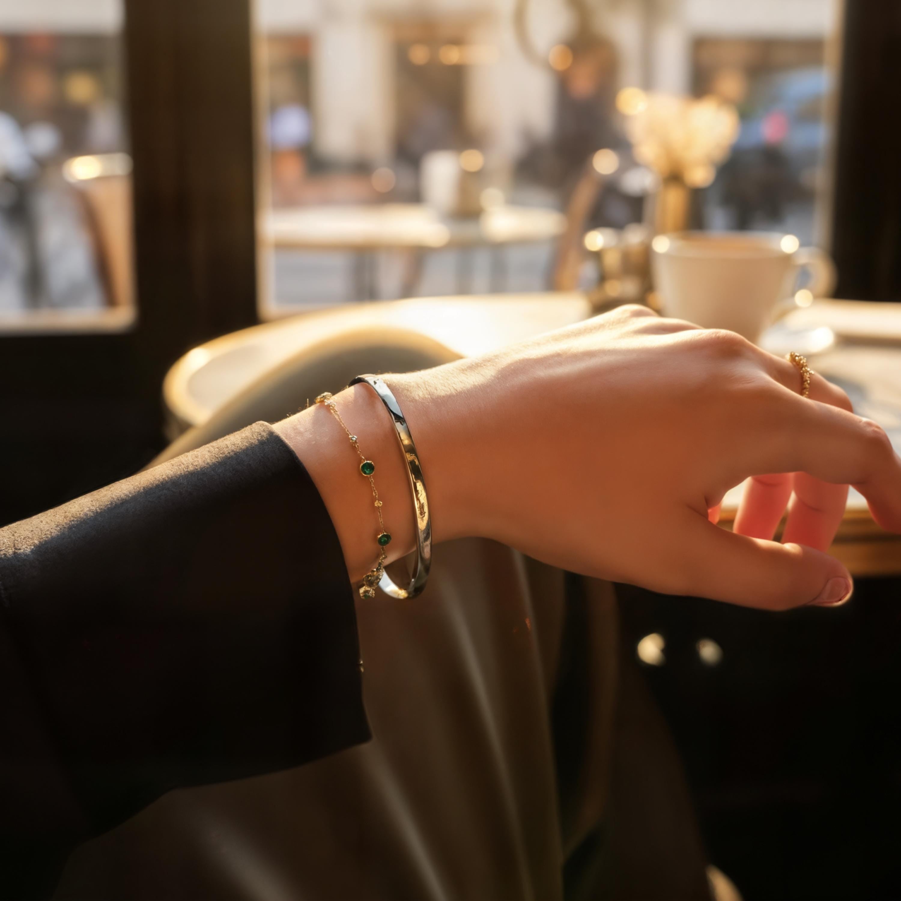 Lightweight and timeless, it rests gently on the wrist — sophisticated enough for an evening out, yet subtle enough for every day.