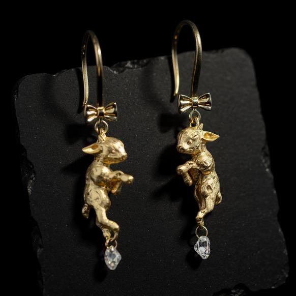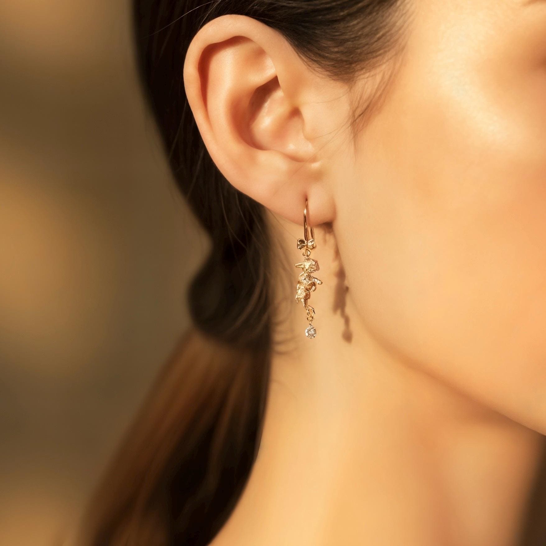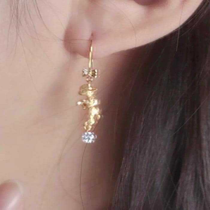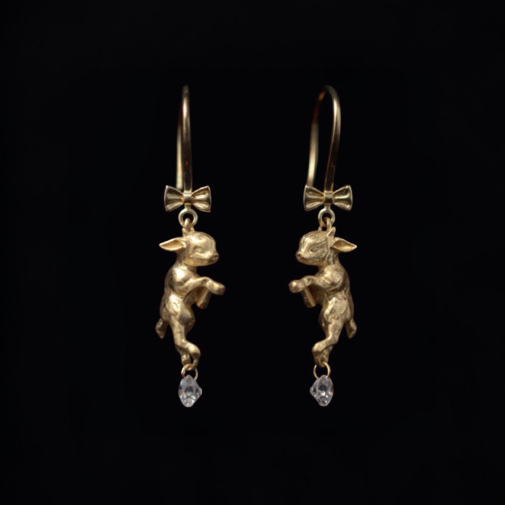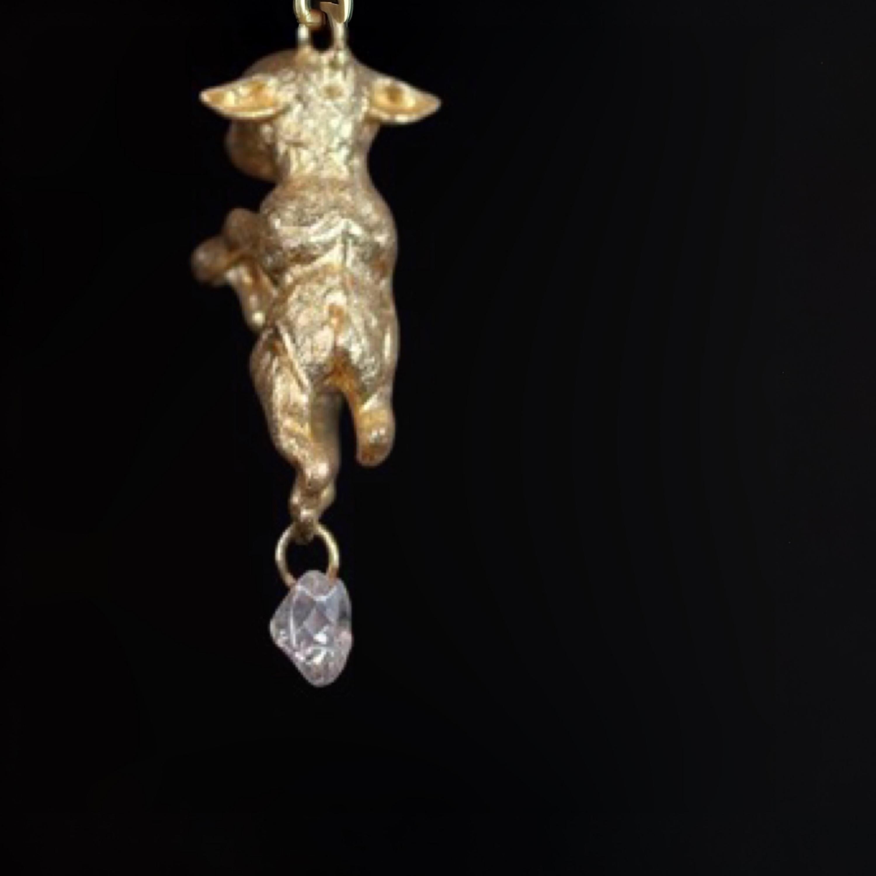 Each pair is sculpted entirely in solid 18K gold, detailed with a pulled-silk texture to evoke the softness of fleece. Beneath each lamb swings a brilliant diamond, precision-cut and hand-set to shimmer with every movement — delicate, meaningful, and alive with light.