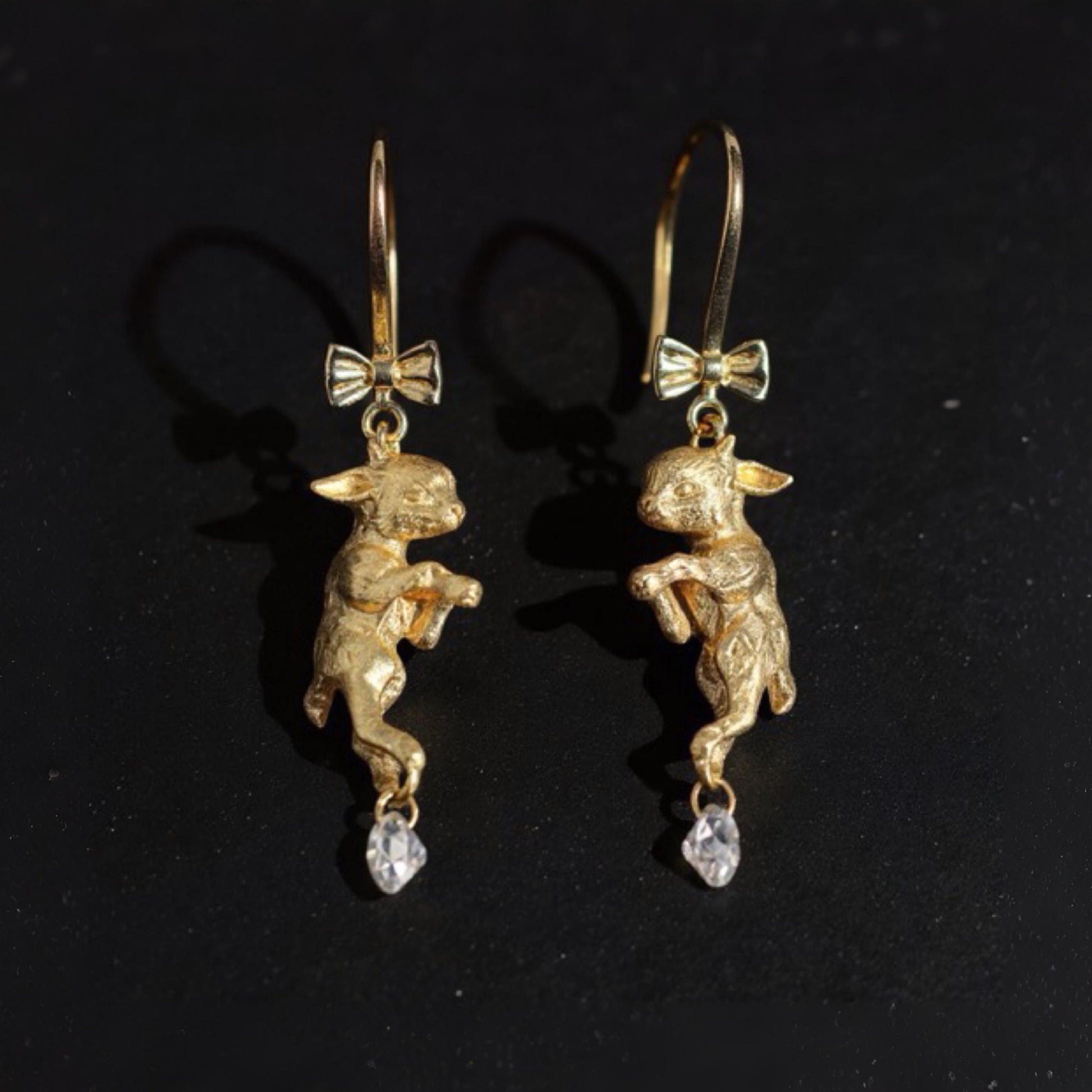 18K Solid Gold Little Lamb Diamond Drop Earrings | Fine Animal Jewelry Gift | Holiday Luxury Gold Earrings for Her