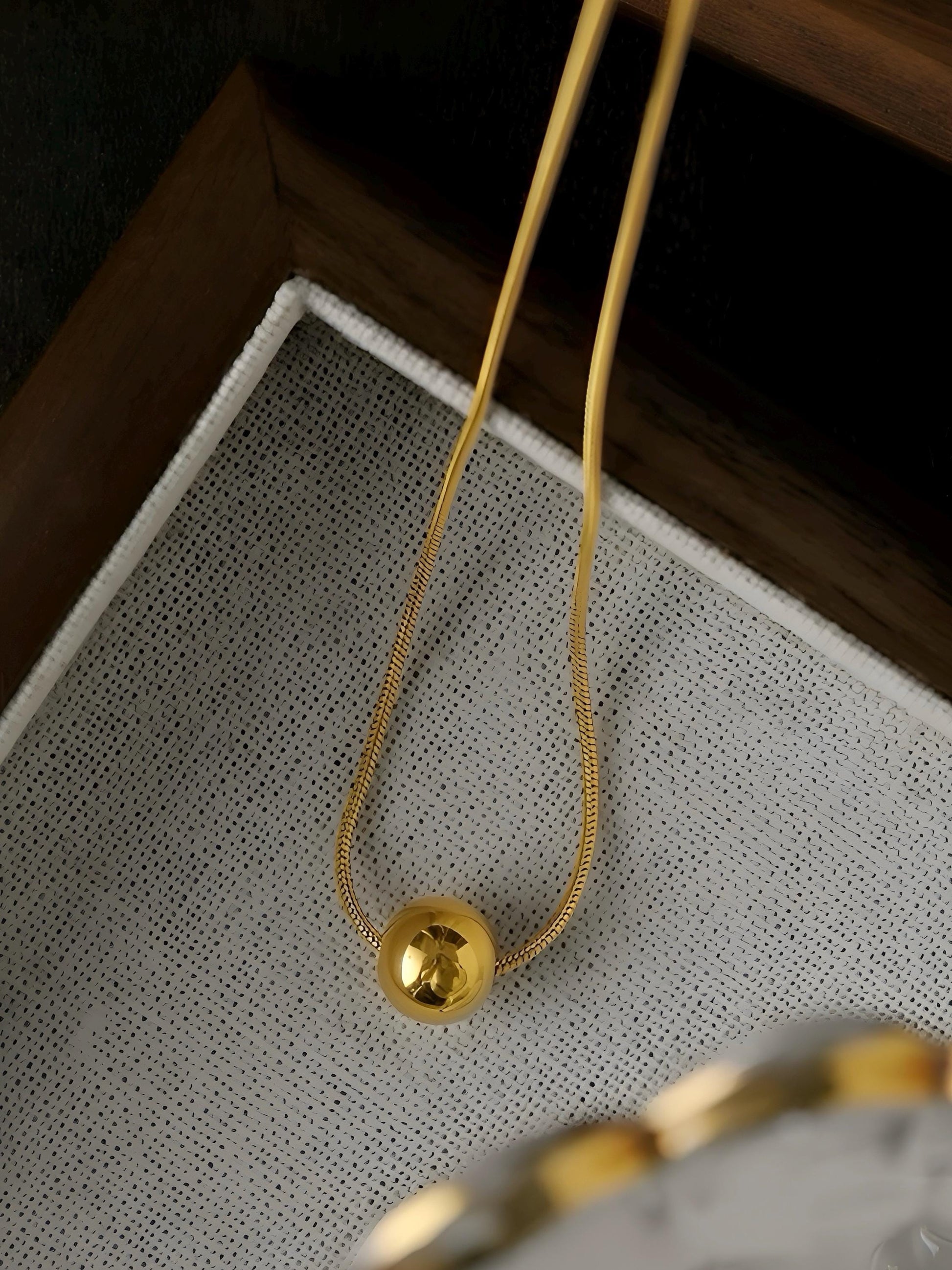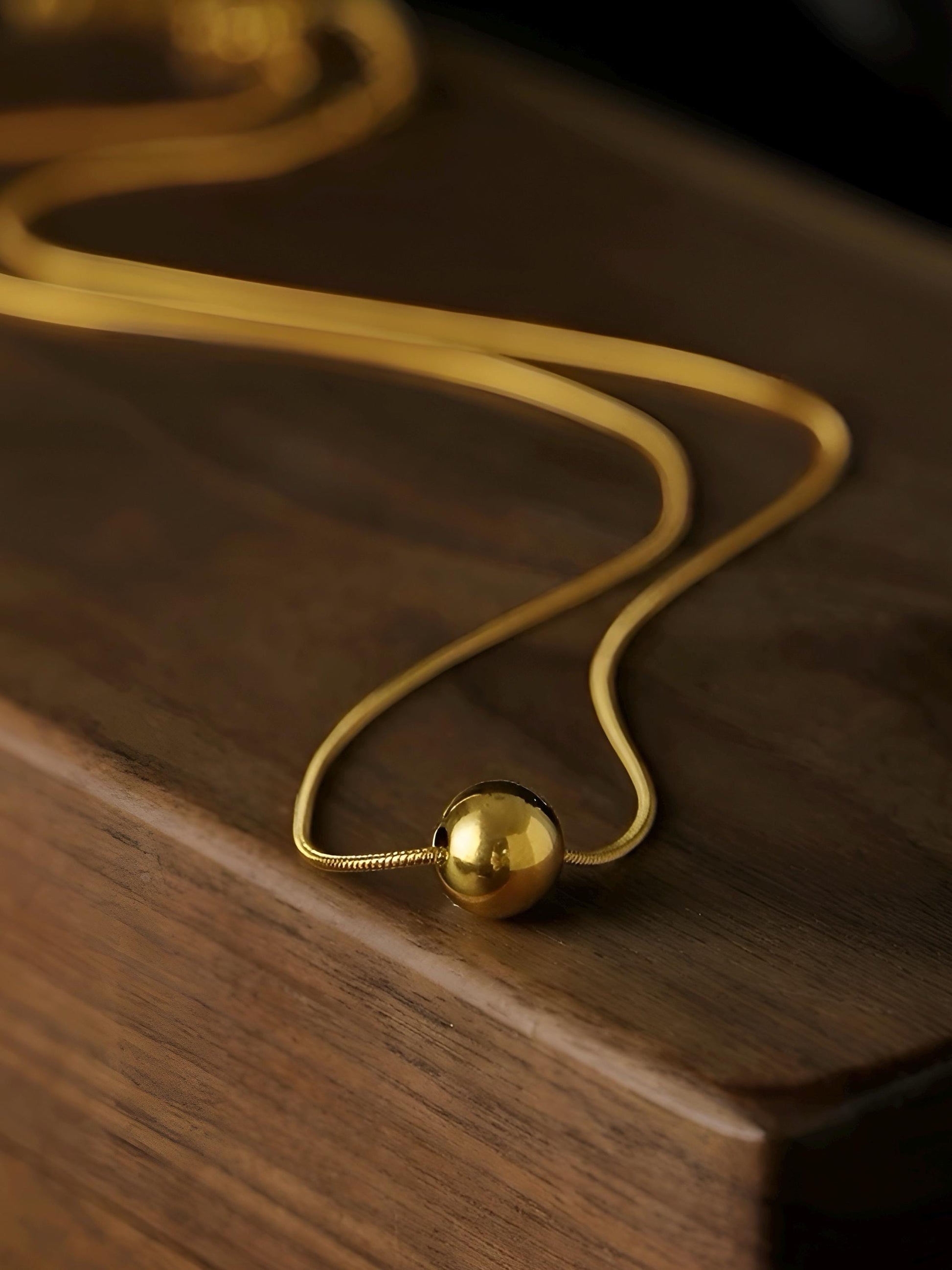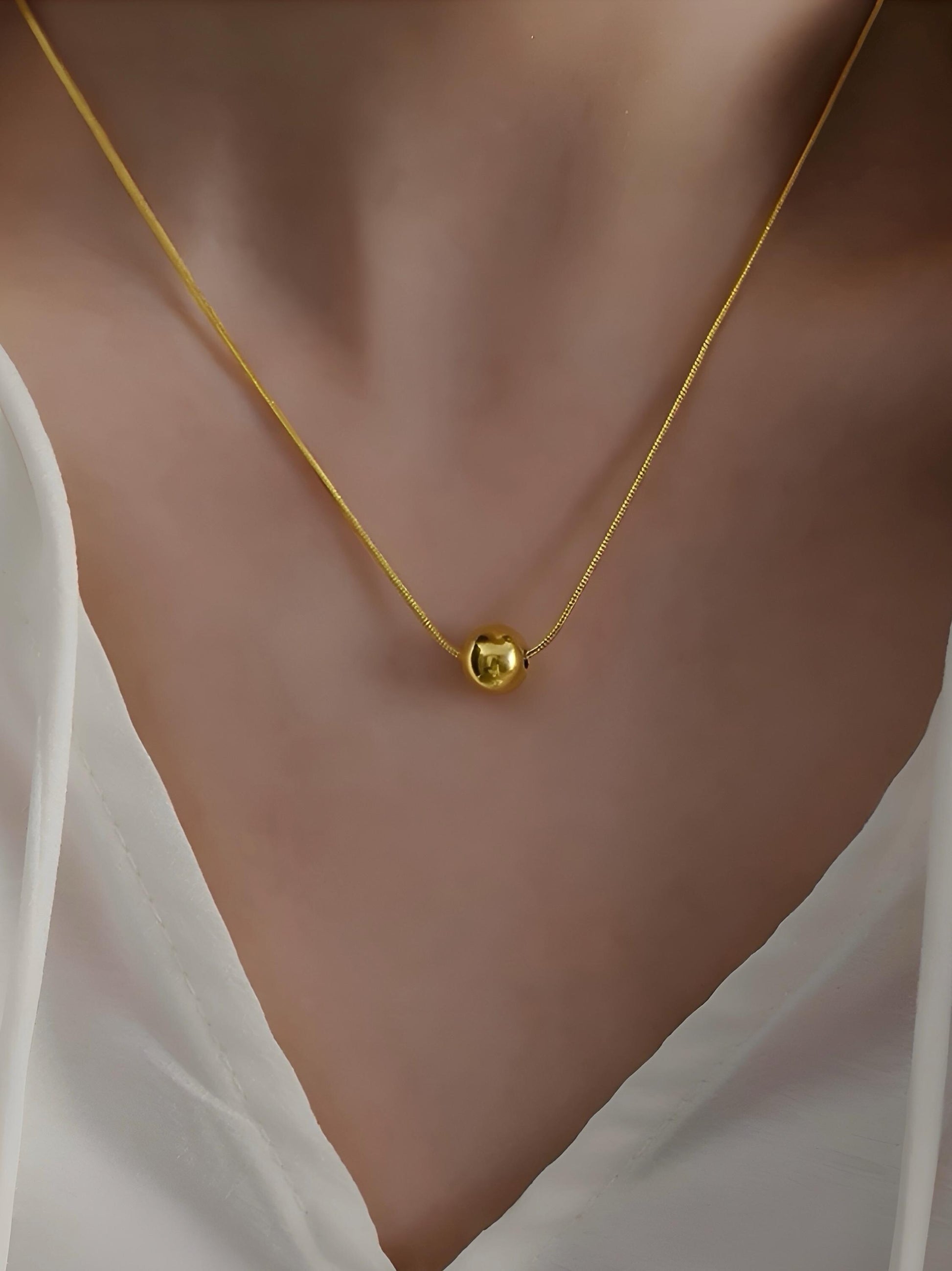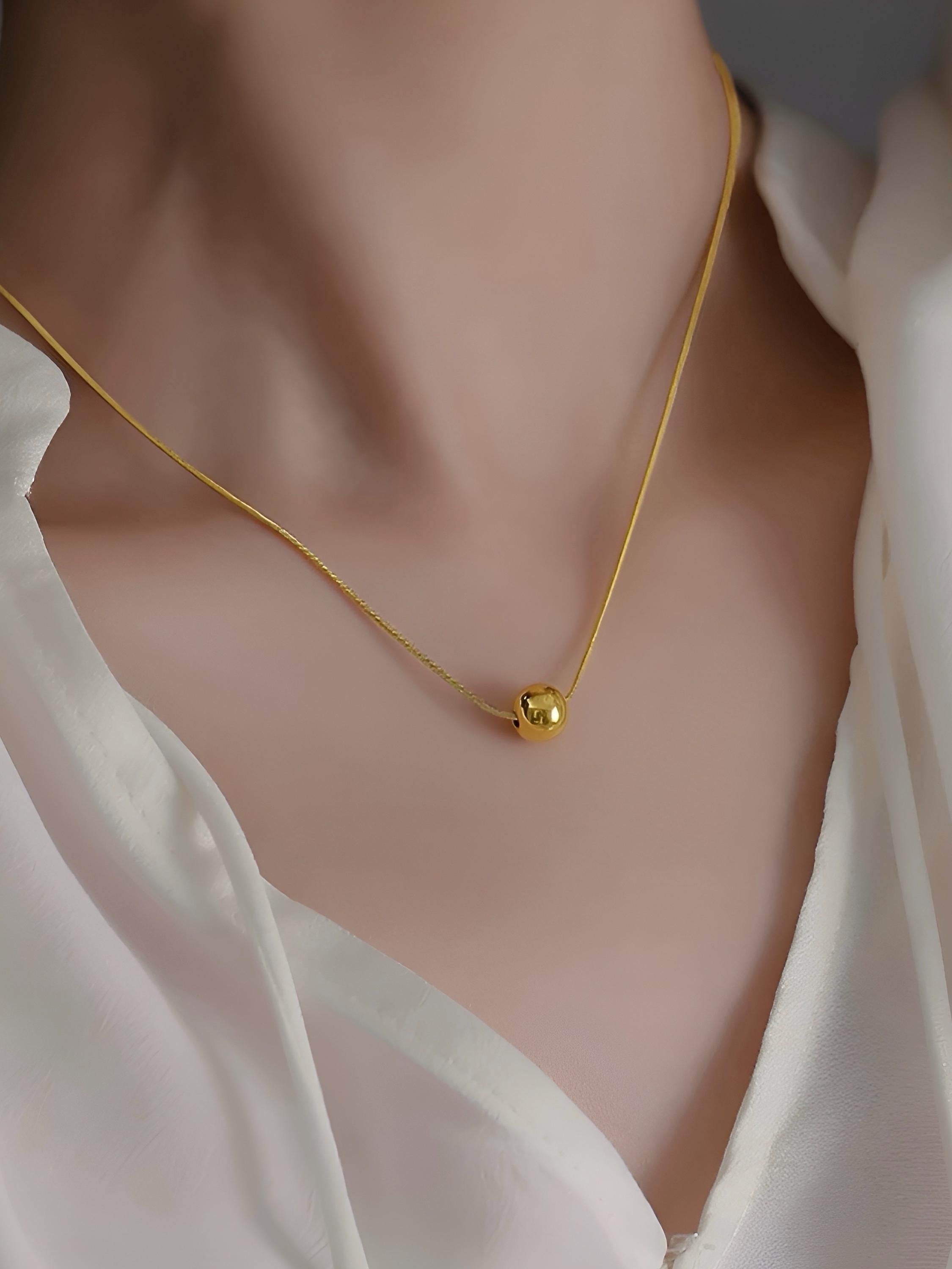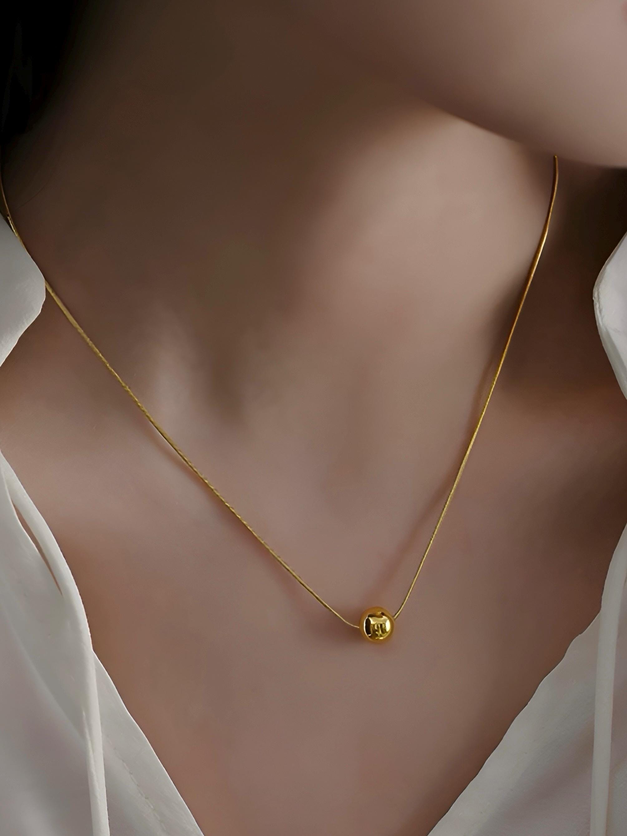 This 18K solid gold orb necklace is simplicity at its finest. We love how the smooth, gleaming gold bead rests perfectly on the delicate chain, creating a piece that feels both modern and timeless. Designed to be your go-to necklace, it adds just the right amount of elegance to any outfit, whether you’re dressing up for an event or keeping it casual.