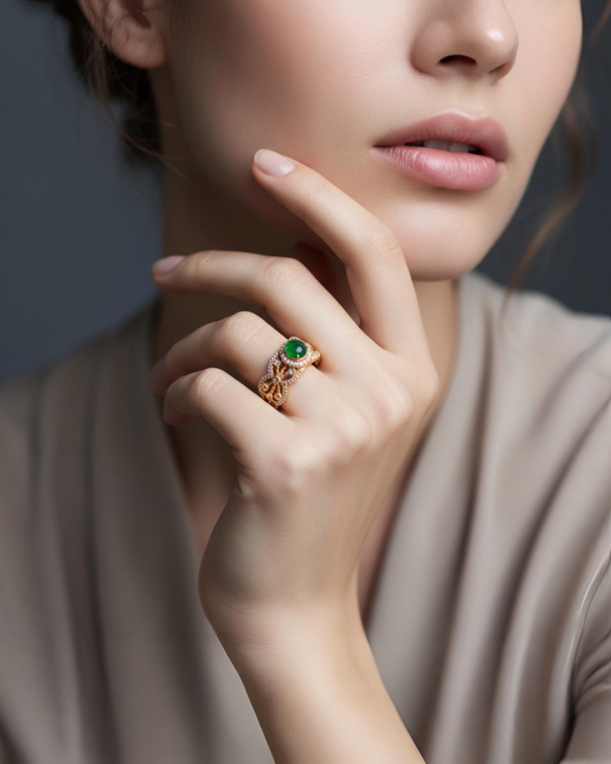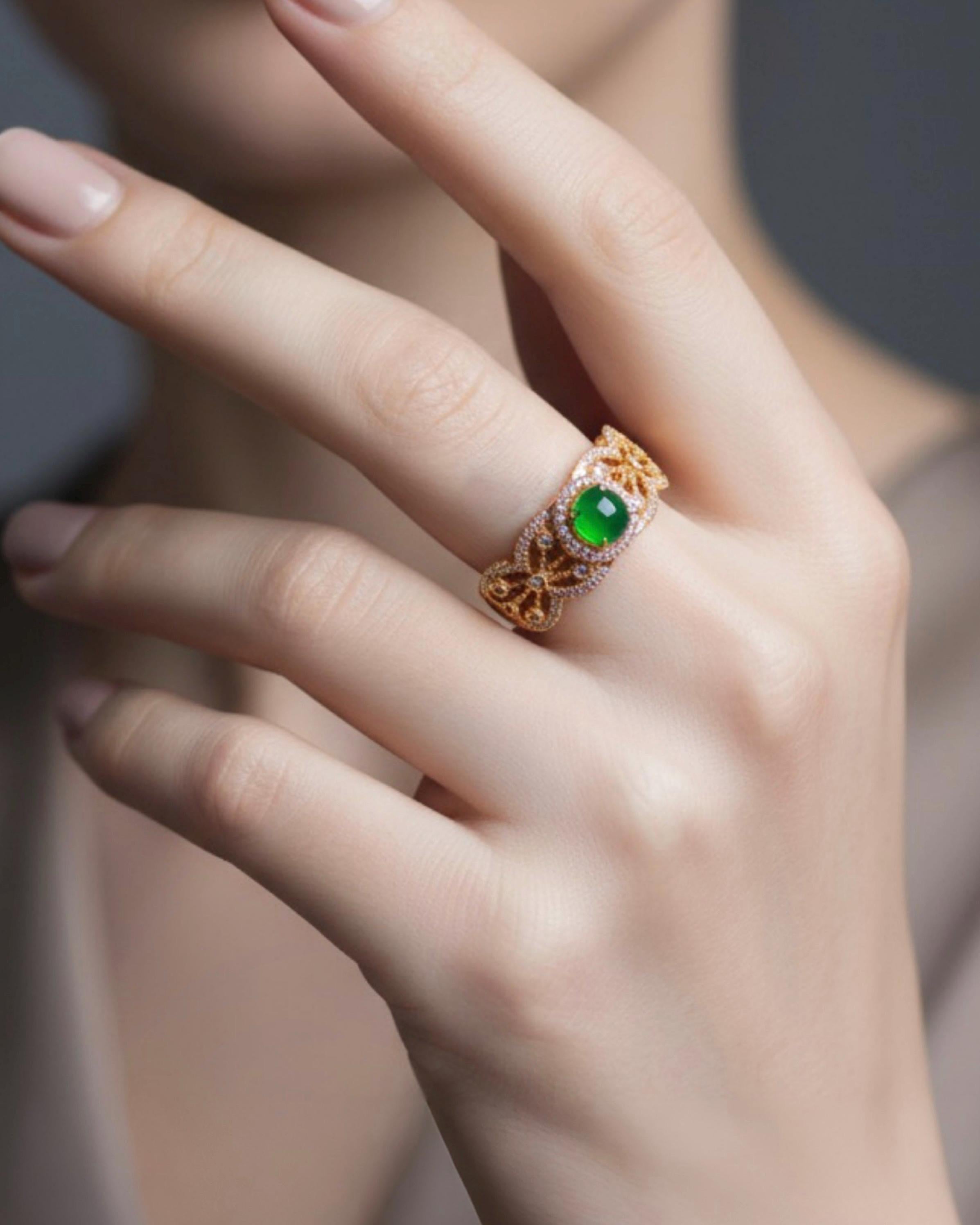 Wear it as a daily treasure or statement heirloom — its living green jade and diamond sparkles will forever draw the eye and light up your hand with natural grace.