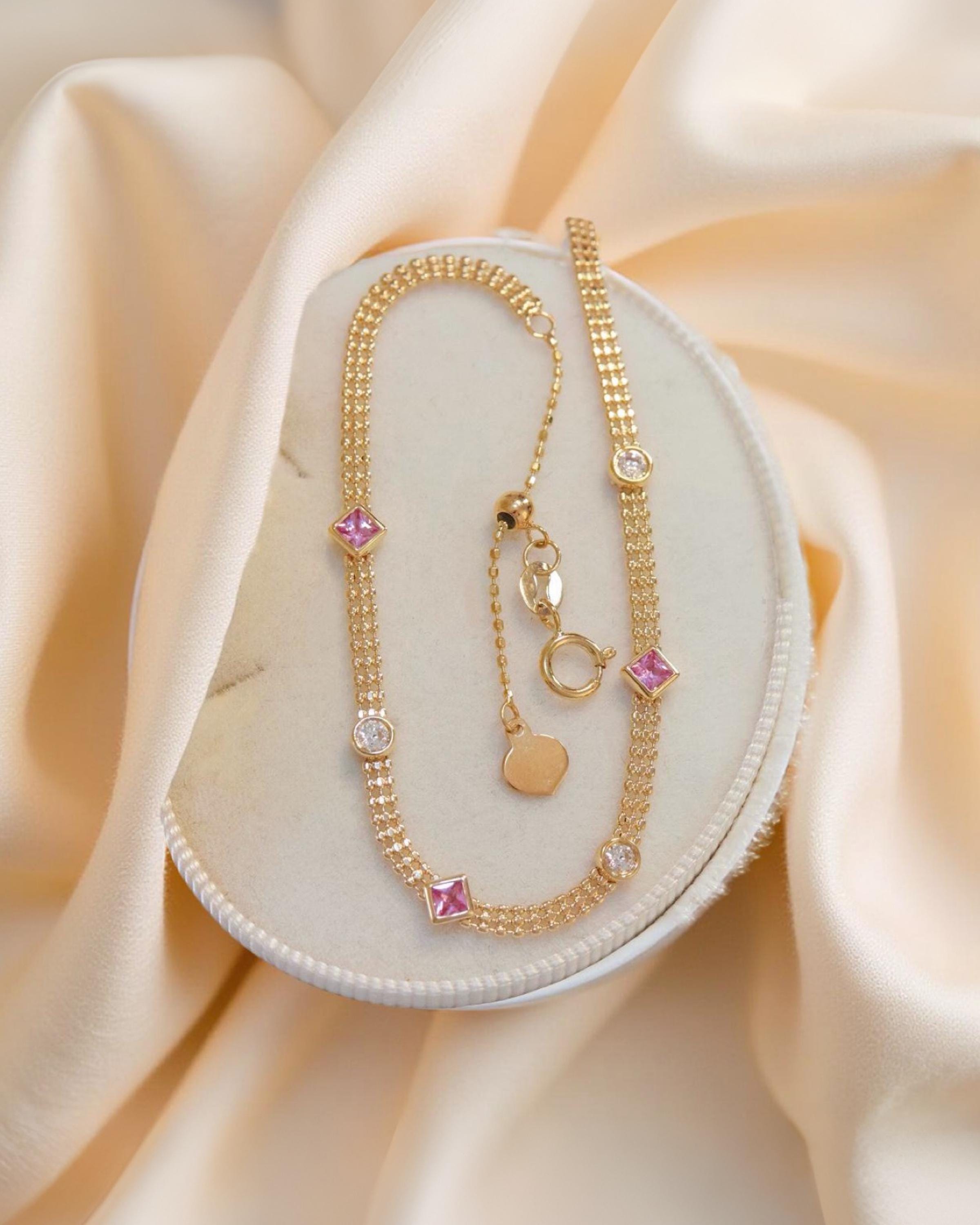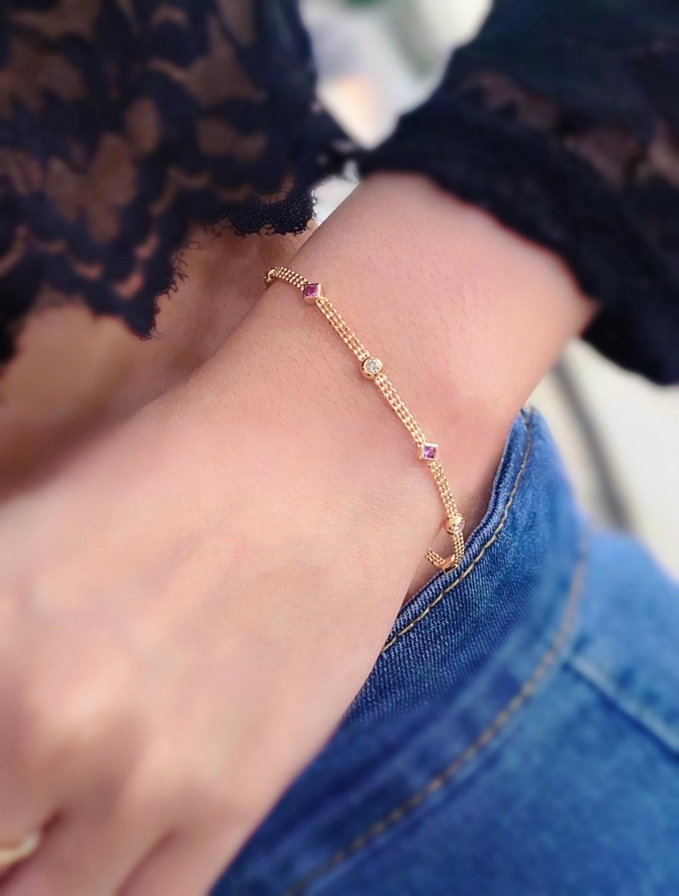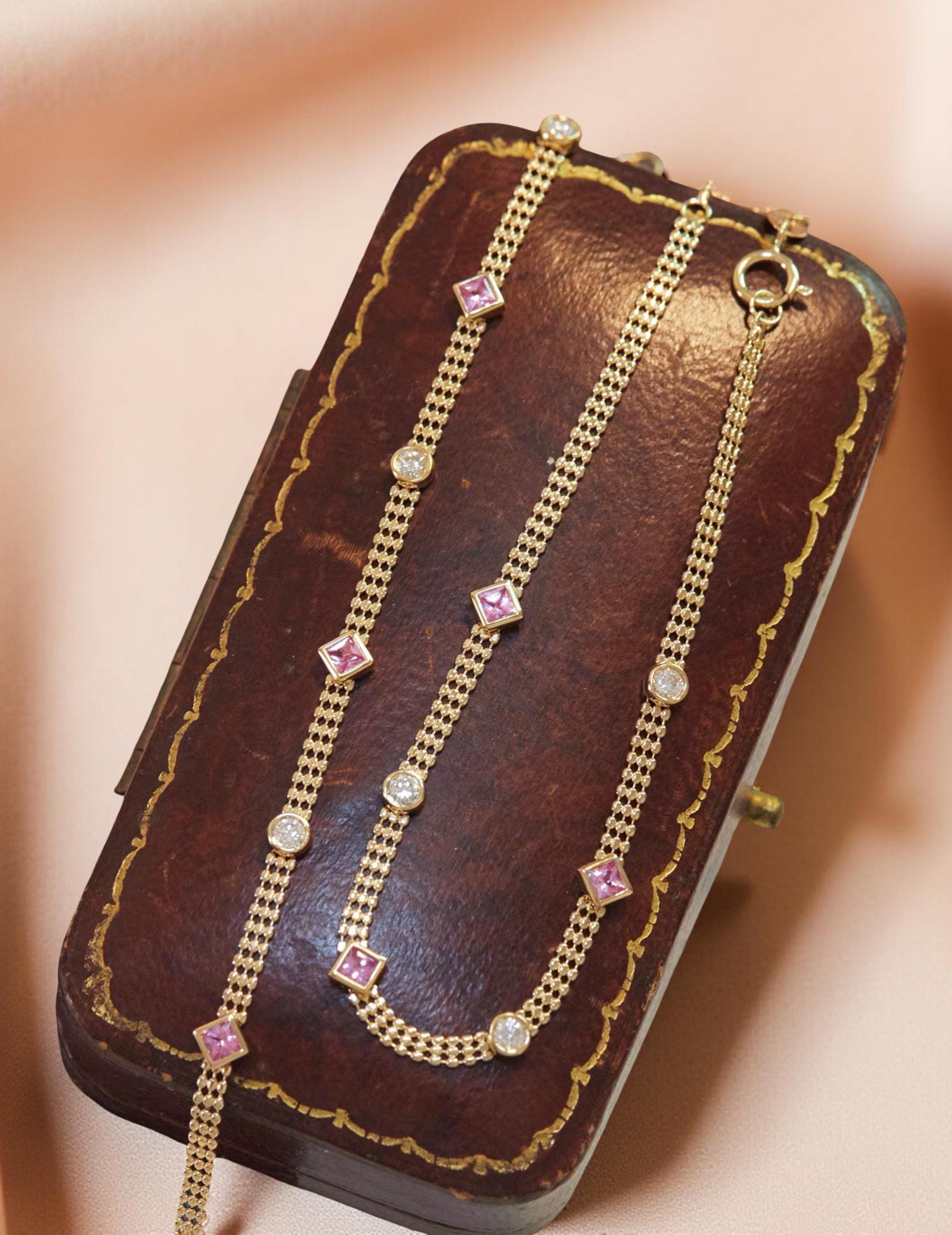 18K Solid Gold Pink Sapphire Diamond Bracelet