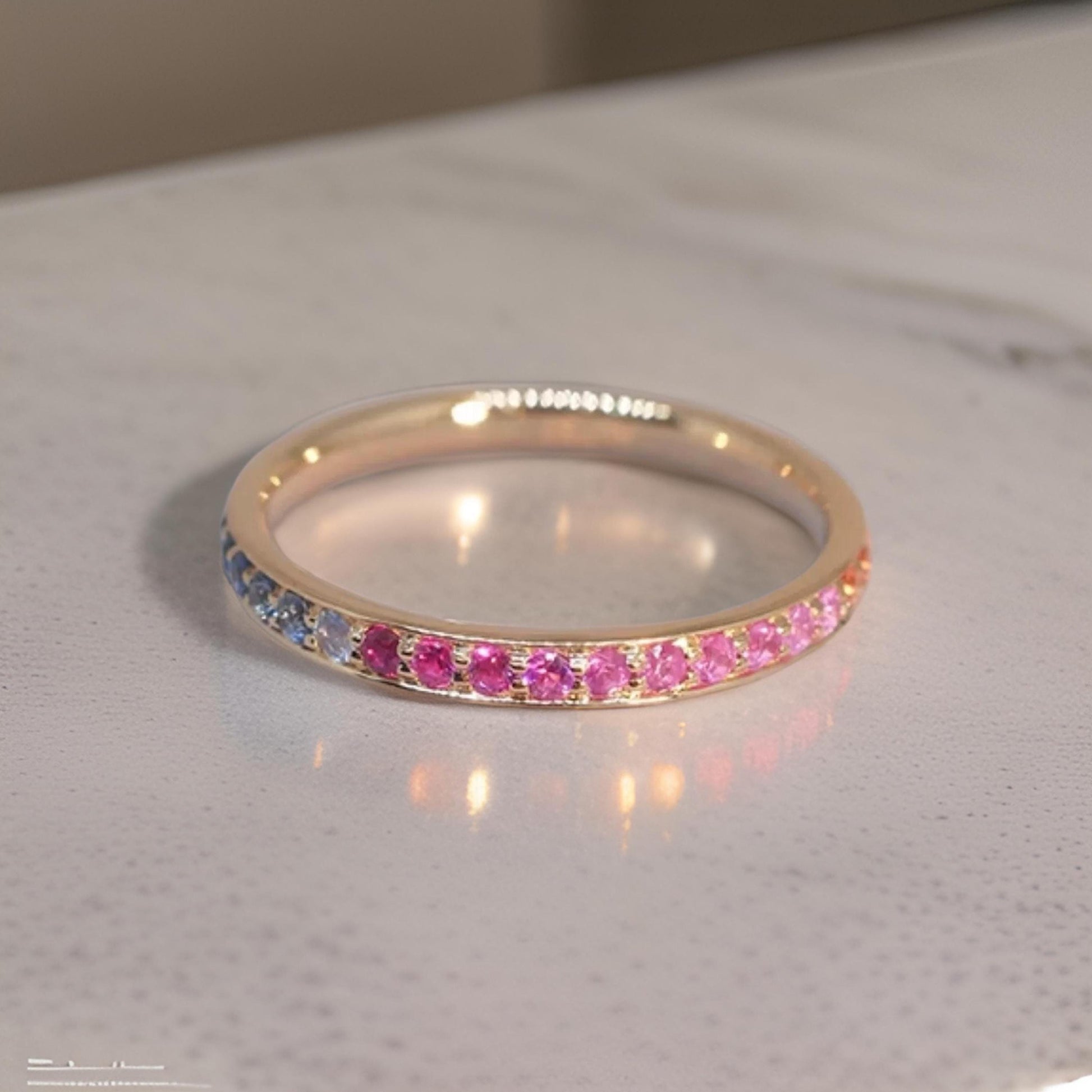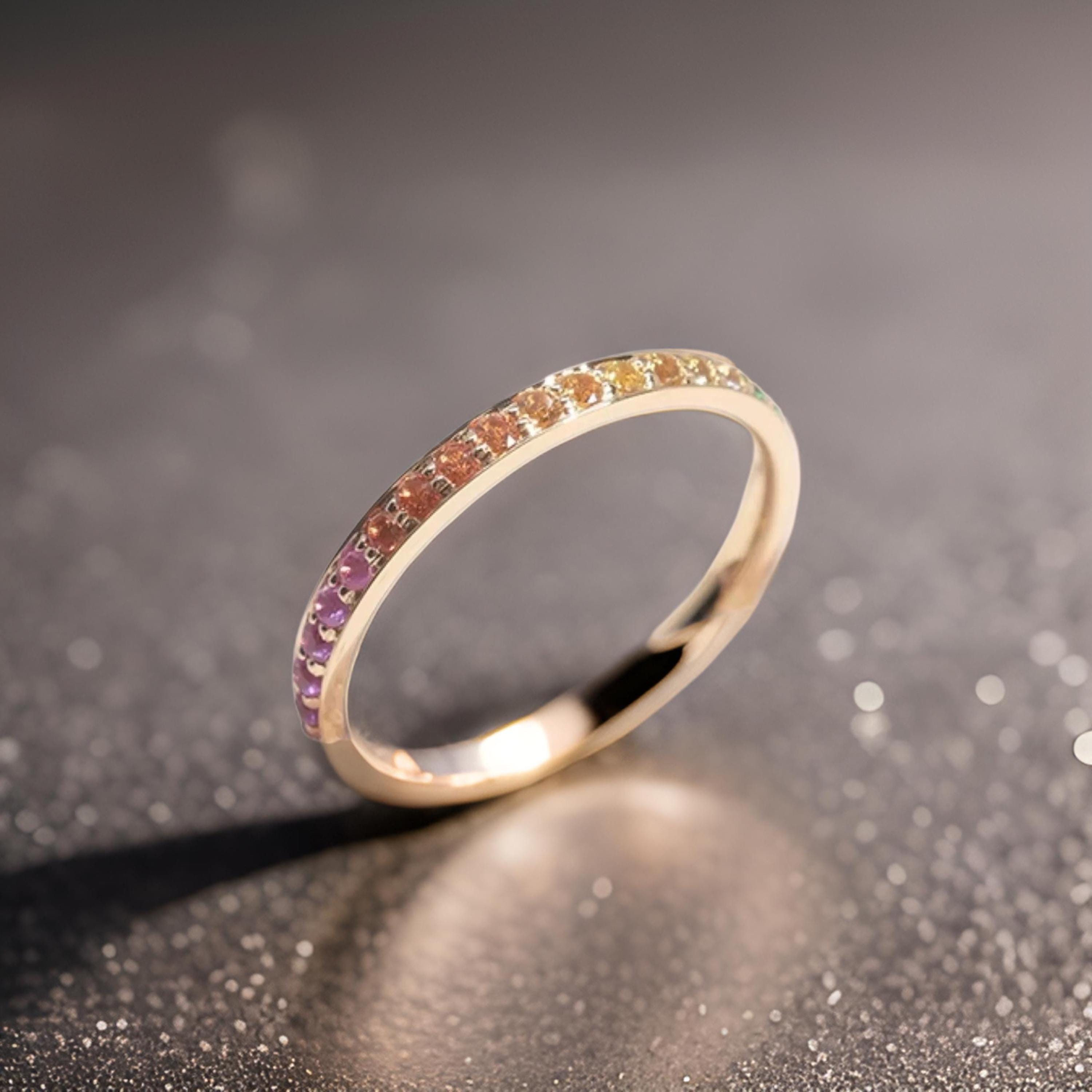 18K Solid Gold Rainbow Sapphire Band – Custom Stacking Ring