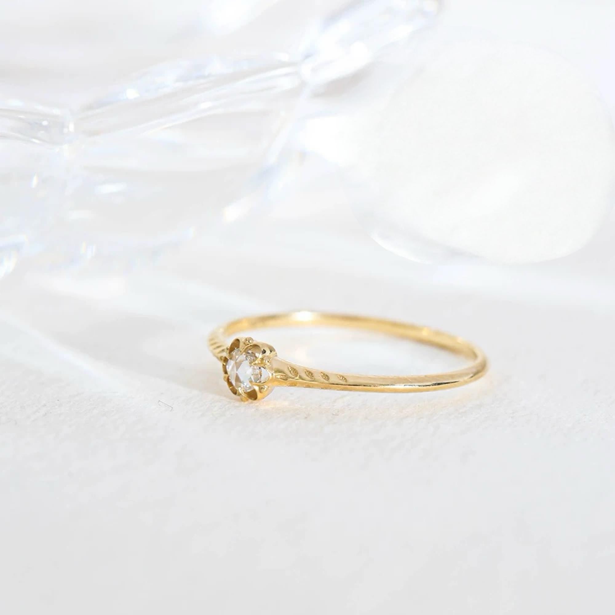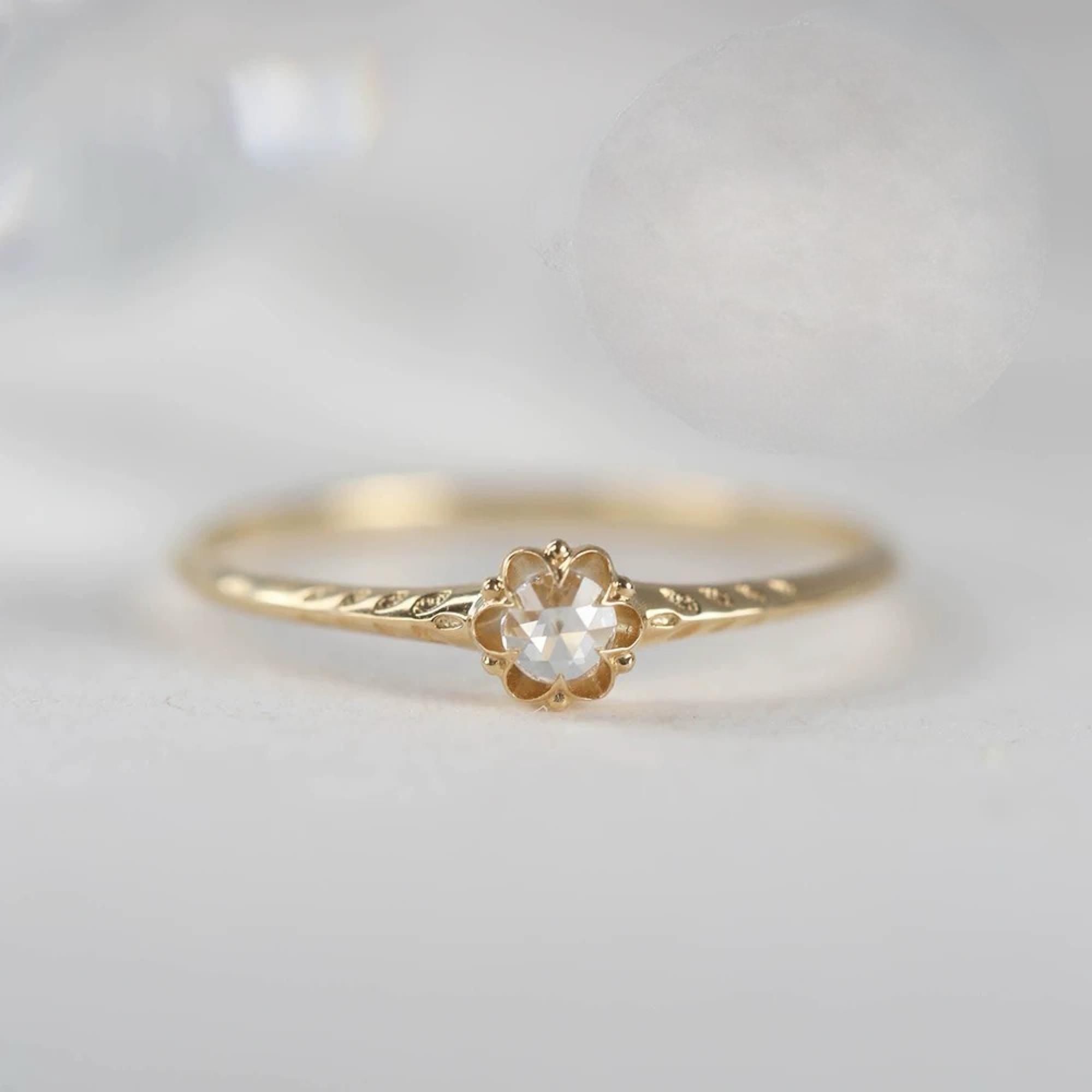18K Solid Gold Rose Cut Diamond Ring | Antique Style Engagement Ring