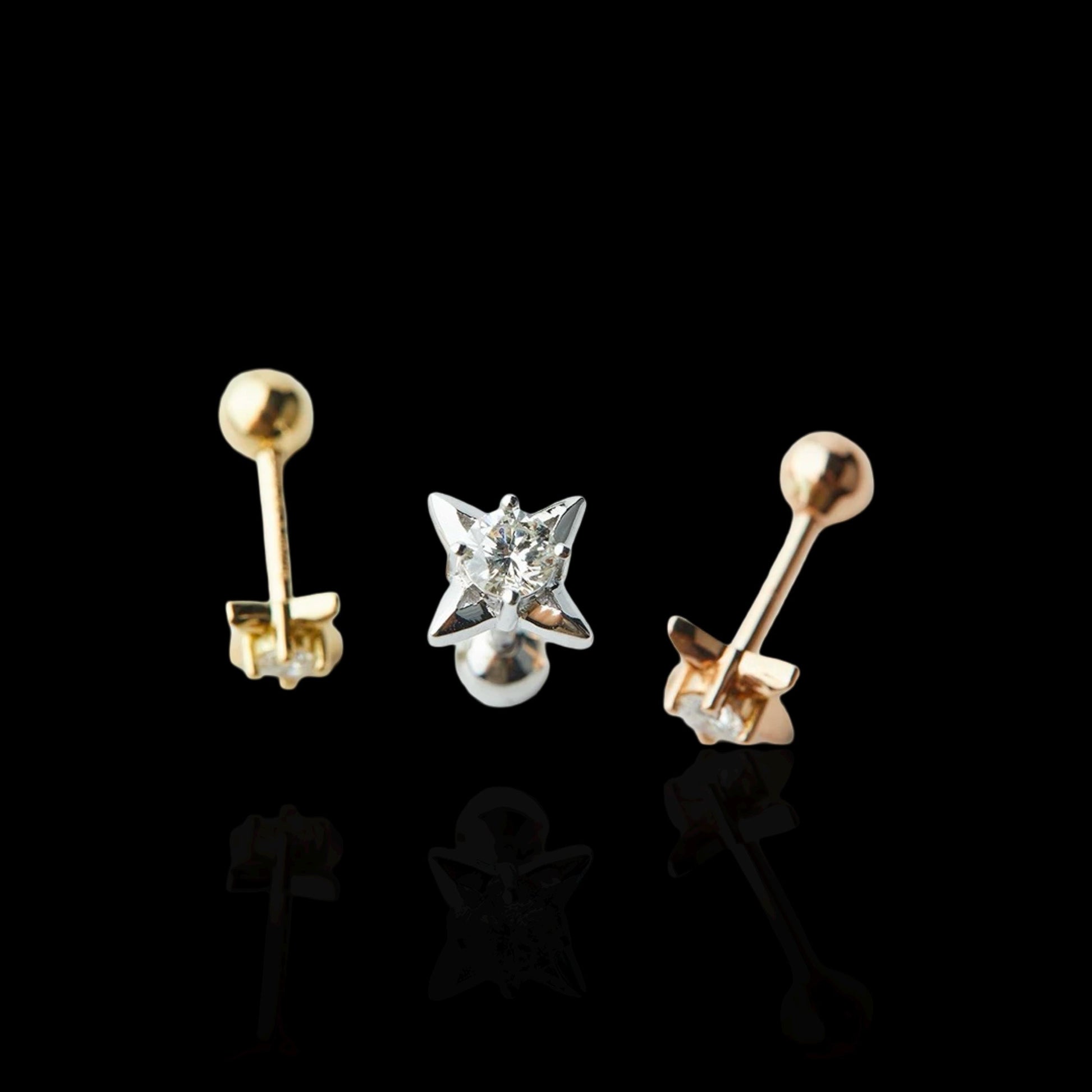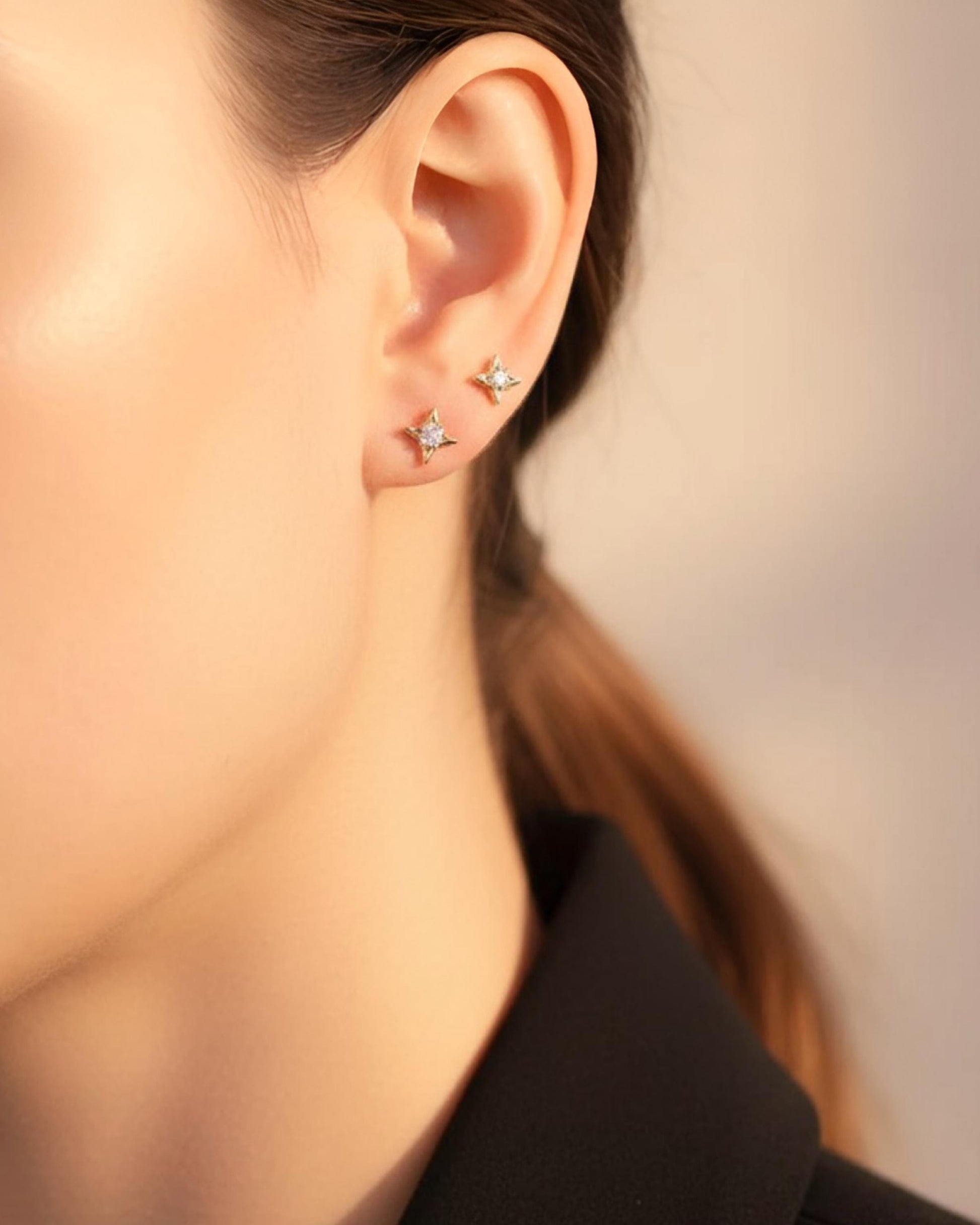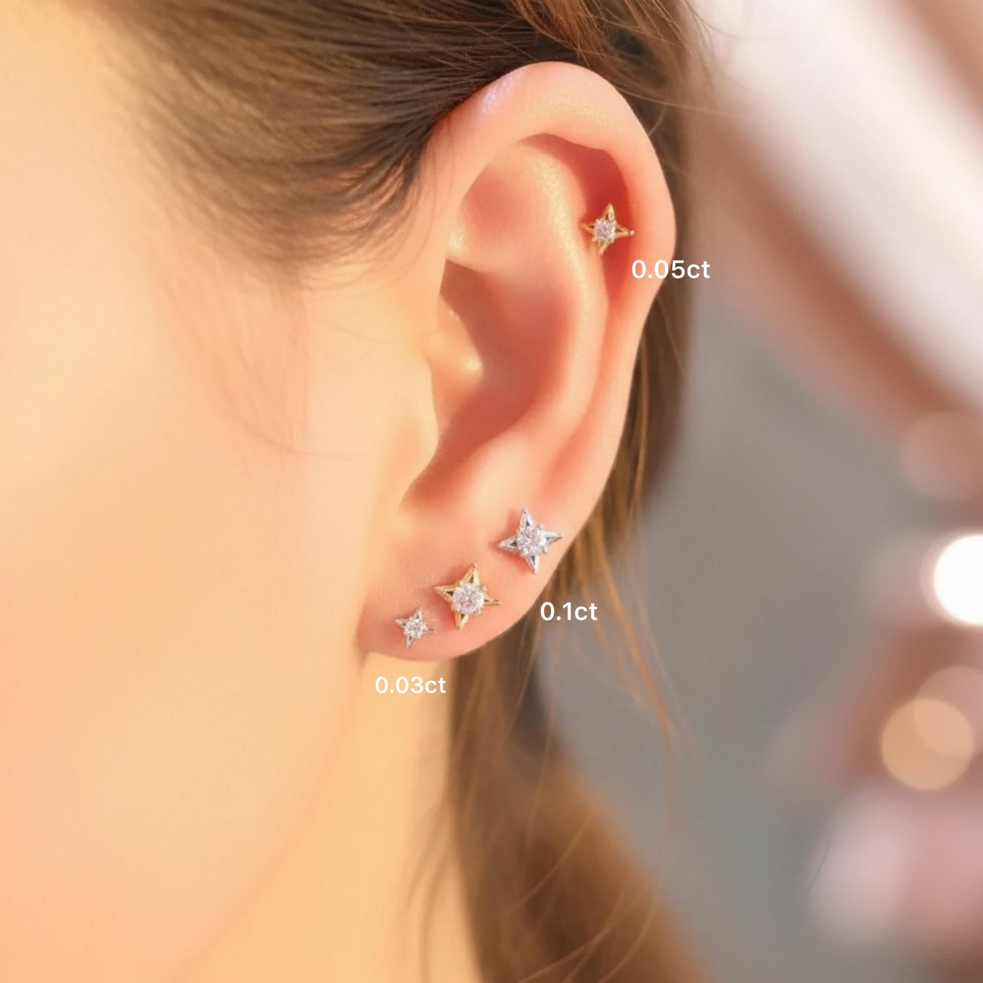 These Star Diamond Earrings are crafted from solid 18K gold (AU750) and set with natural earth-mined diamonds that sparkle with quiet brilliance. Each diamond is hand-selected for its fine color and clarity, creating a refined radiance that feels timeless yet effortless.
