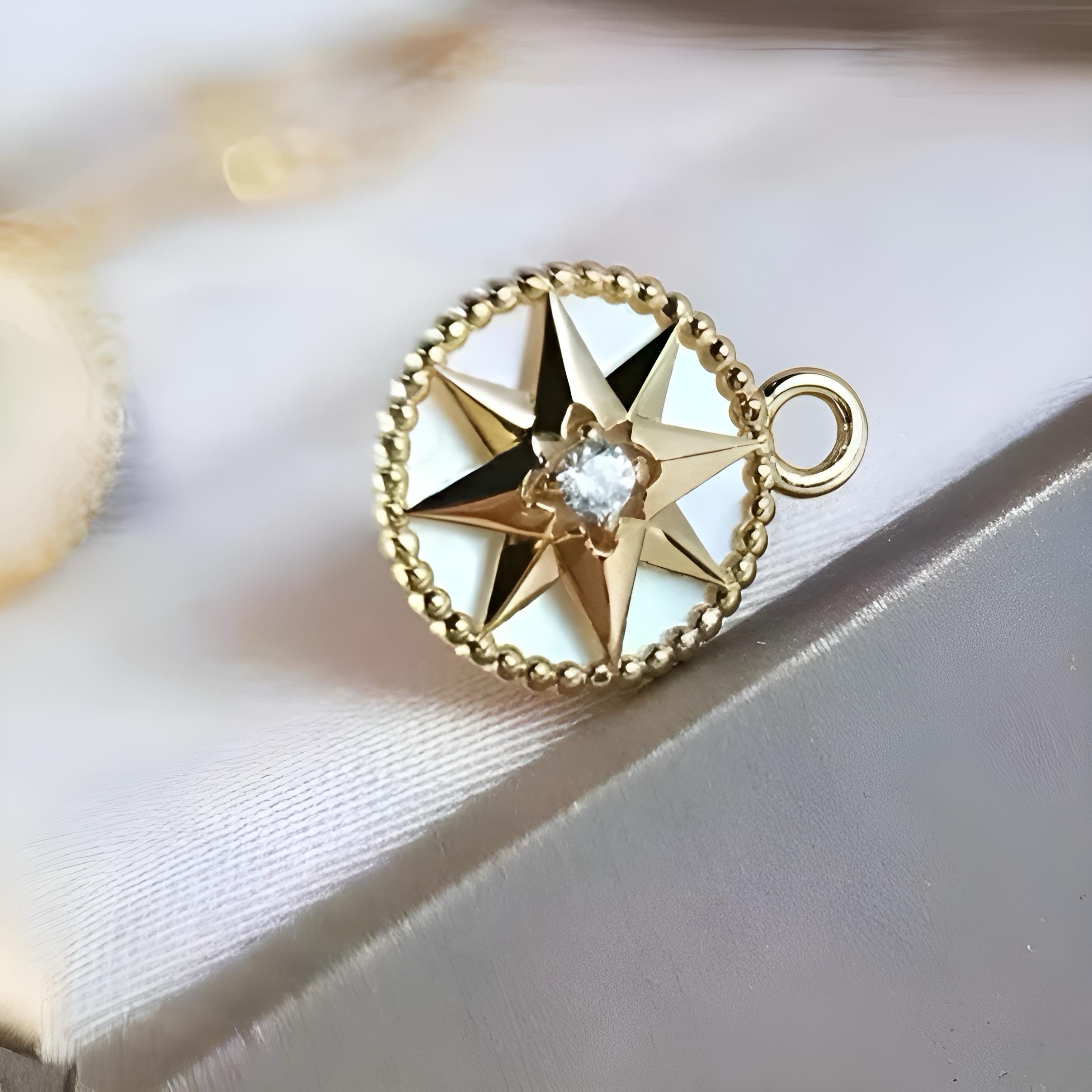 18K solid gold earrings, designed with versatility and elegance in mind. Featuring a dazzling starburst motif with natural mother-of-pearl inlays and a sparkling diamond centerpiece, these earrings are as stunning as they are functional. The beaded hoop design allows for easy charm swapping, so you can customize your look effortlessly.