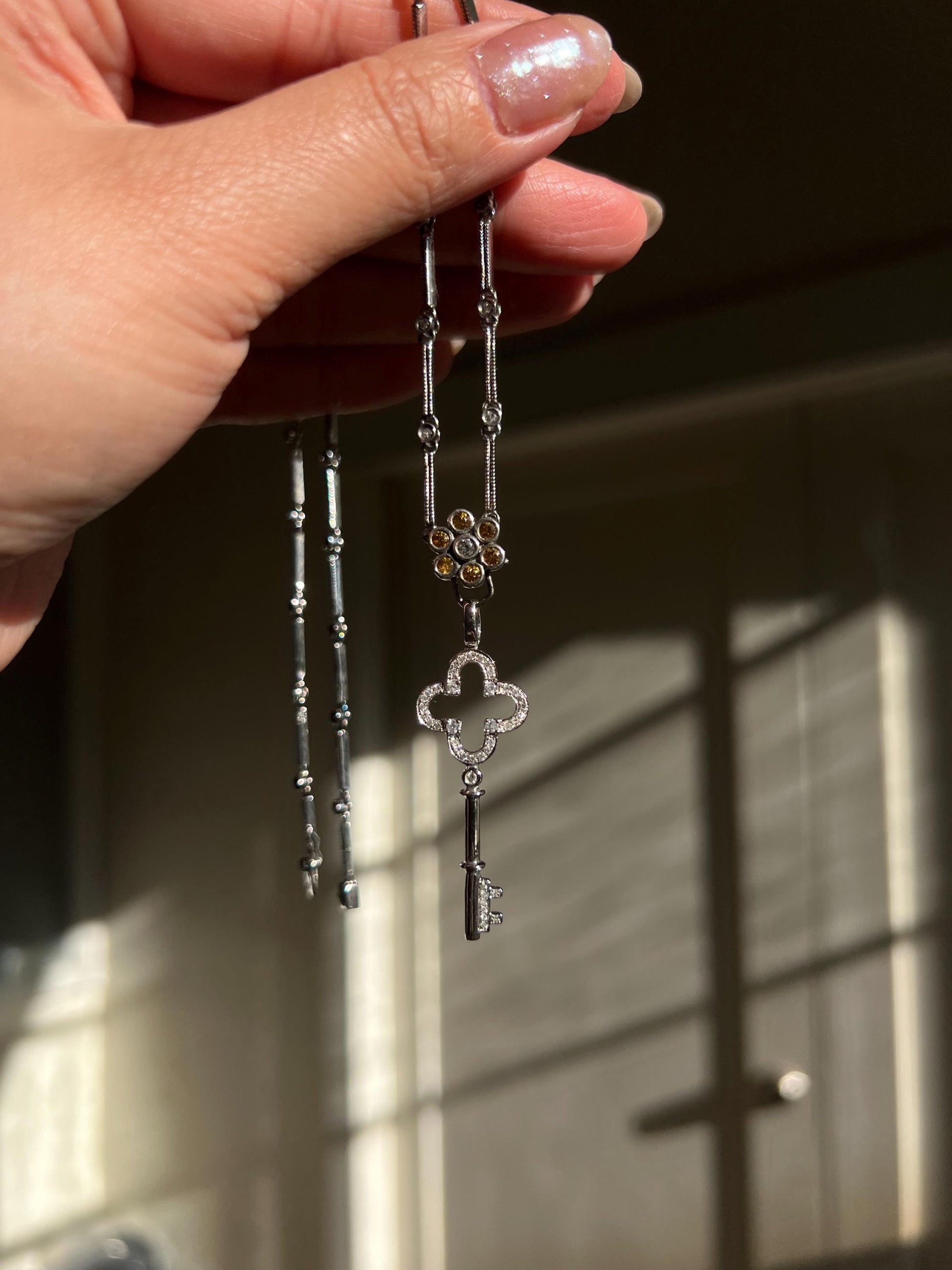 • Pendant type: Convertible floral cluster with hidden enhancer bail