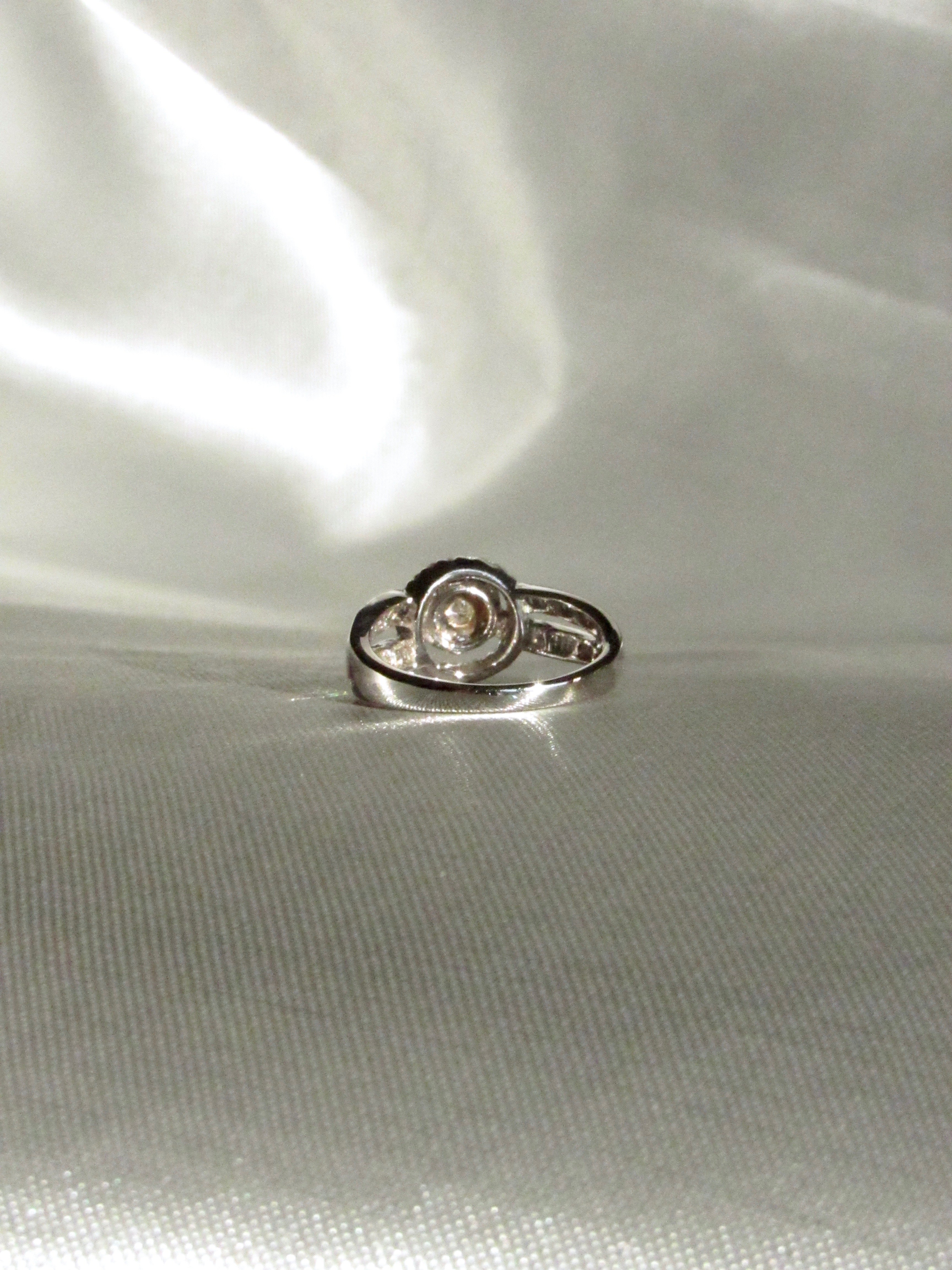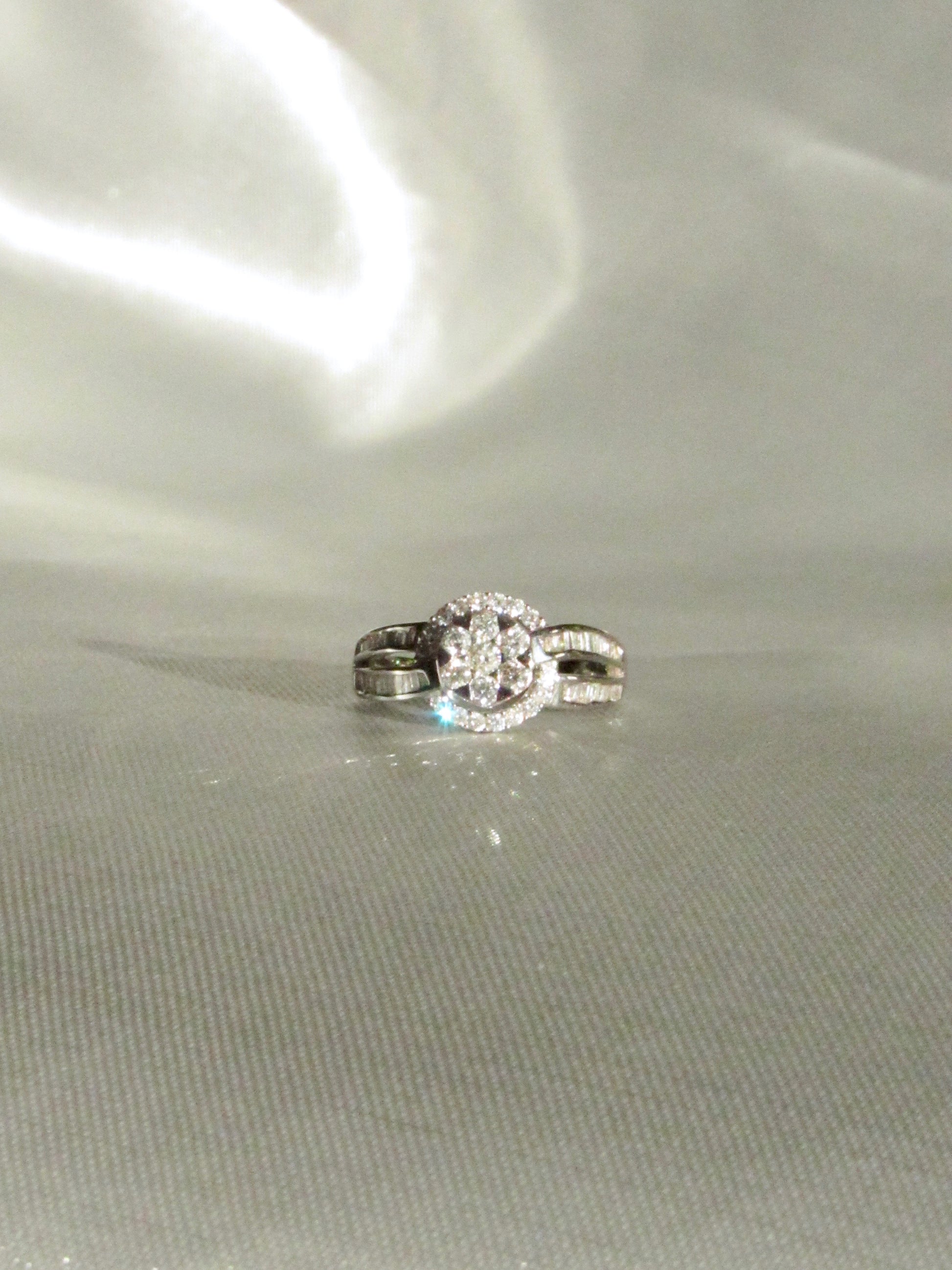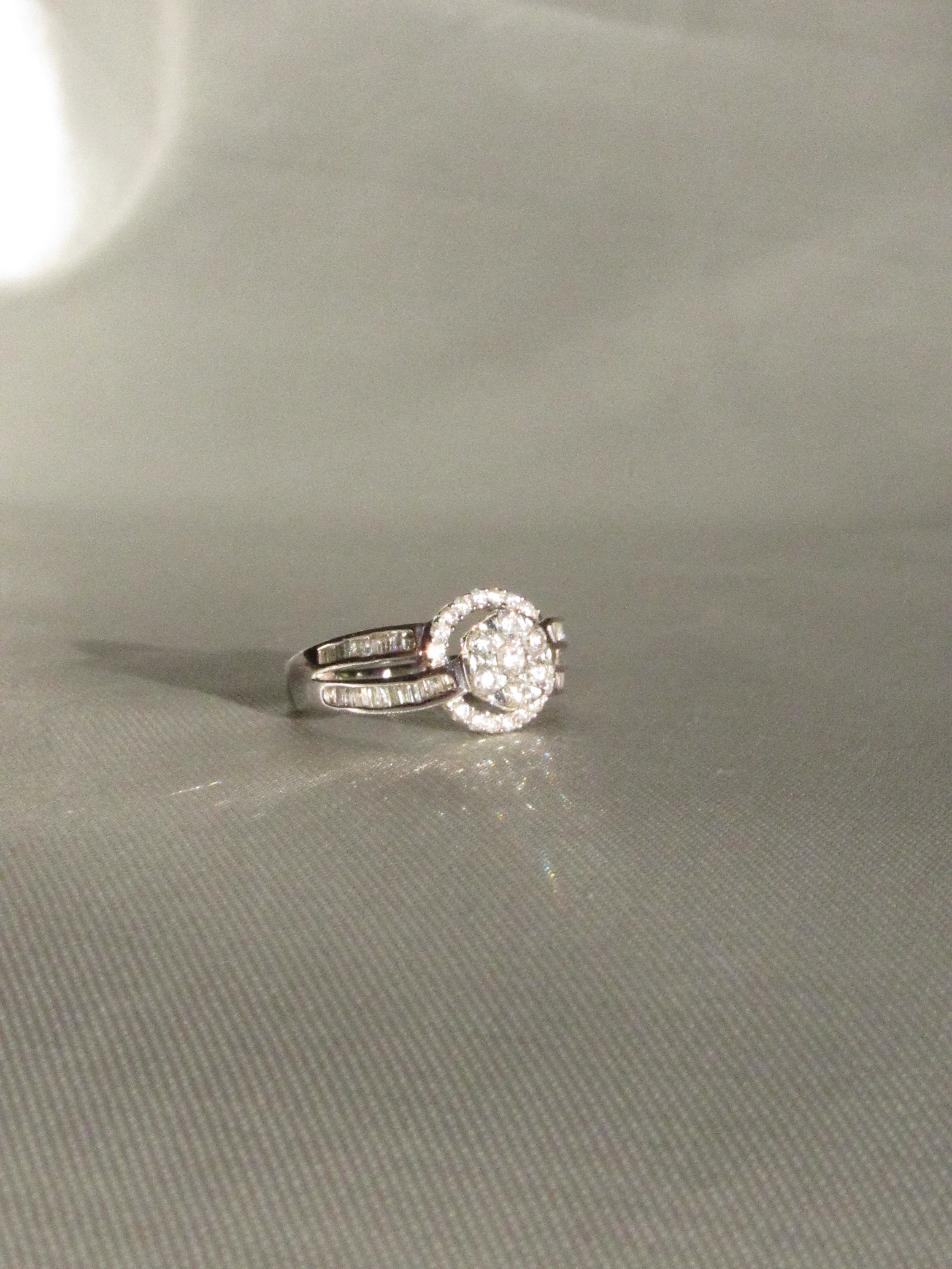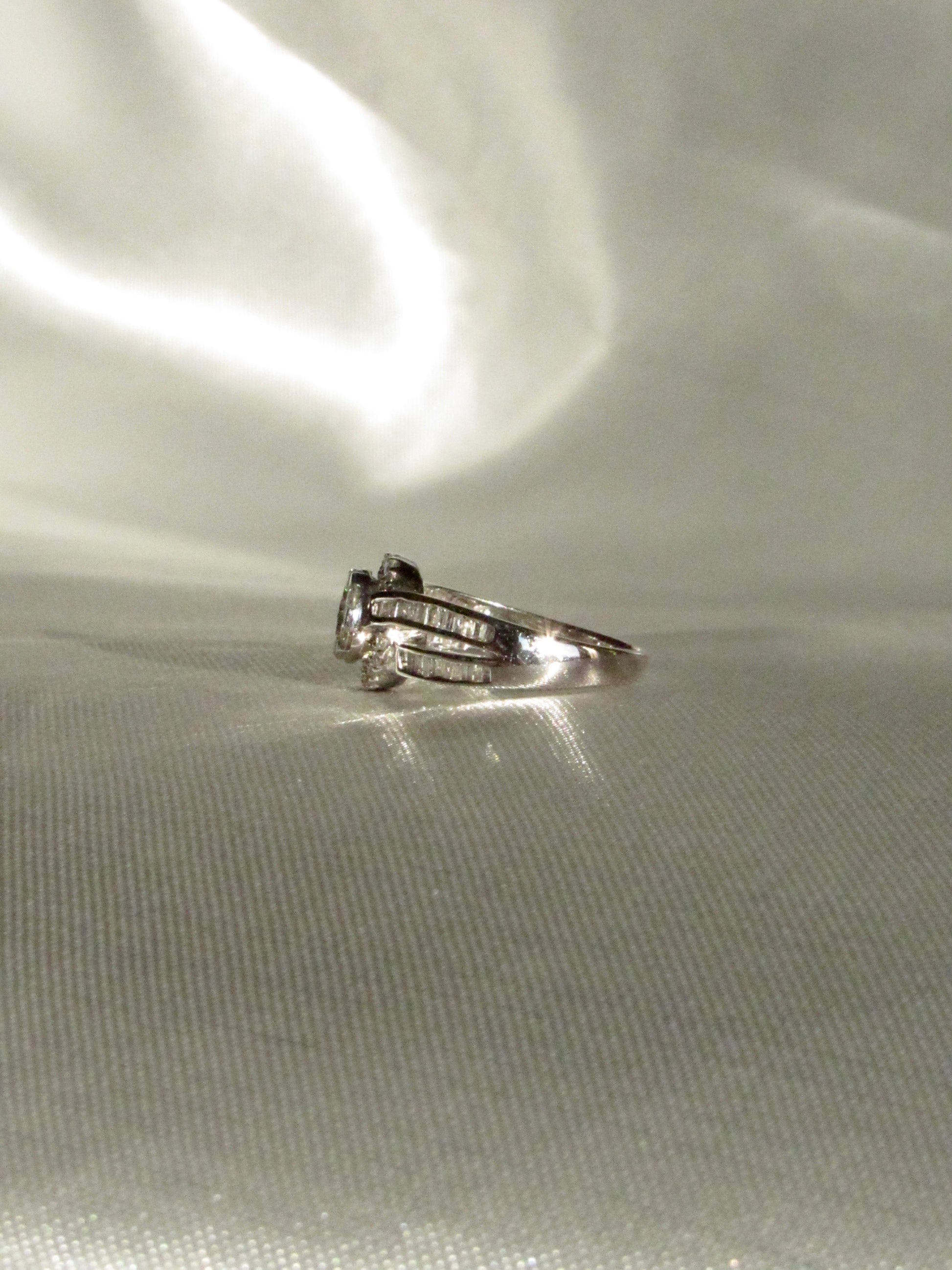 18K White Gold Natural Baguette & Round Diamond Flower Cluster Ring