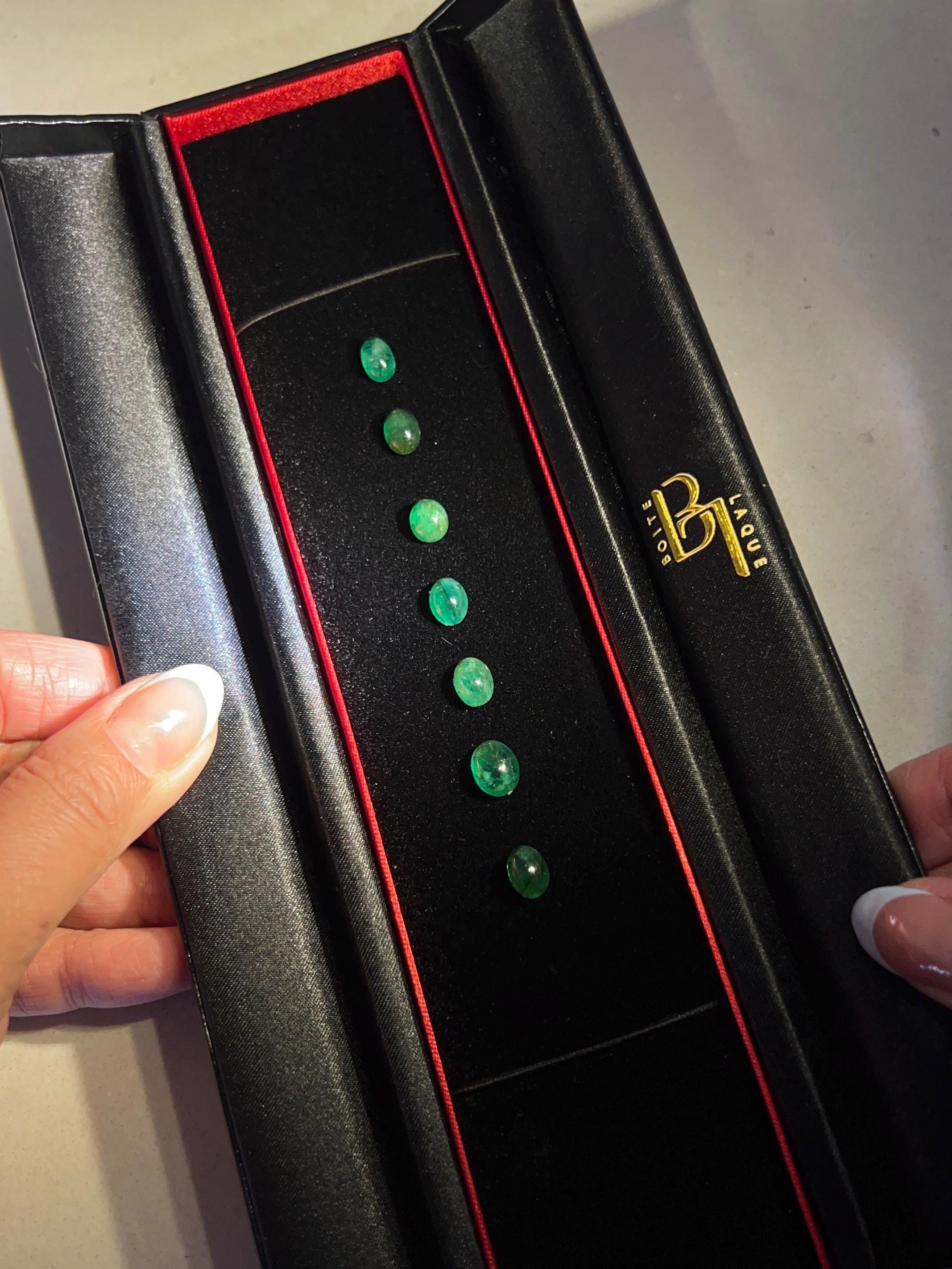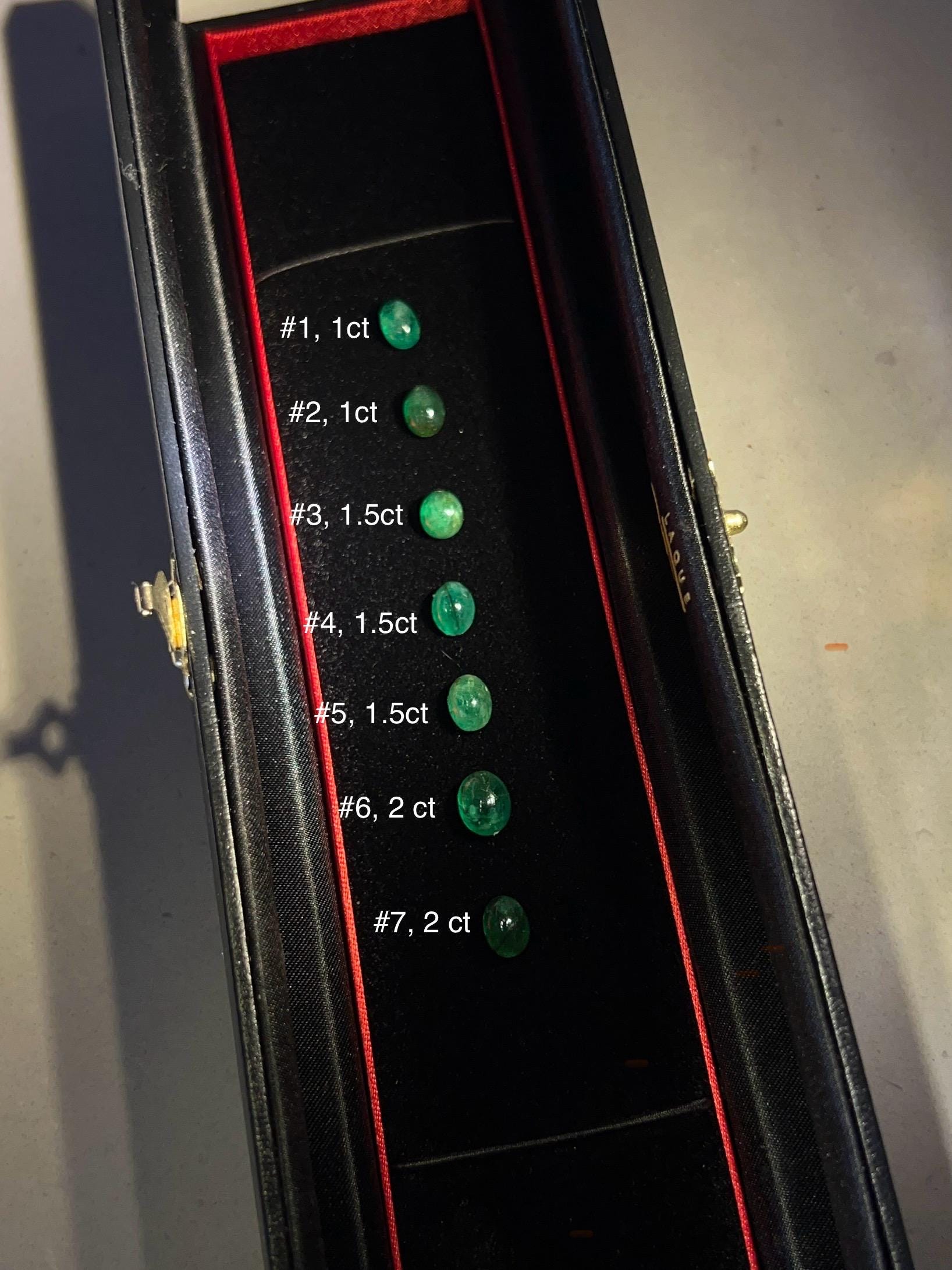 What makes this even more special? You get to choose your own emerald. We’ve sourced 7 natural cabochons, ranging from 1 to 2 carats. Each one has been hand-selected for its vivid green glow and smooth, organic dome shape.