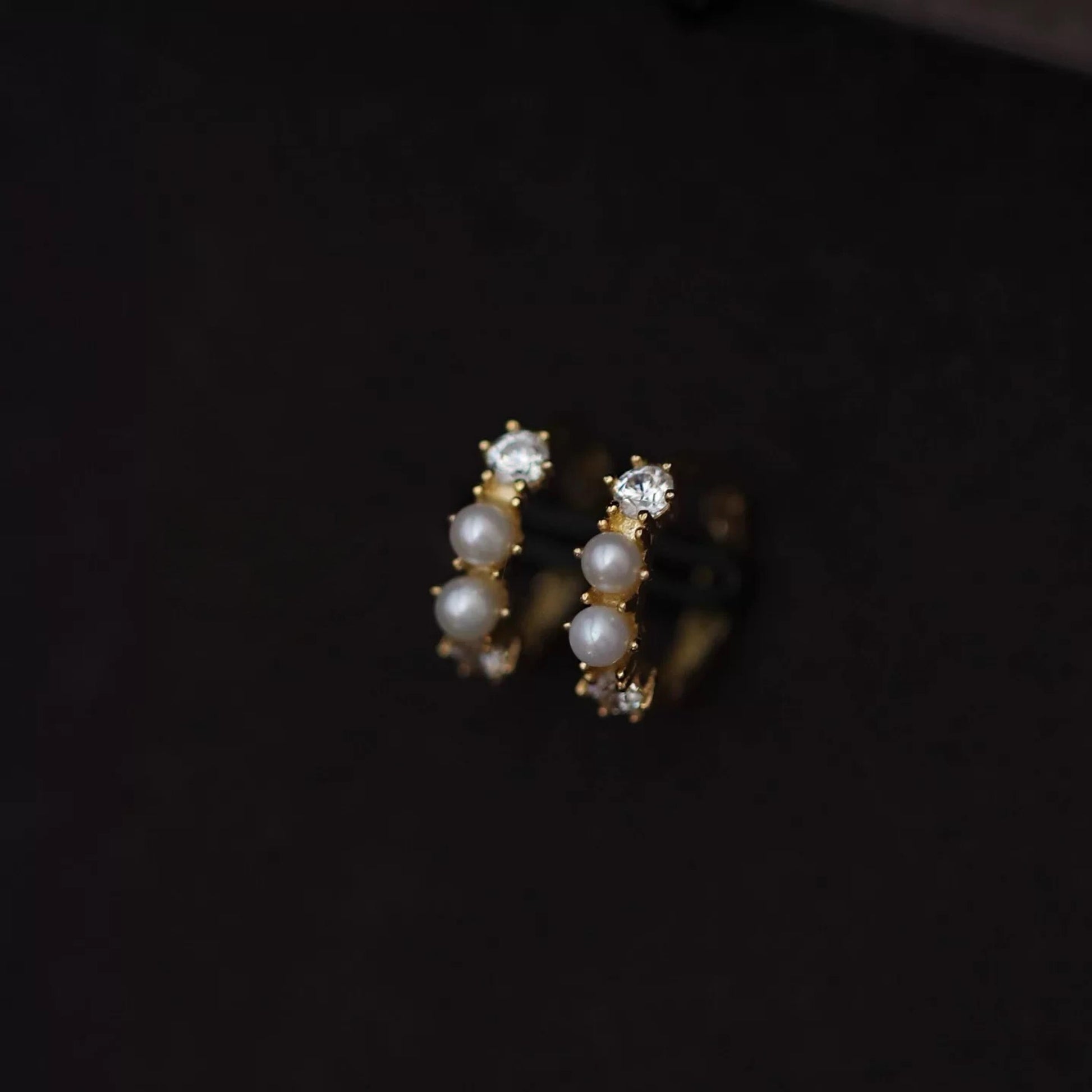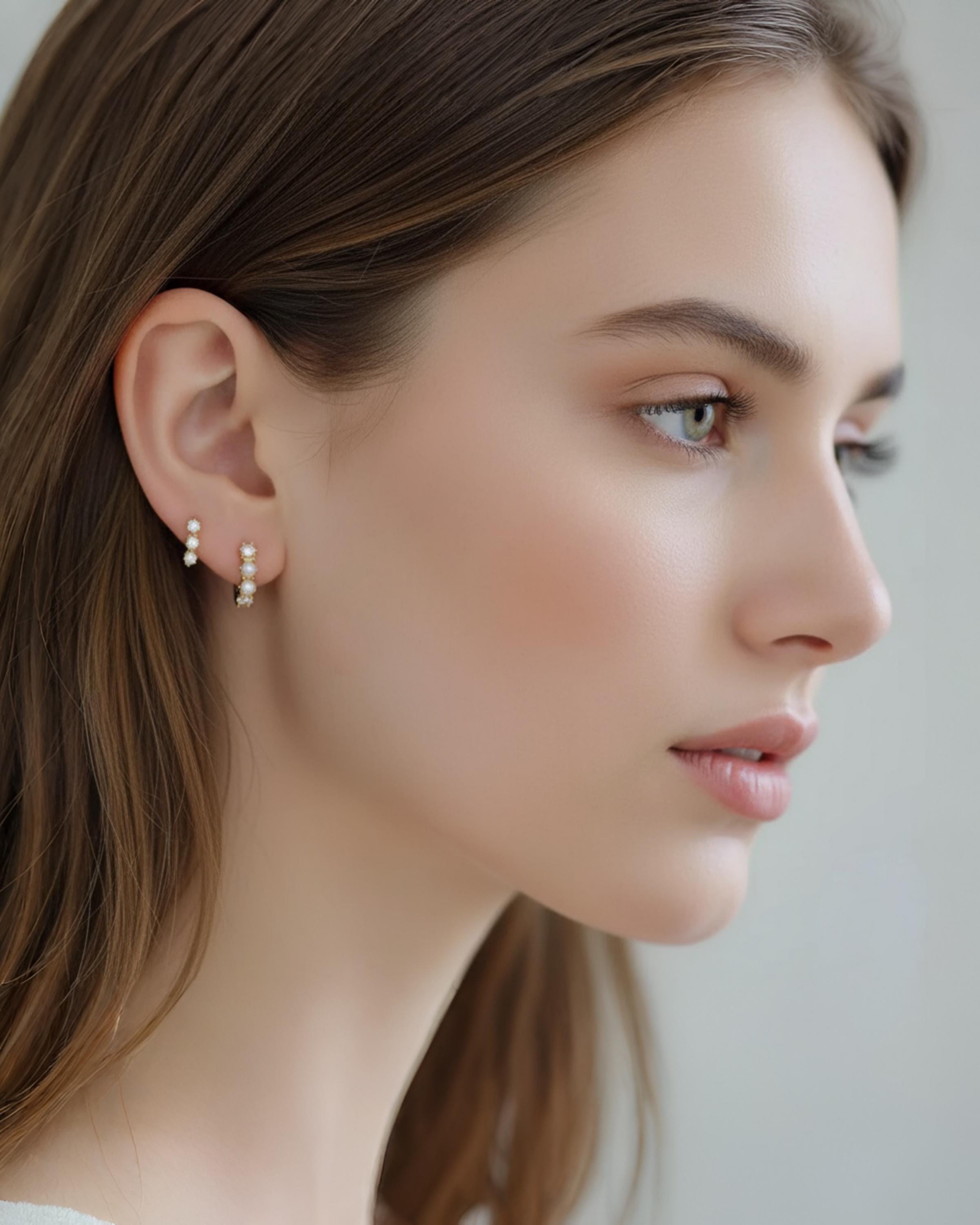 These delicate 9K solid gold mini hoops feature luminous natural Akoya pearls (2.4mm) paired with sparkling diamonds for a refined, understated glow. Measuring 8mm in inner diameter, they gently hug the earlobe — perfect for everyday wear or layered in a second piercing for a modern stacked look.