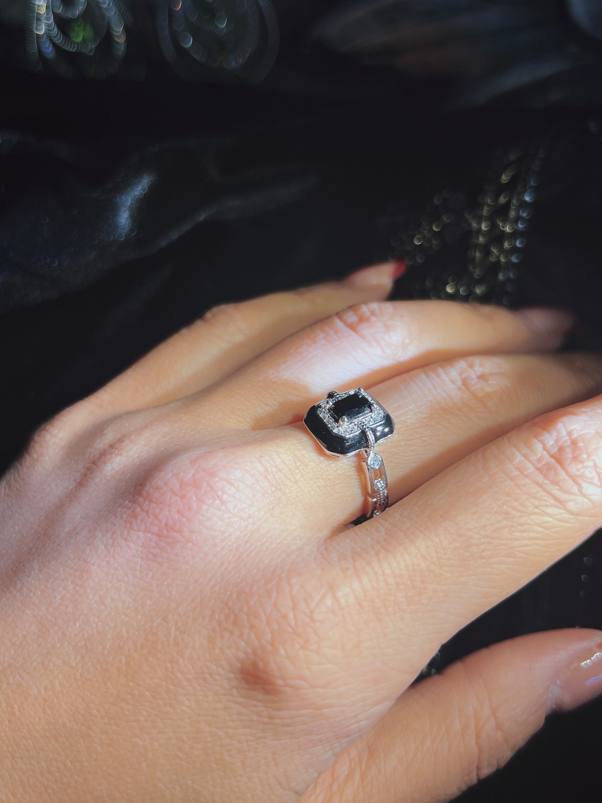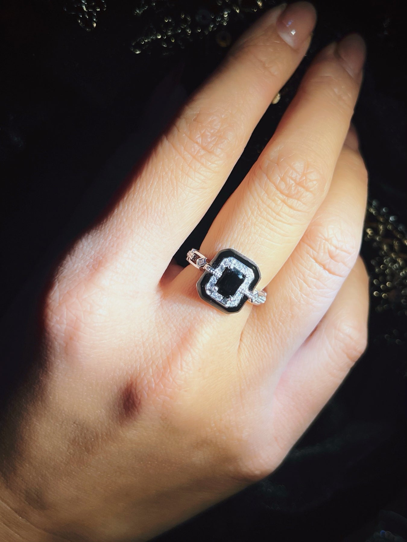 I adore this Art Deco-inspired black spinel ring and even kept one for myself. It has a timeless vintage elegance that feels both sophisticated and luxurious. The unique black spinel is believed to protect your energy, as a gentle shield against negativity and helping you stay grounded. There’s a subtle sense of empowerment and calm that comes with wearing it – it’s a piece that really resonates.