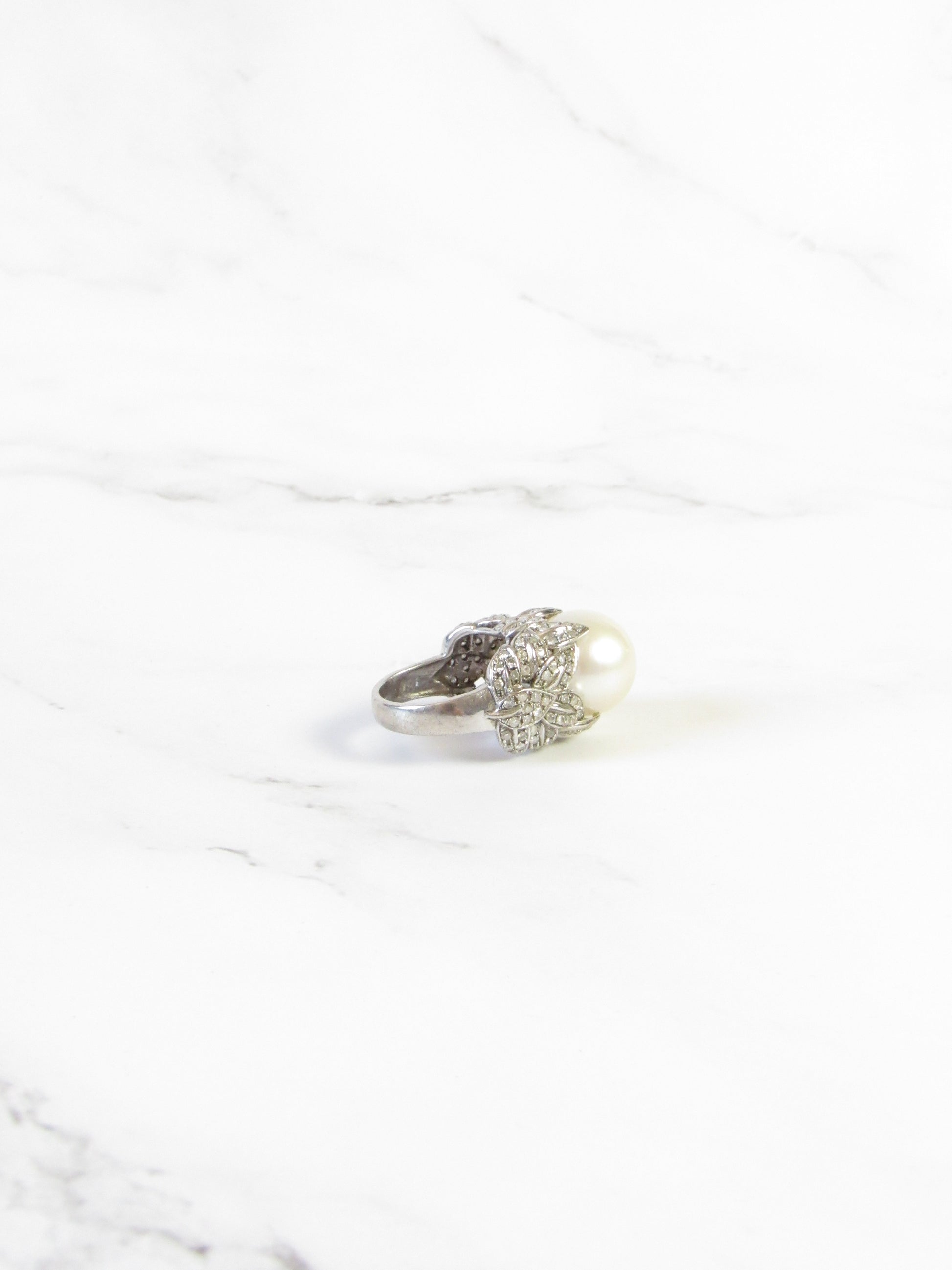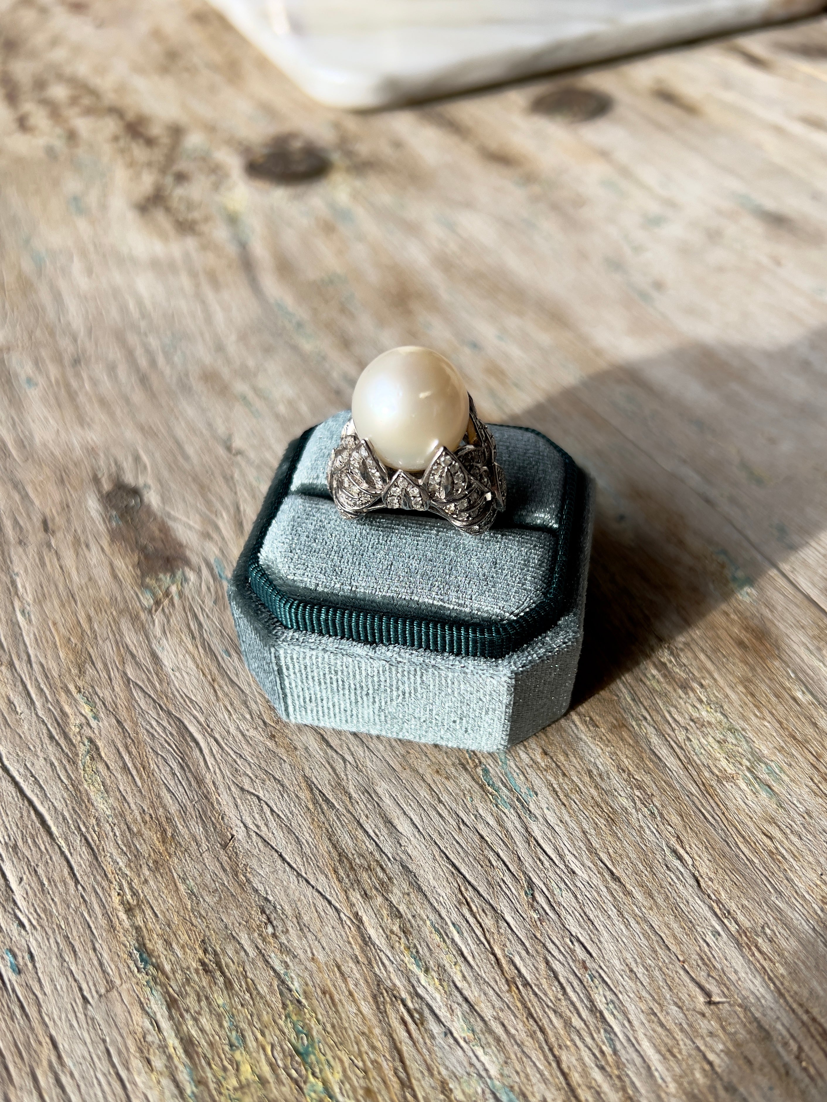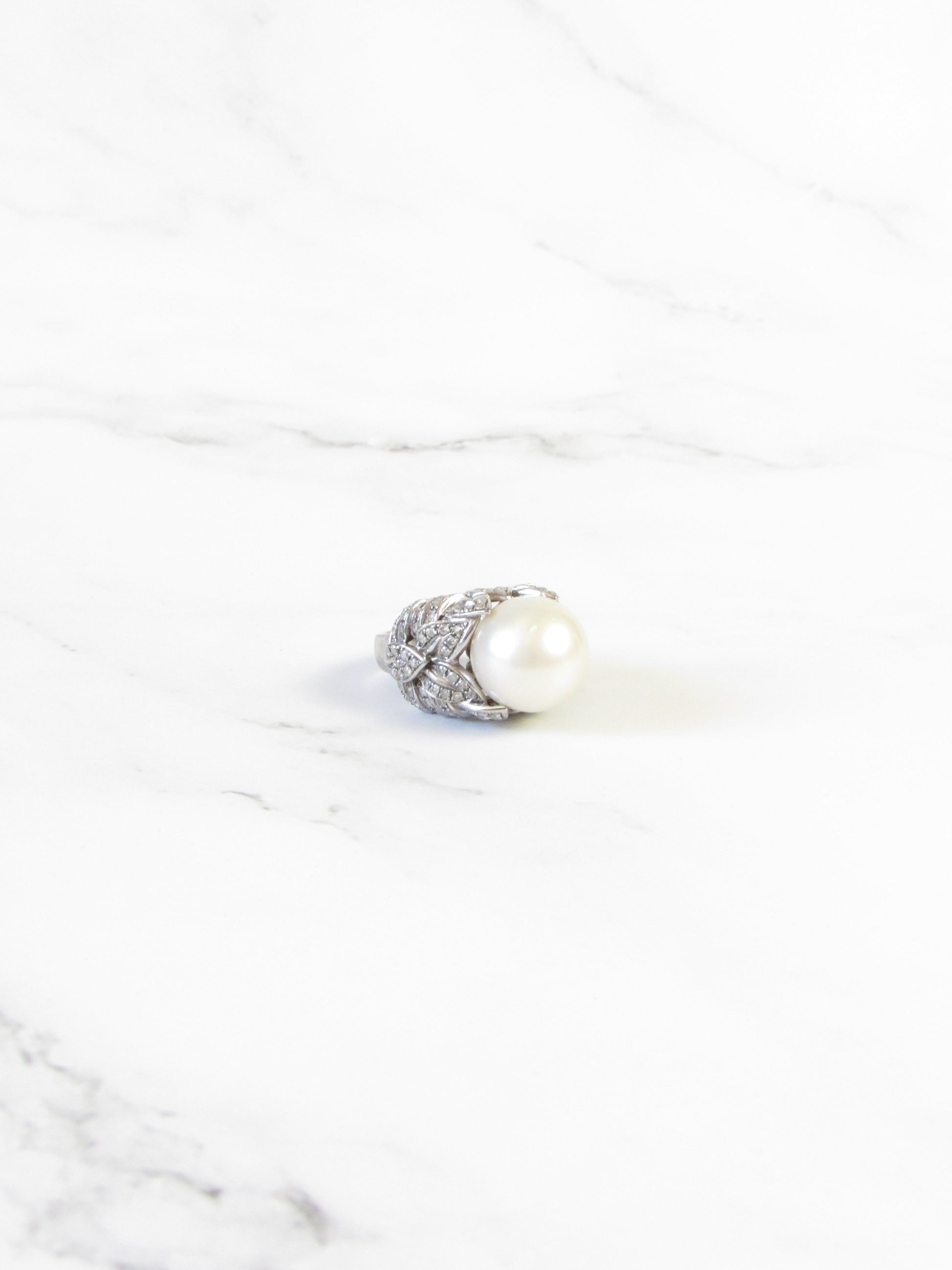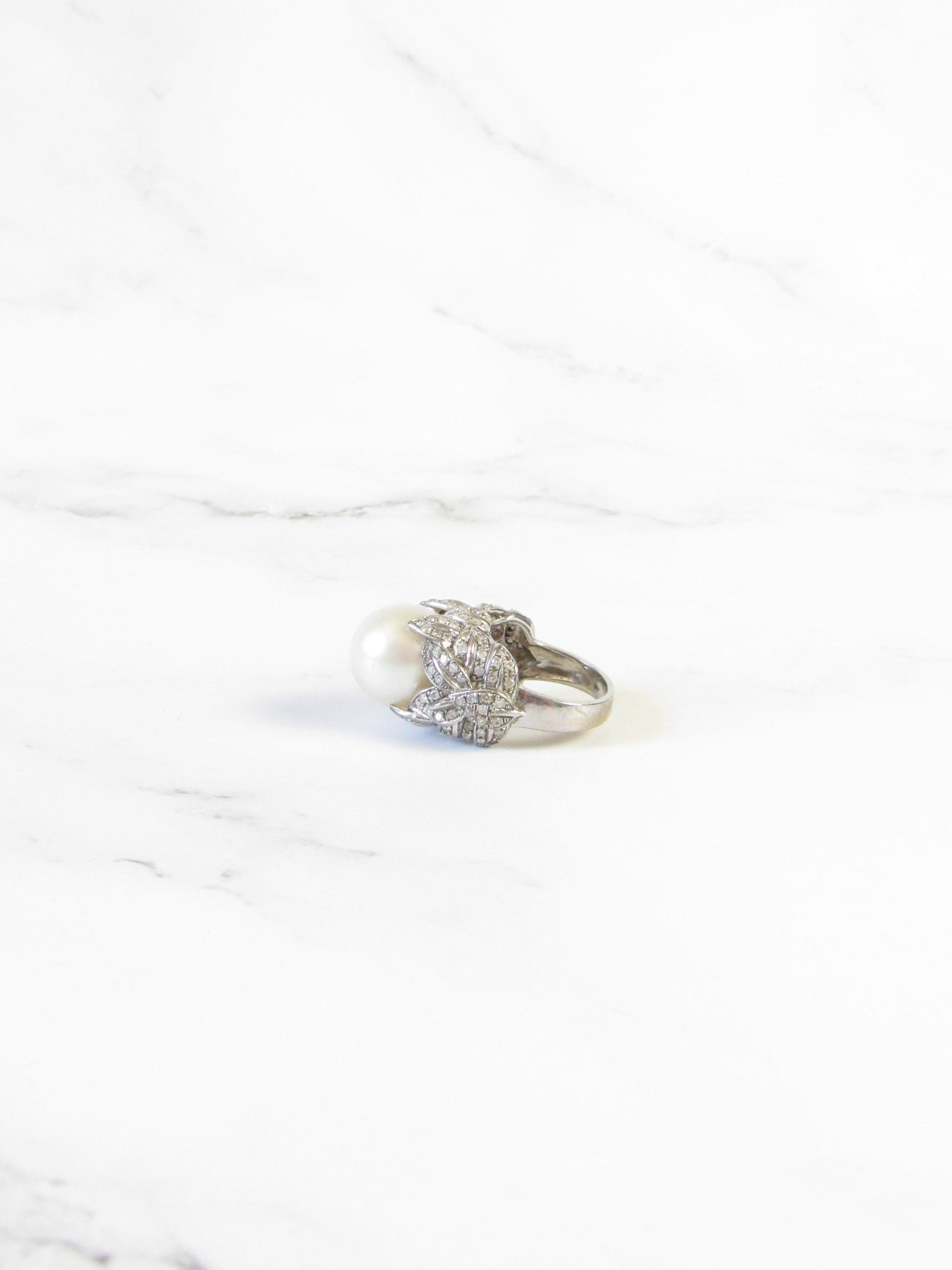 Australian South Sea Pearl and Diamond 18K White Gold Ring