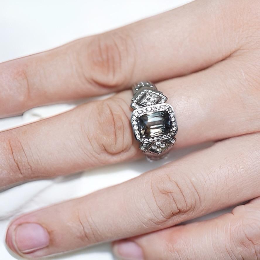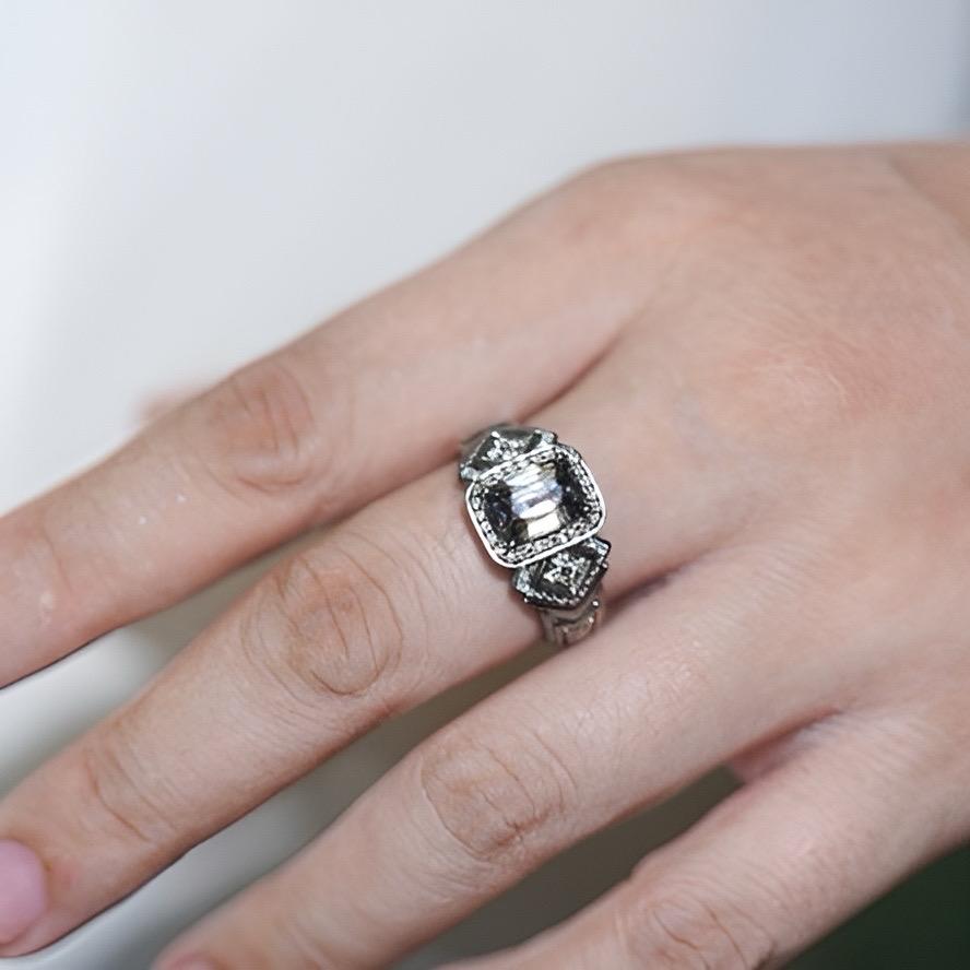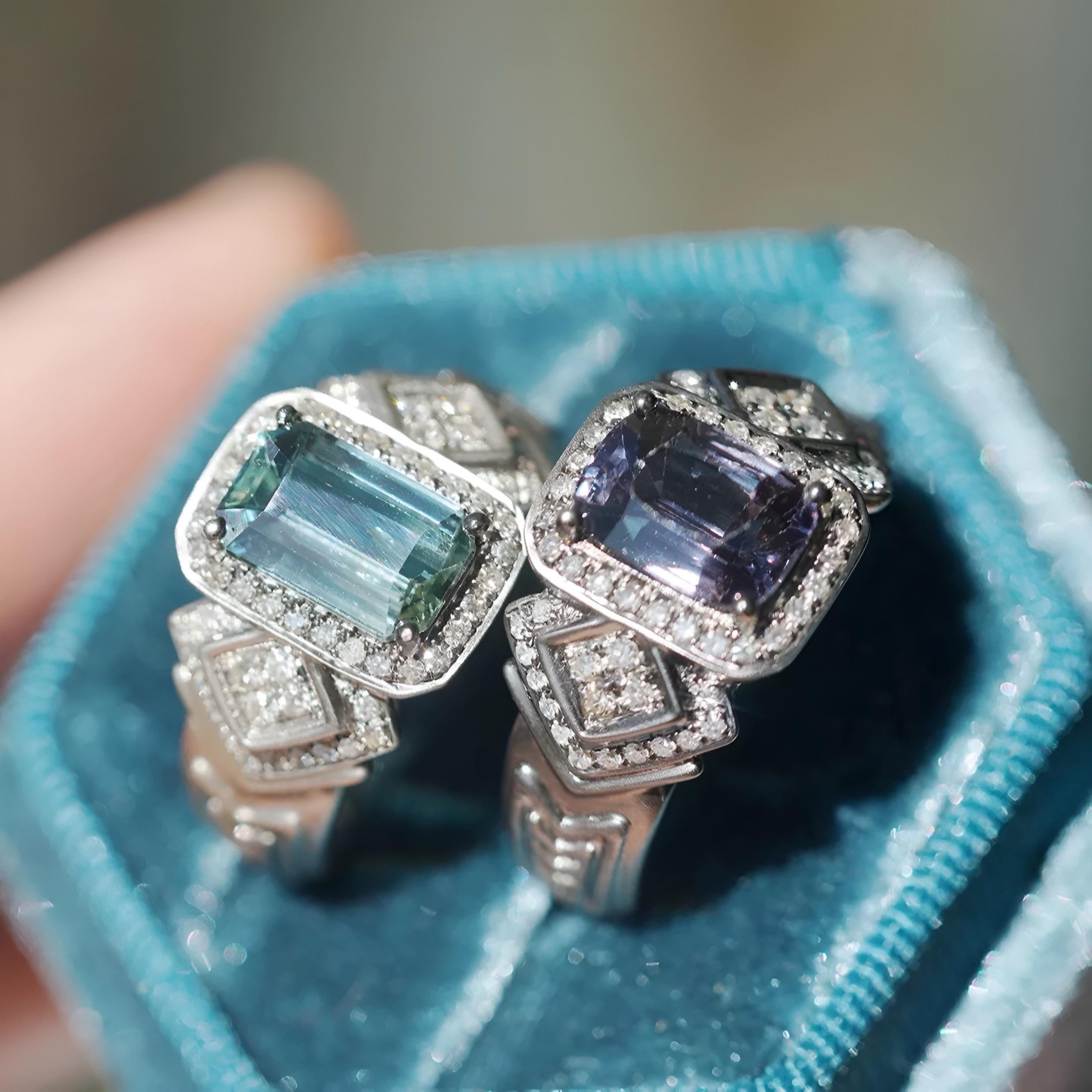 Imagine holding the moment when dusk meets night, when colors blend seamlessly into an artistic masterpiece. The bold yet refined design evokes the grandeur of Art Deco elegance, reinterpreted for the modern connoisseur. Every detail—from the meticulous cut of the sapphire to the brilliance of the diamonds—is a testament to the jeweler’s vision of wearable art.