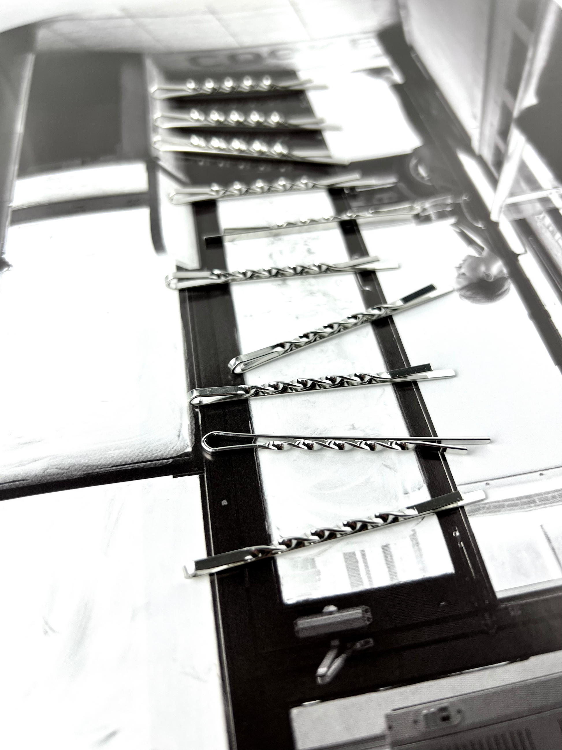 The set includes our BOITE LAQUE signature silver bobby pins that perfectly complement the elegance of this bridal hairpin.