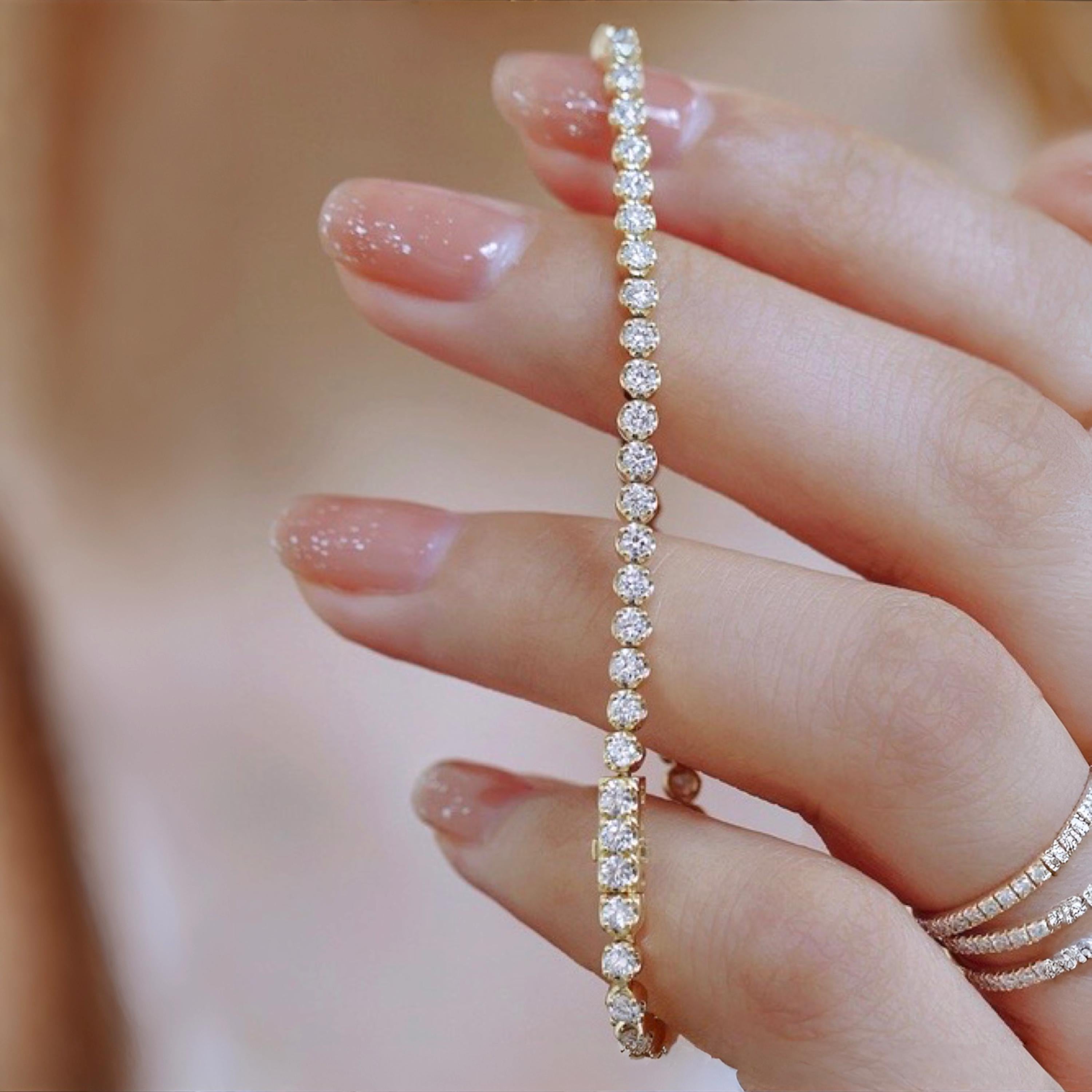 • Stone Size: Approx. 0.03–0.035 ct each (~58–60 stones in 6.9”, price and diamond increases base on length )