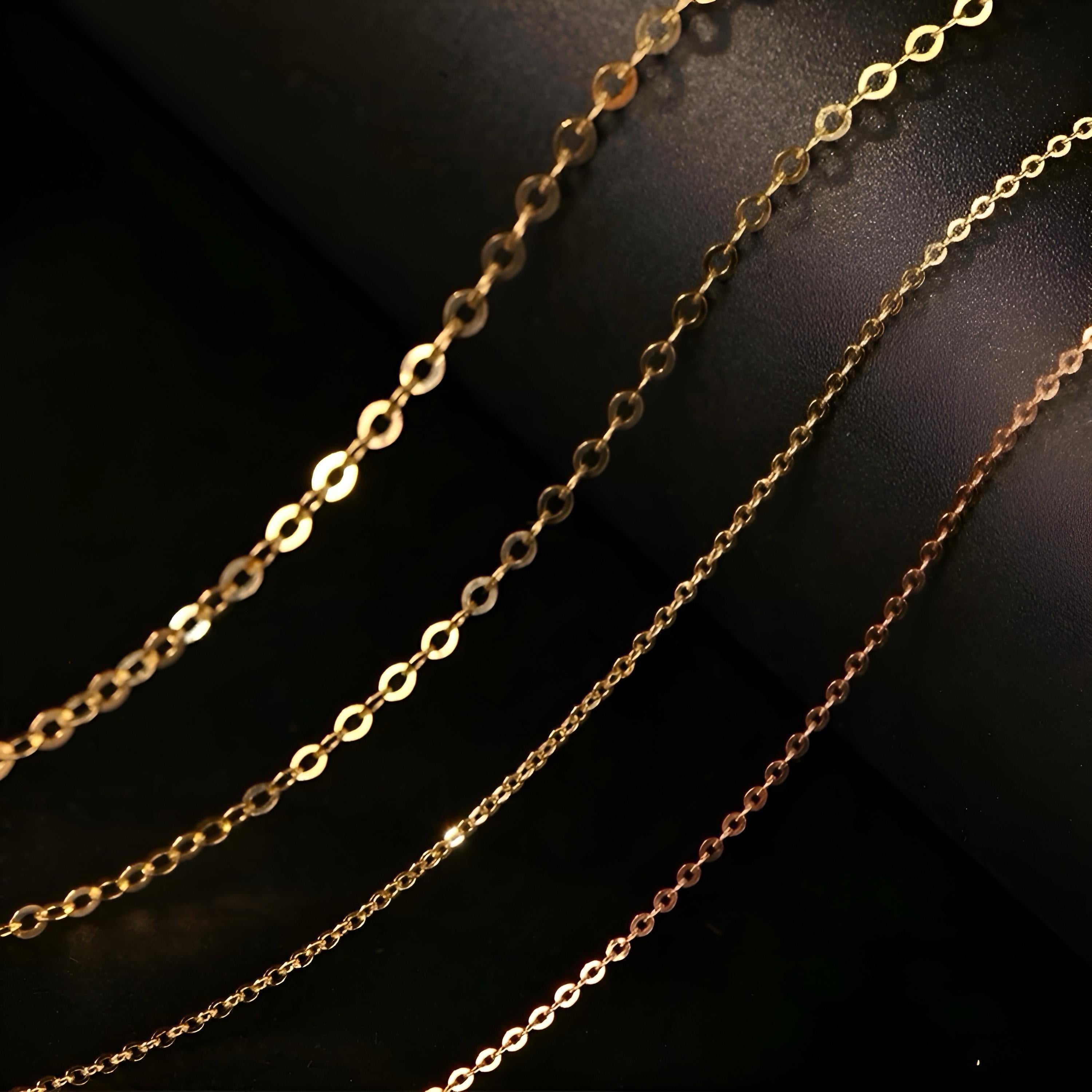 18K solid gold “O” chain necklace, designed for versatility and elegance. Available in customizable lengths ranging from 15 to 28 inches, this chain is perfect for layering or wearing solo as a statement piece.