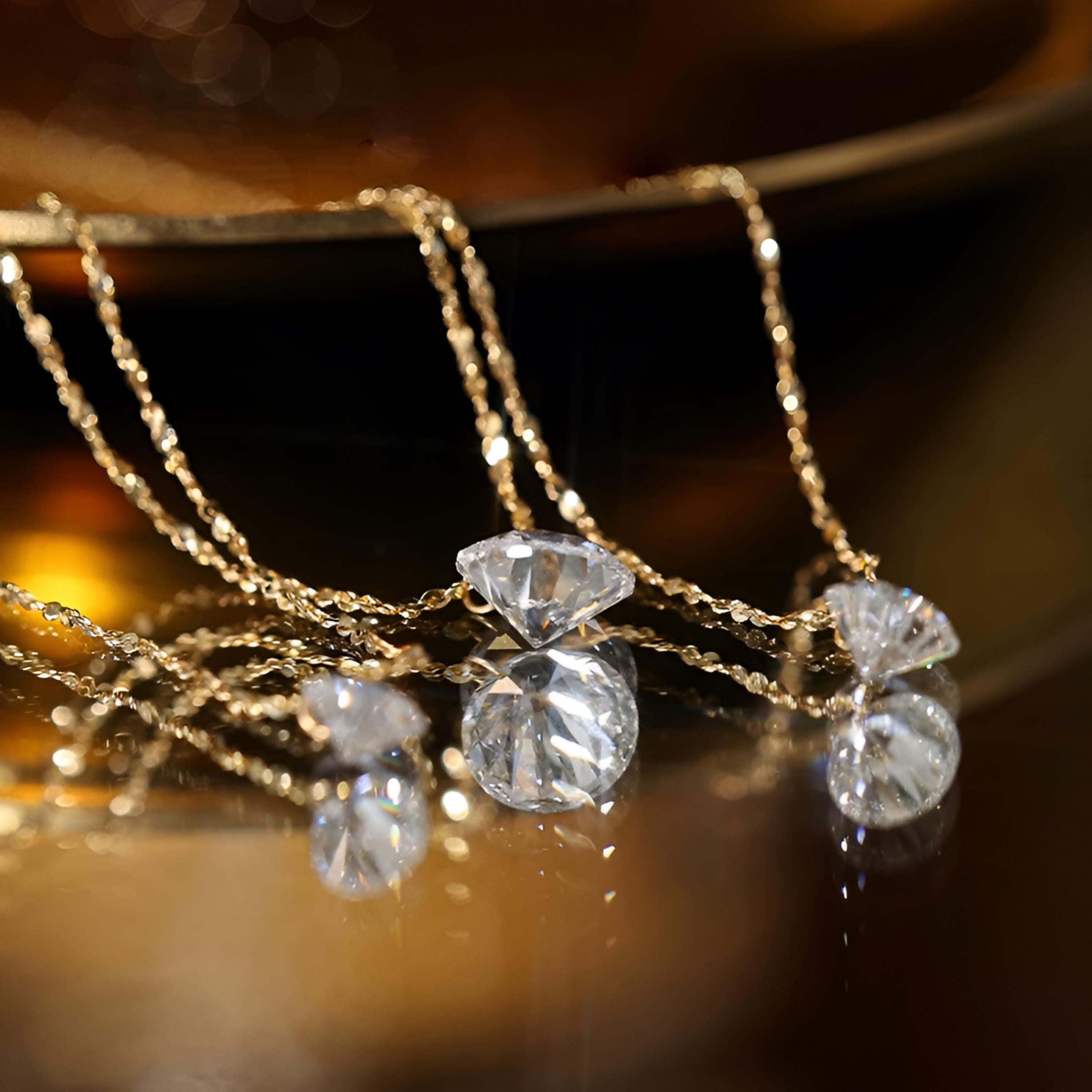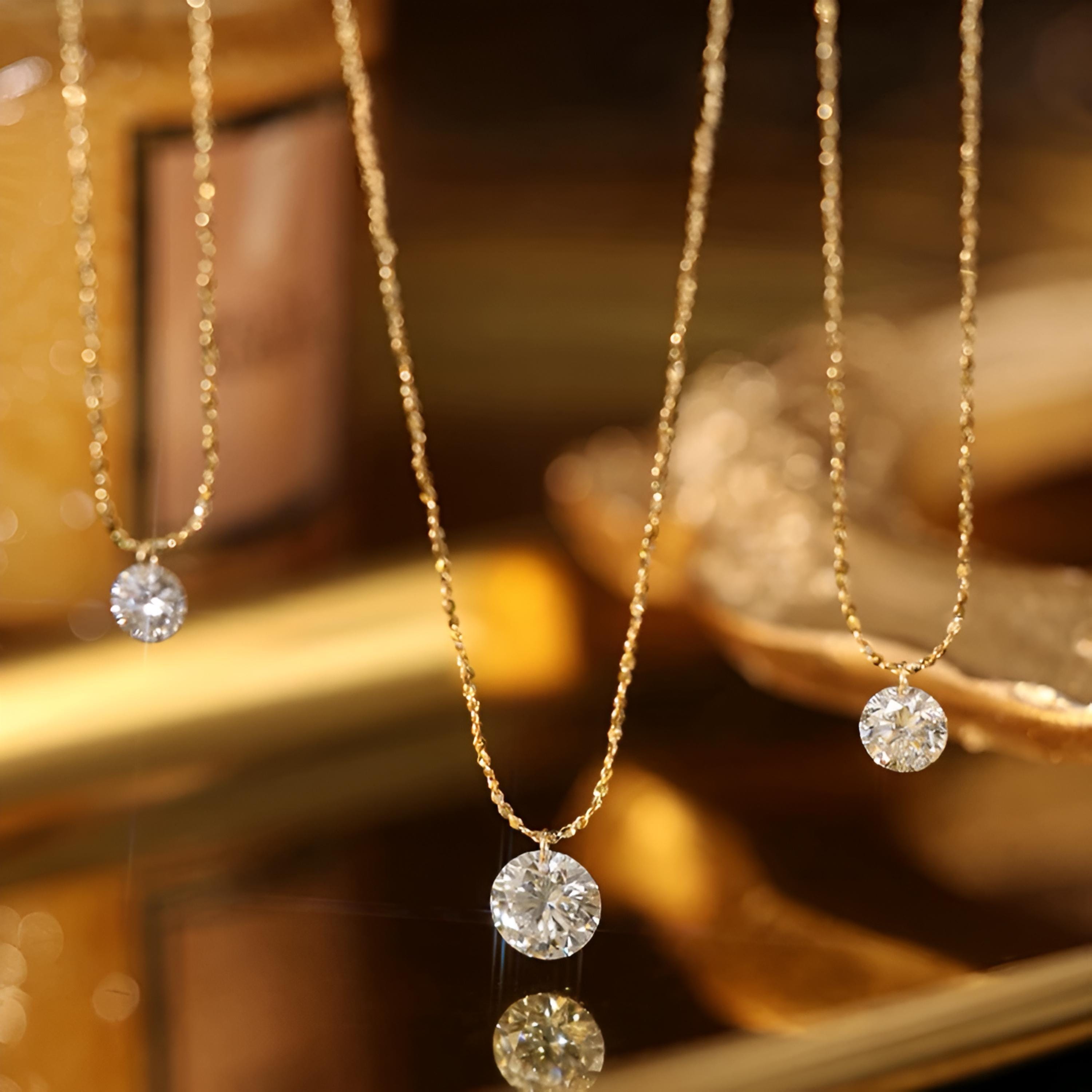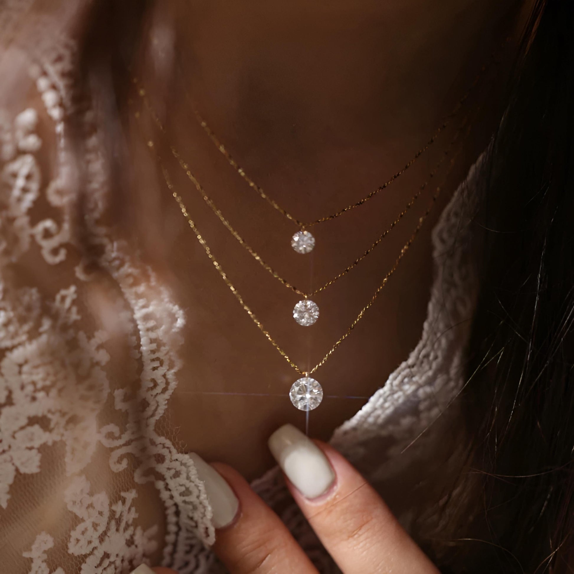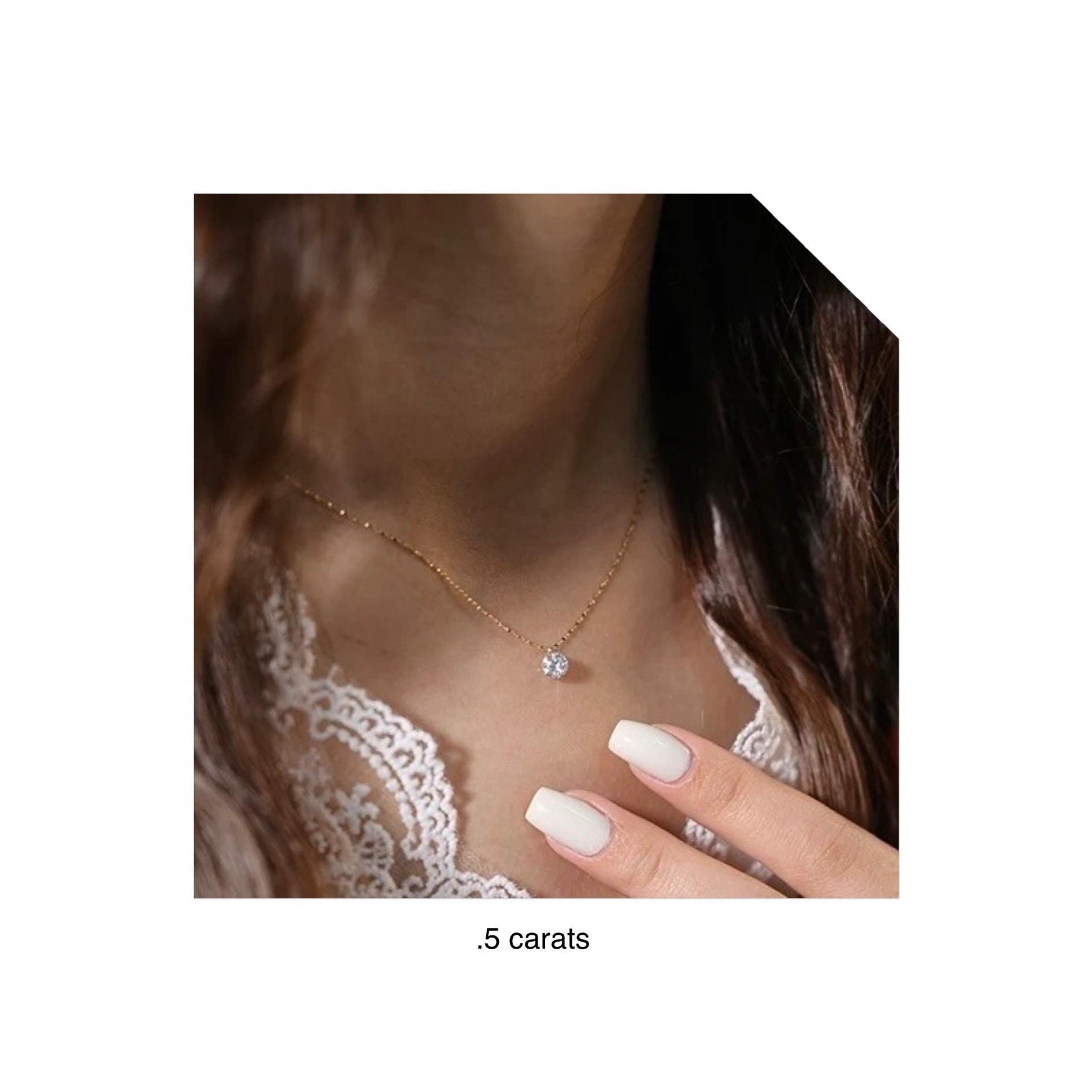 Dainty 18K Solid Gold Diamond Necklace | Soft Sparkle Solitaire Pendant | 0.25ct 0.5ct 1ct