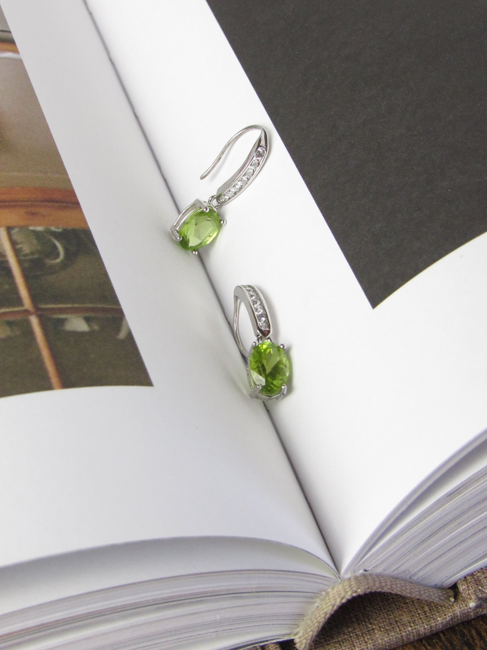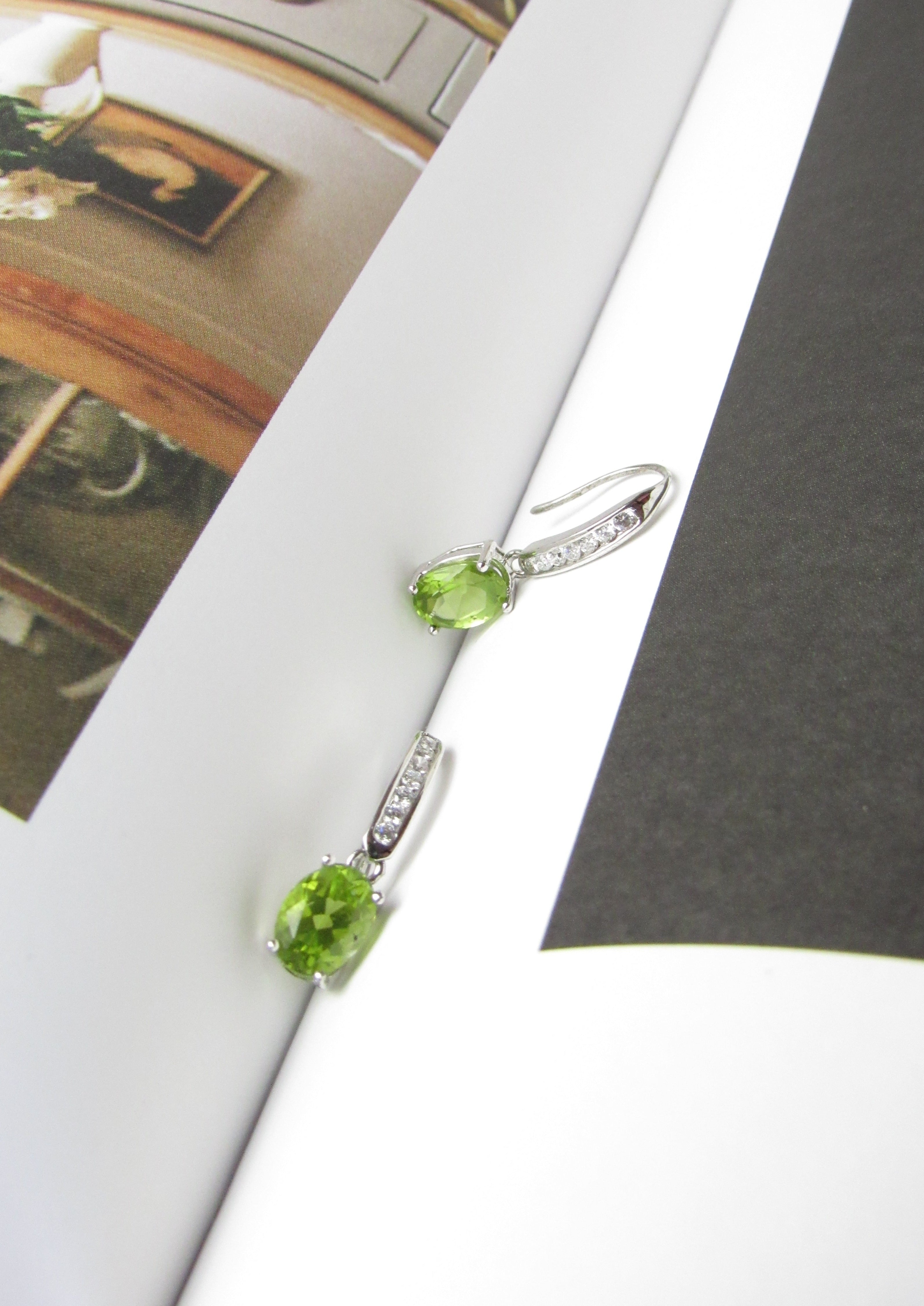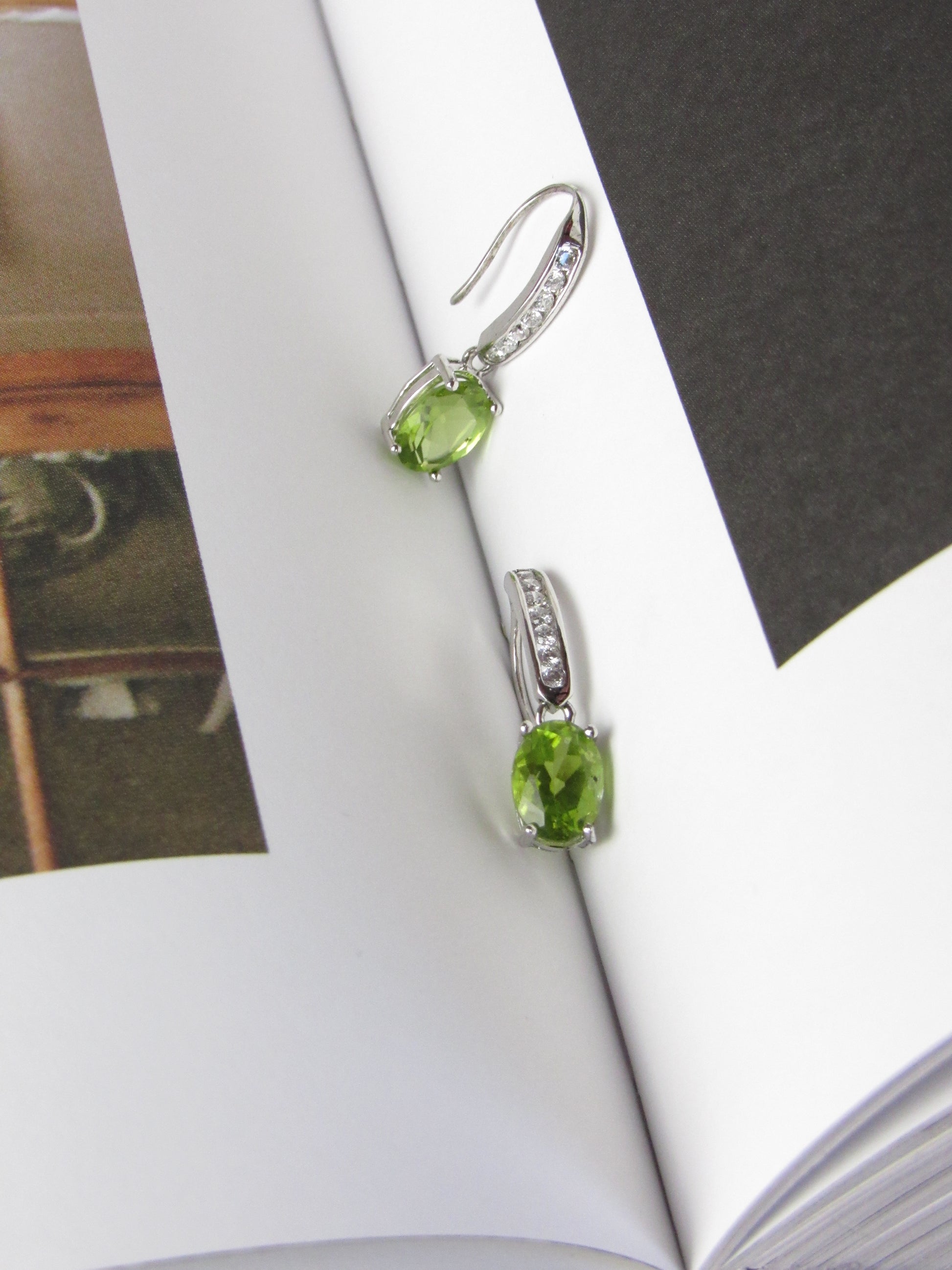 Dainty 6 Carats Oval Peridot Drop Earrings