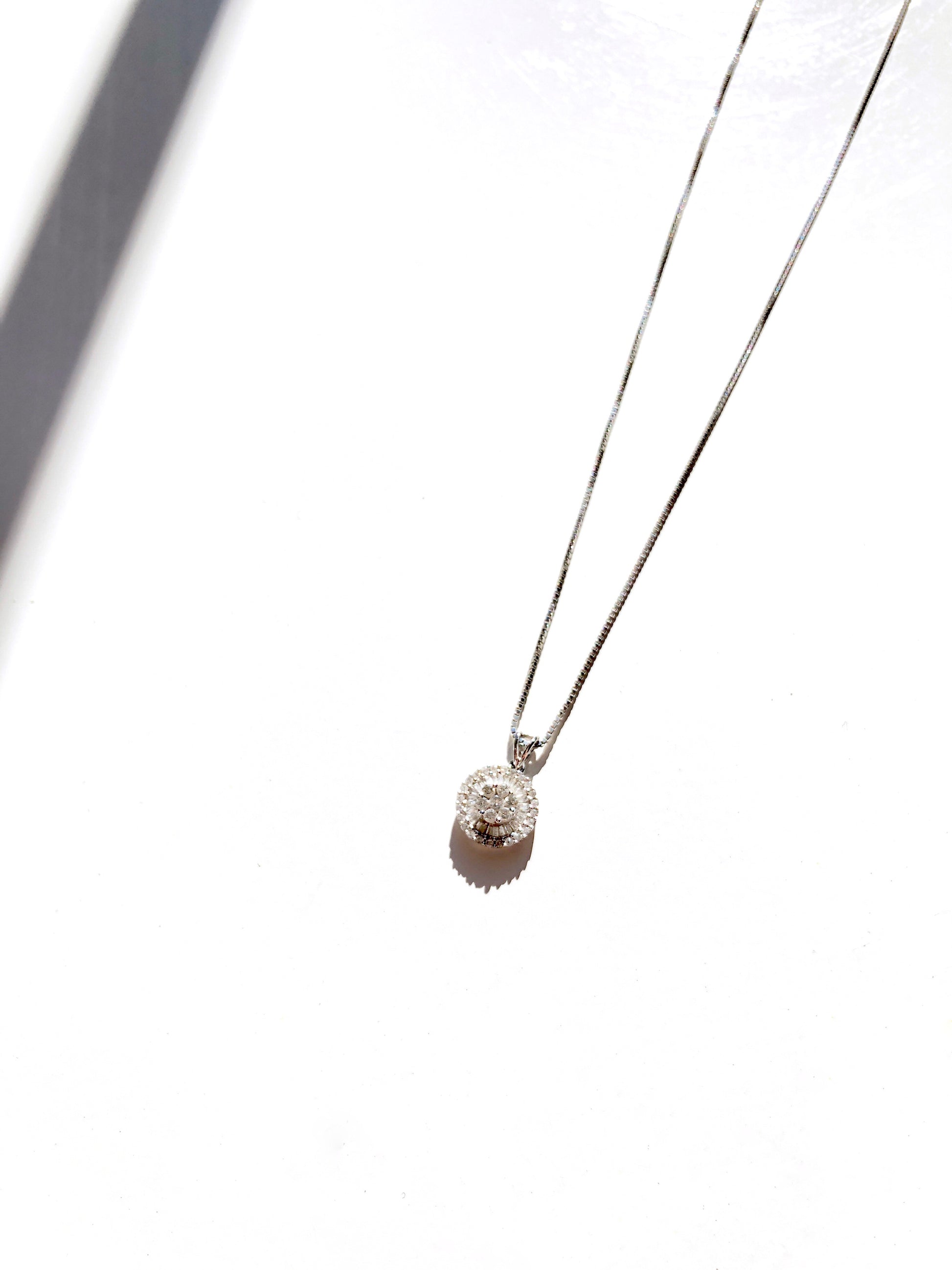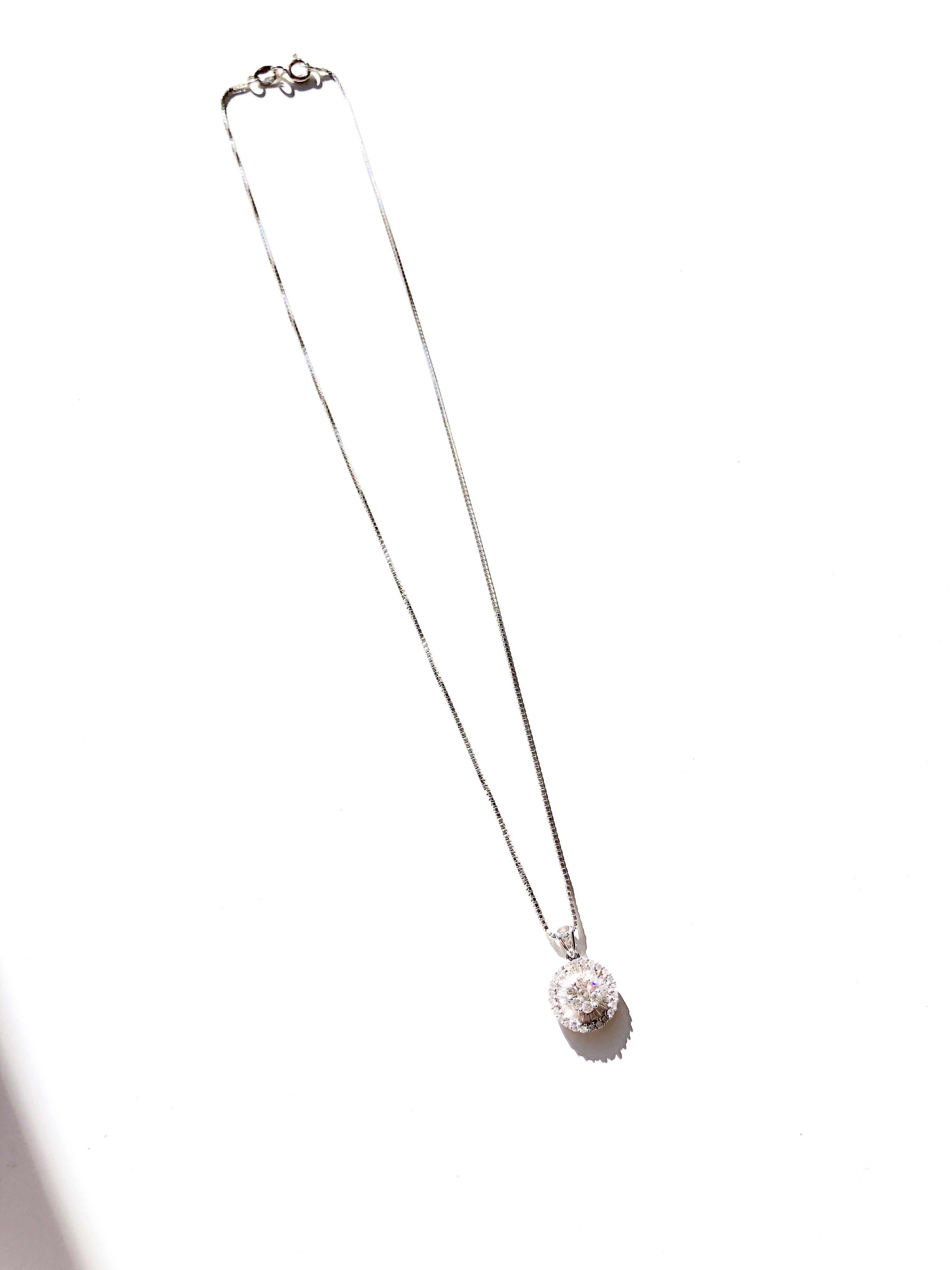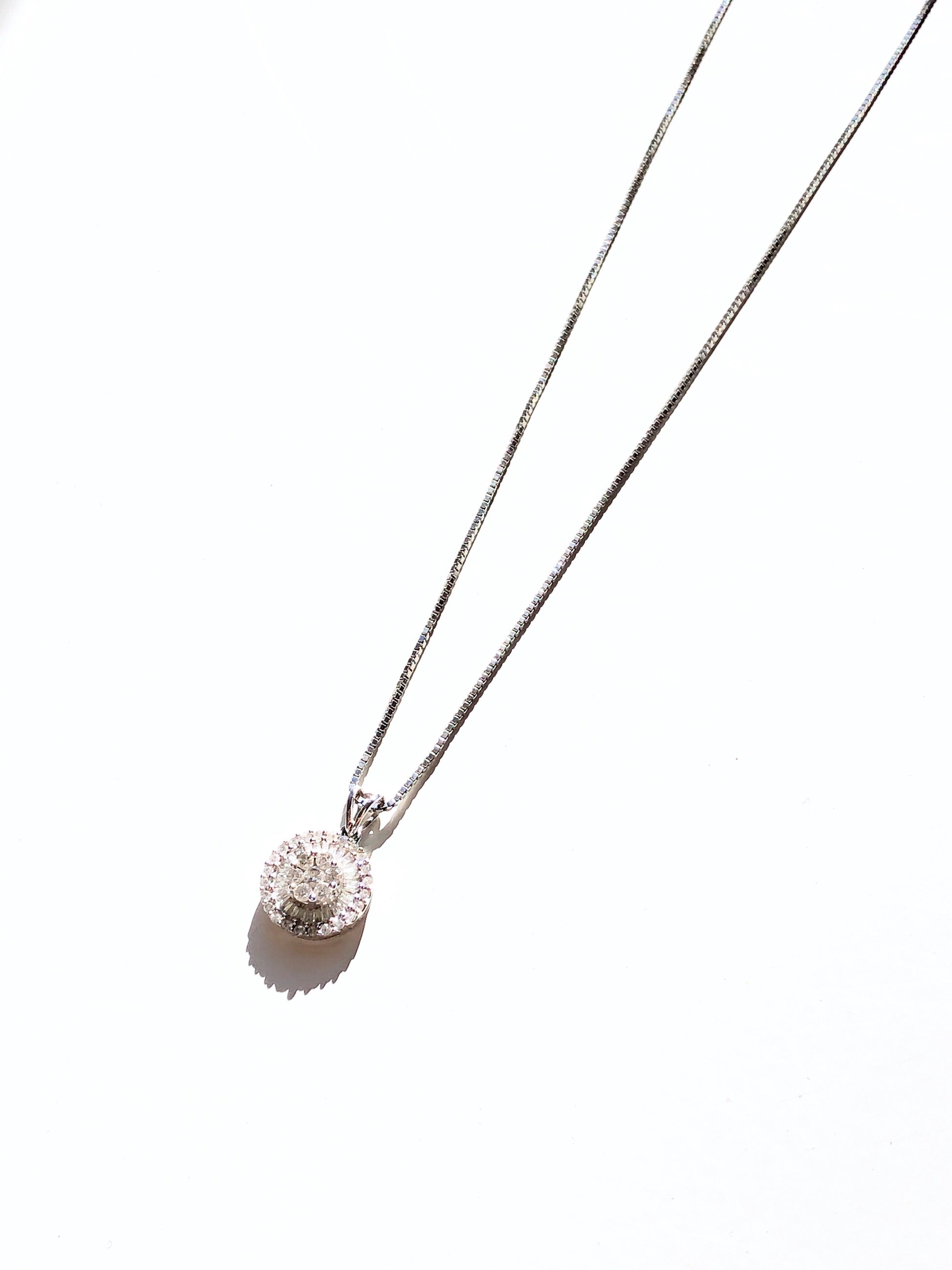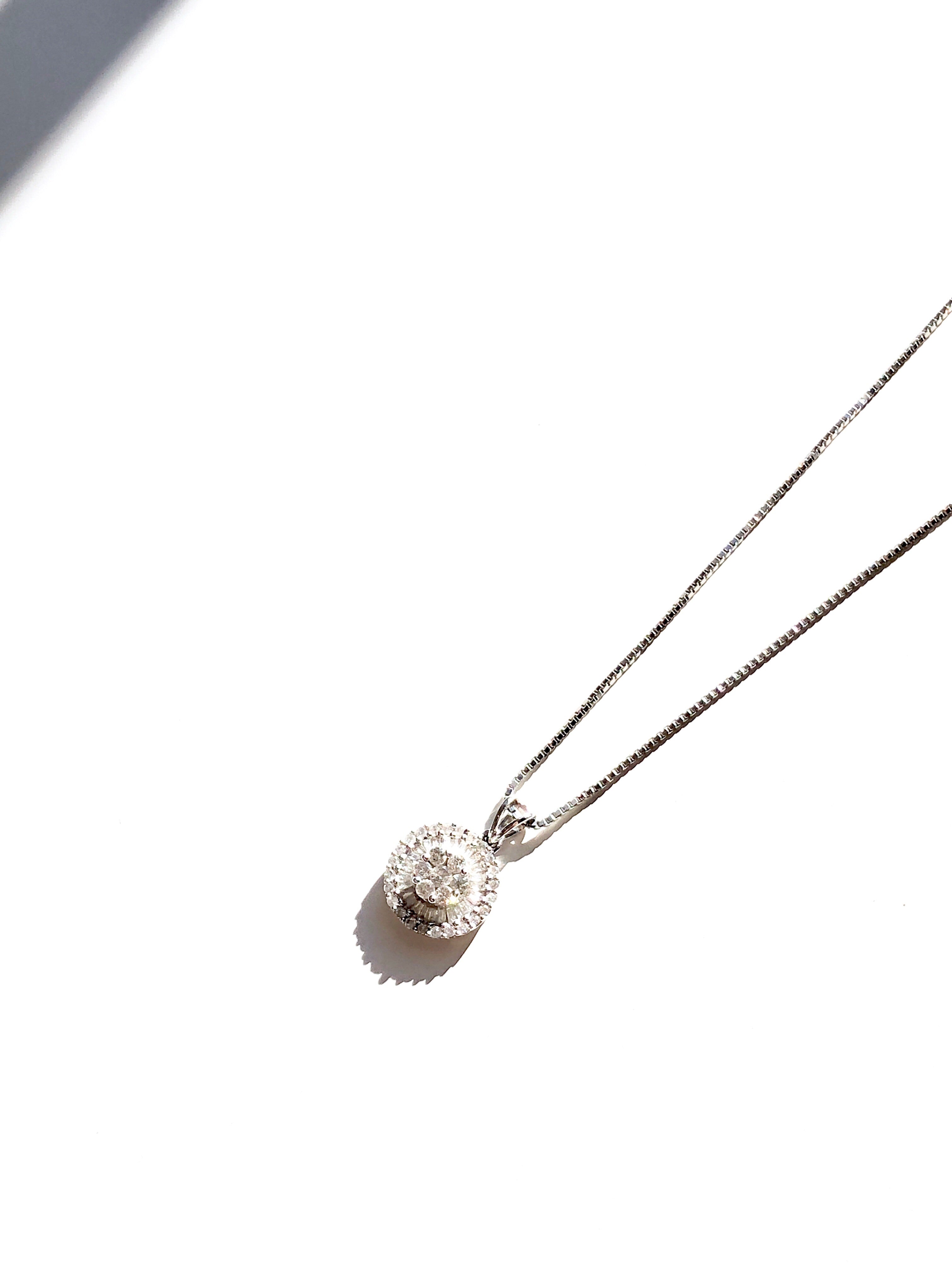 Hand-set, shining baguette and round diamonds sparkle in the stunning dandelion-inspired setting of this elegant pendant necklace. Its sparkling simplicity and elegance make it perfect for modern layering.