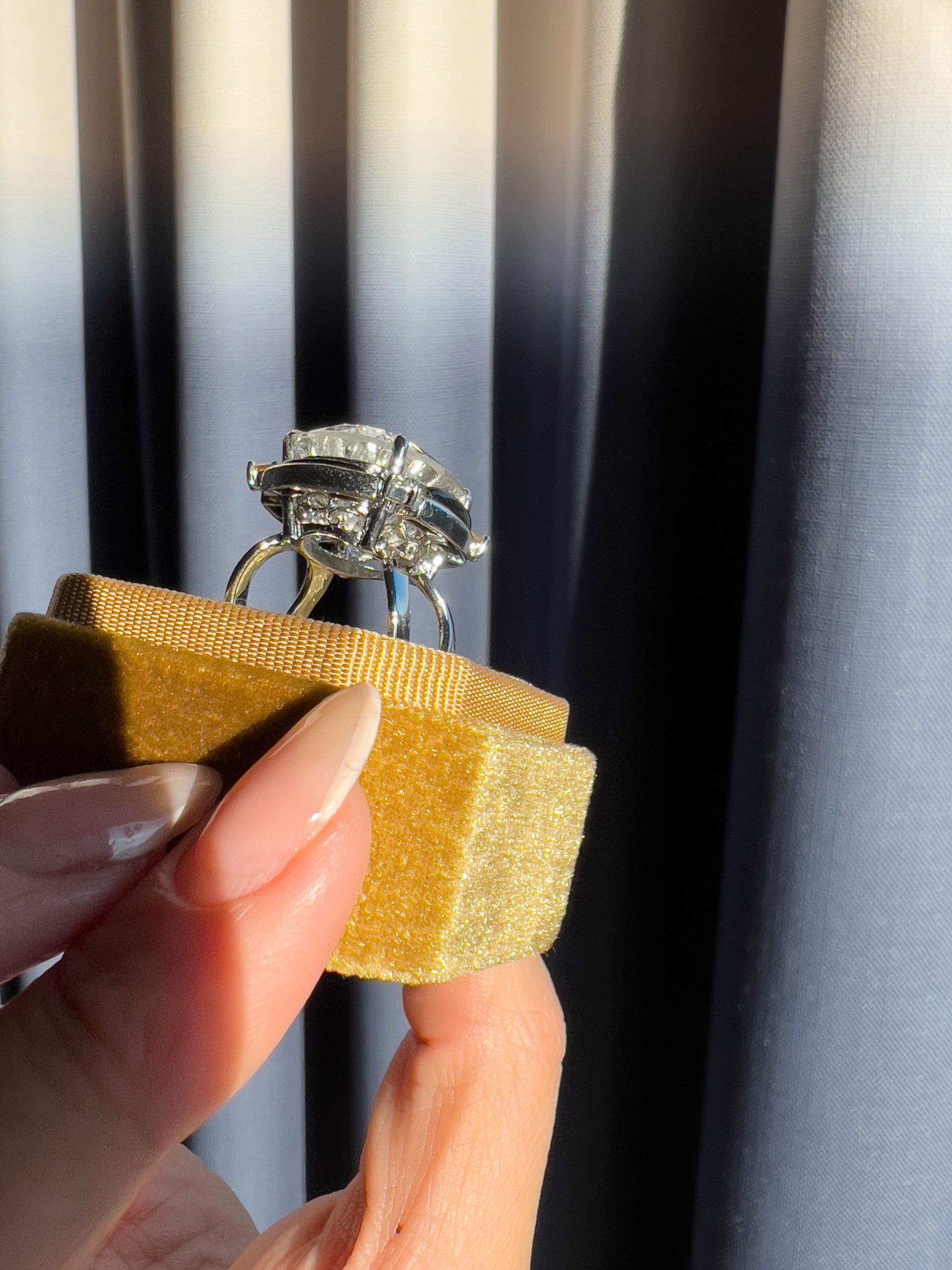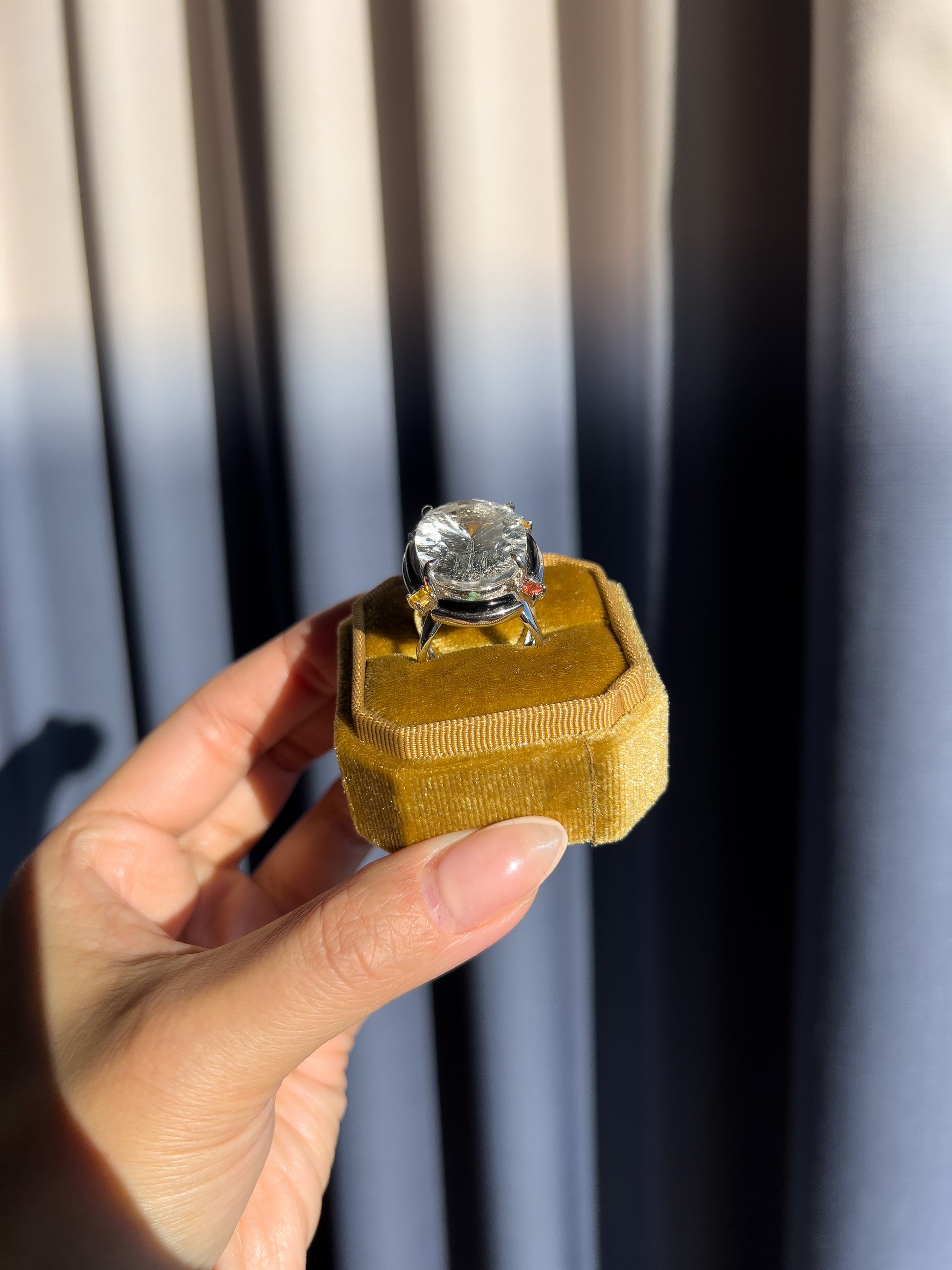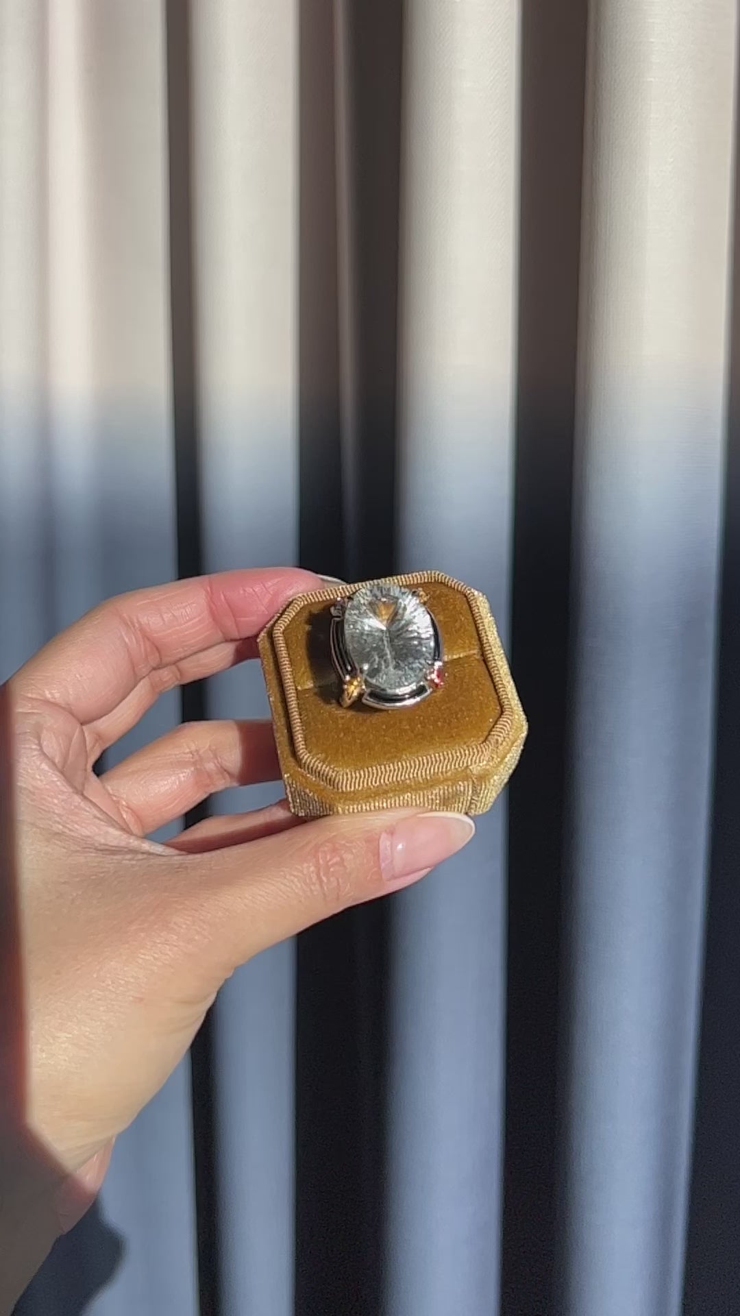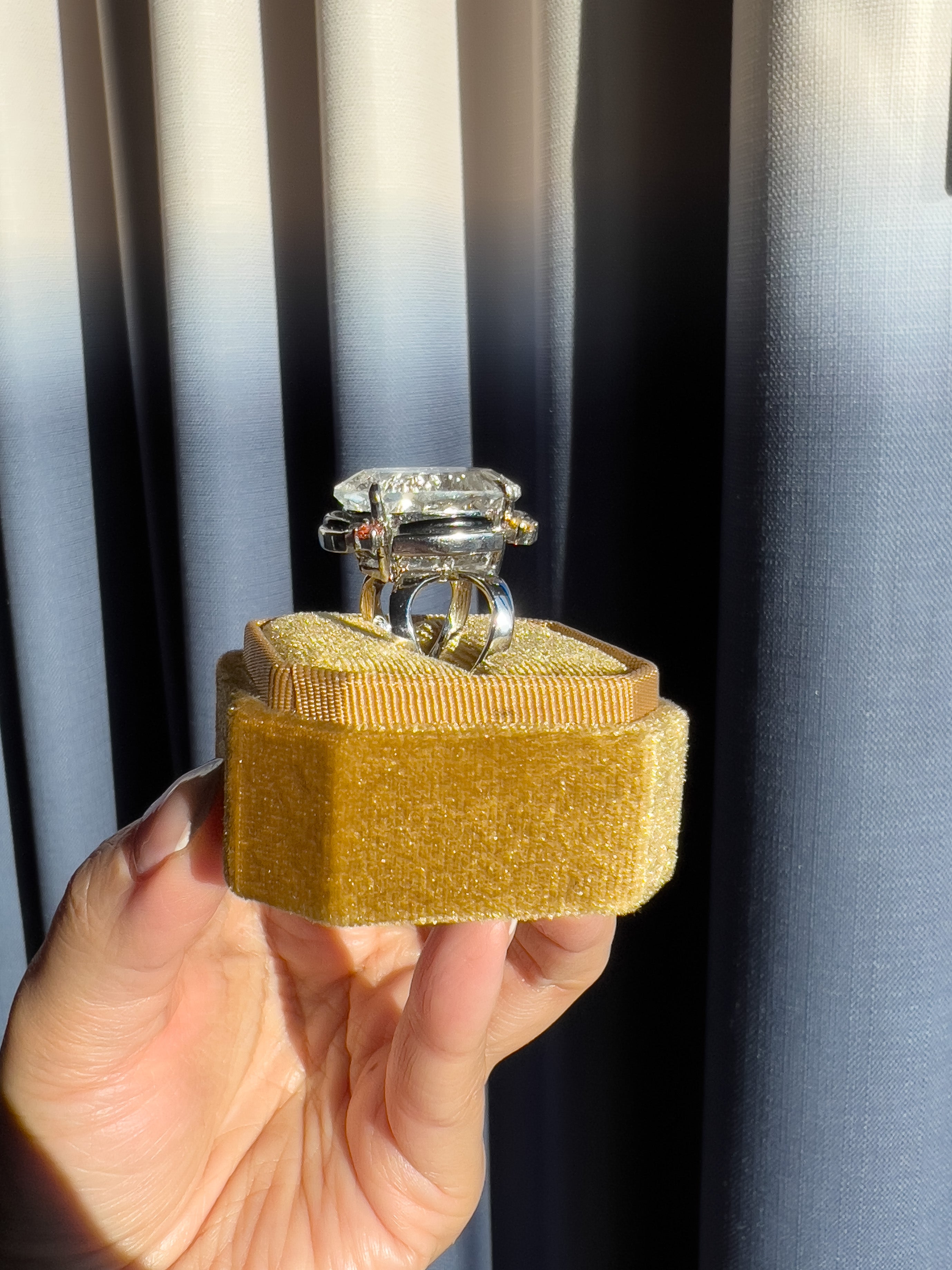 Elevate your style game with our one of a kind Deco Cocktail Ring featuring a stunning 43 carat natural crystal quartz and garnets, add a touch of art deco vibe to your look with this bold and daring piece.