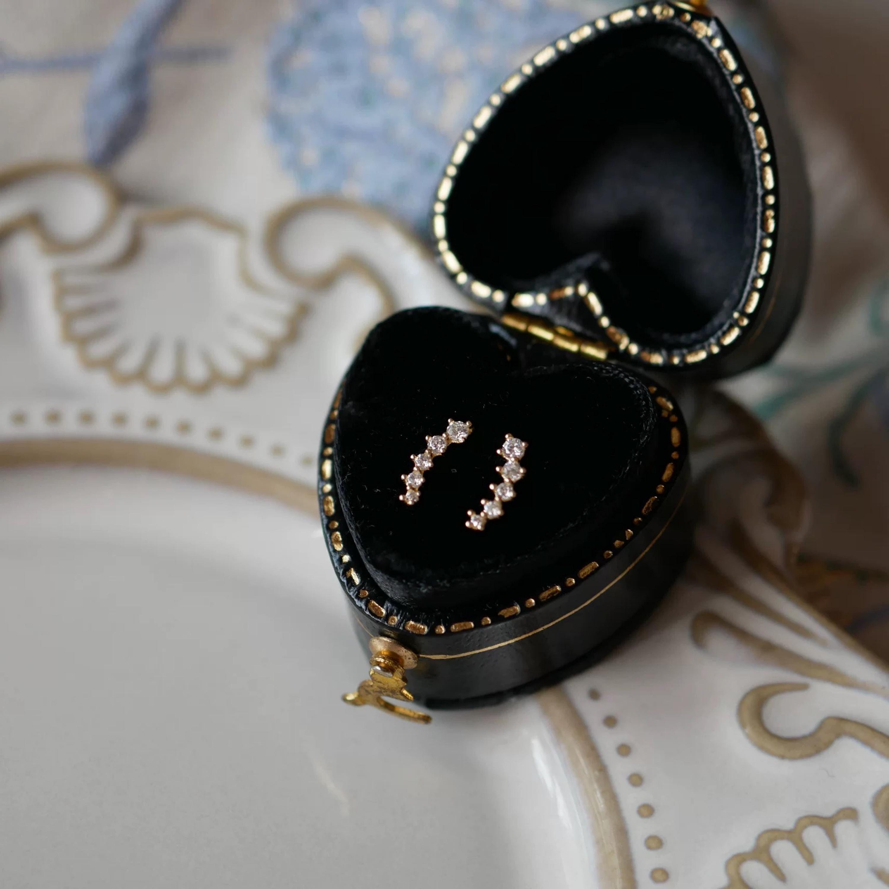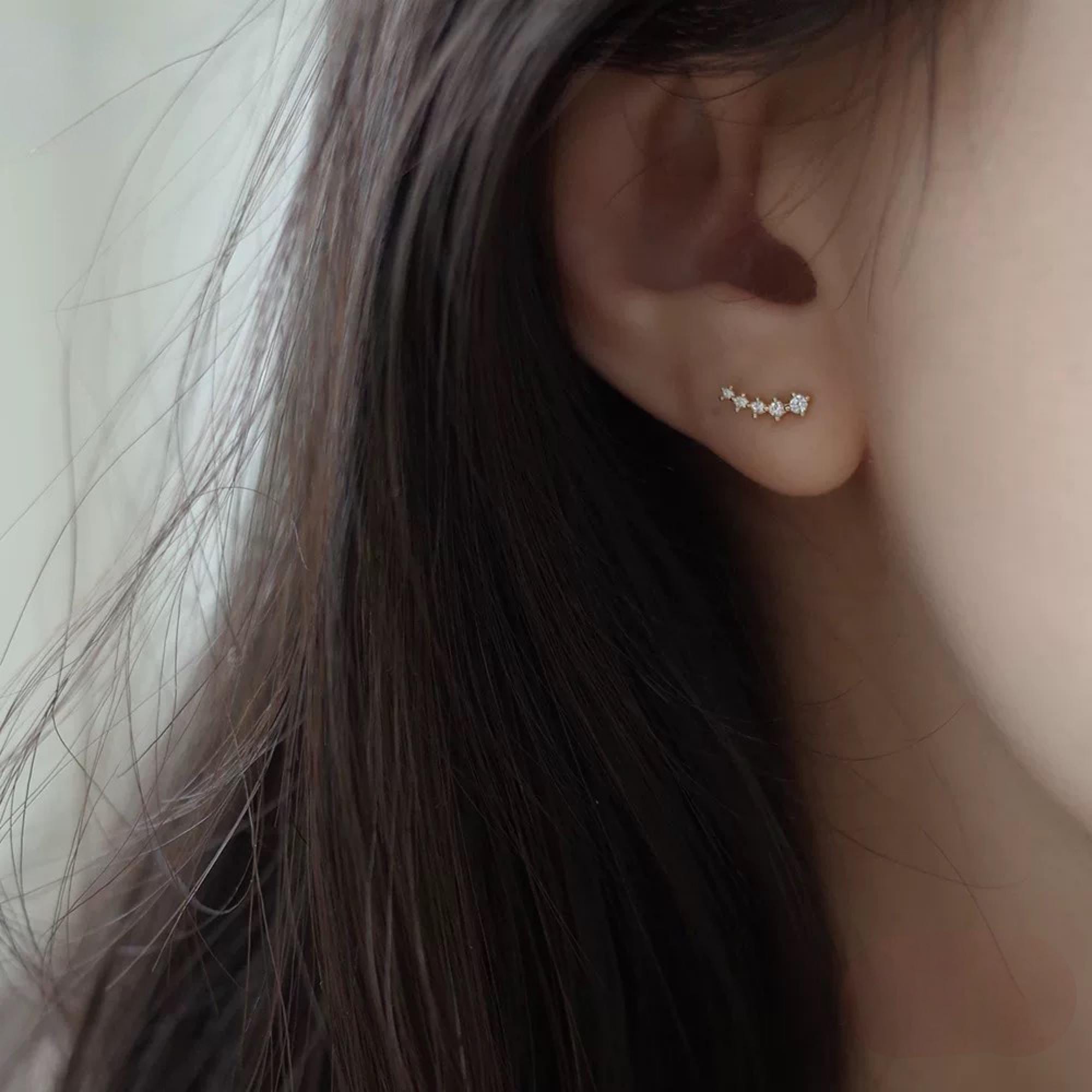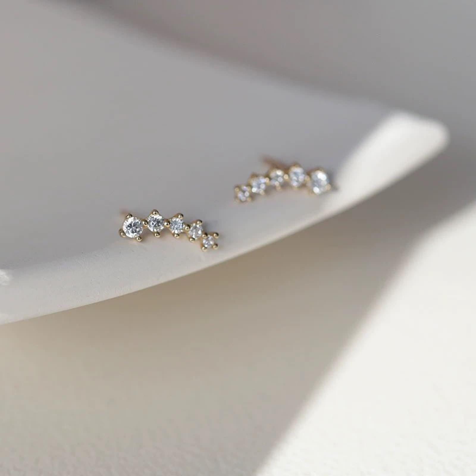 A touch of refined sparkle—these dainty diamond climber earrings are made with solid 10K gold and feature a graduated arc of 5 tiny diamonds on each side. Set in a graceful curve that hugs the earlobe, they’re subtle yet full of presence.