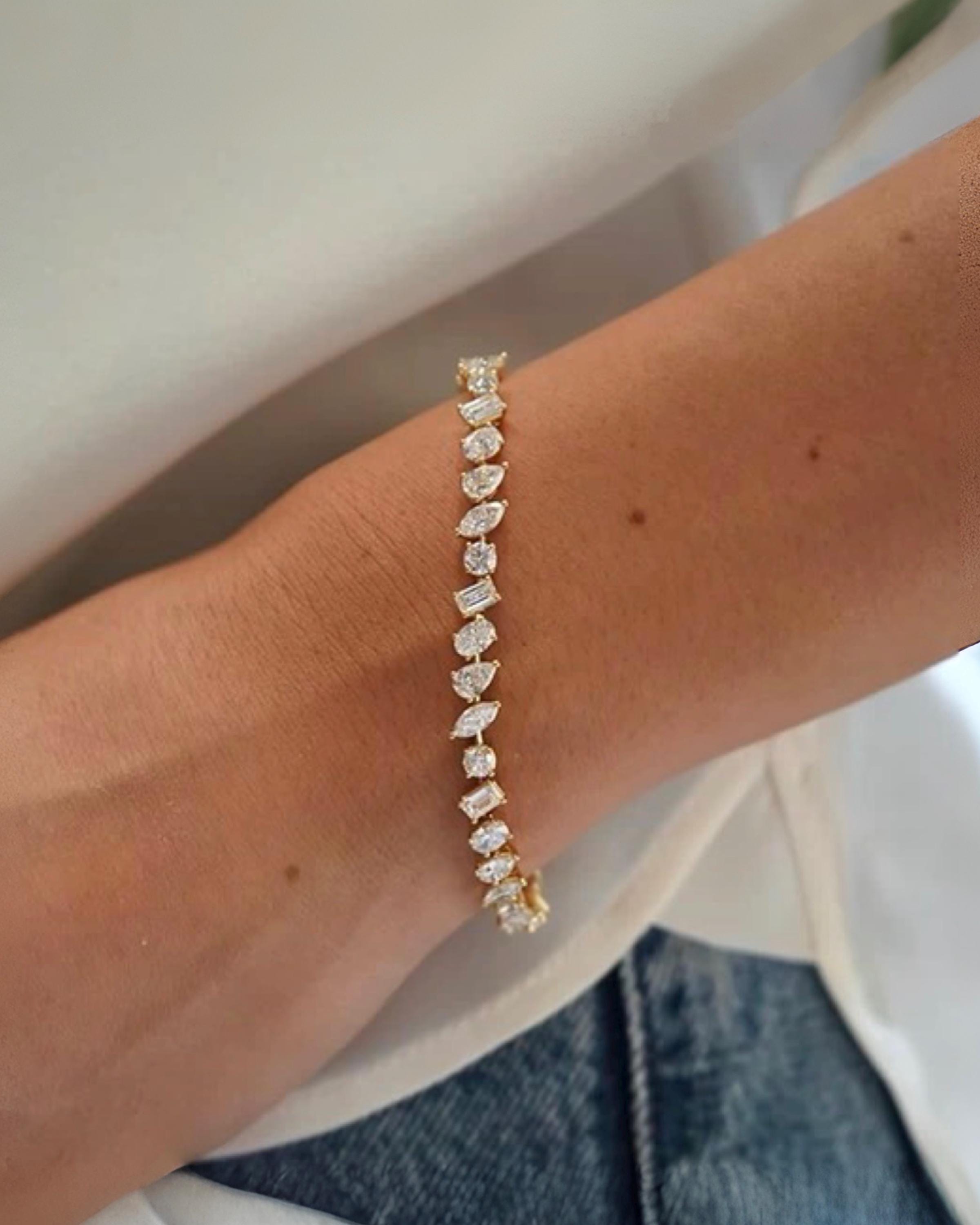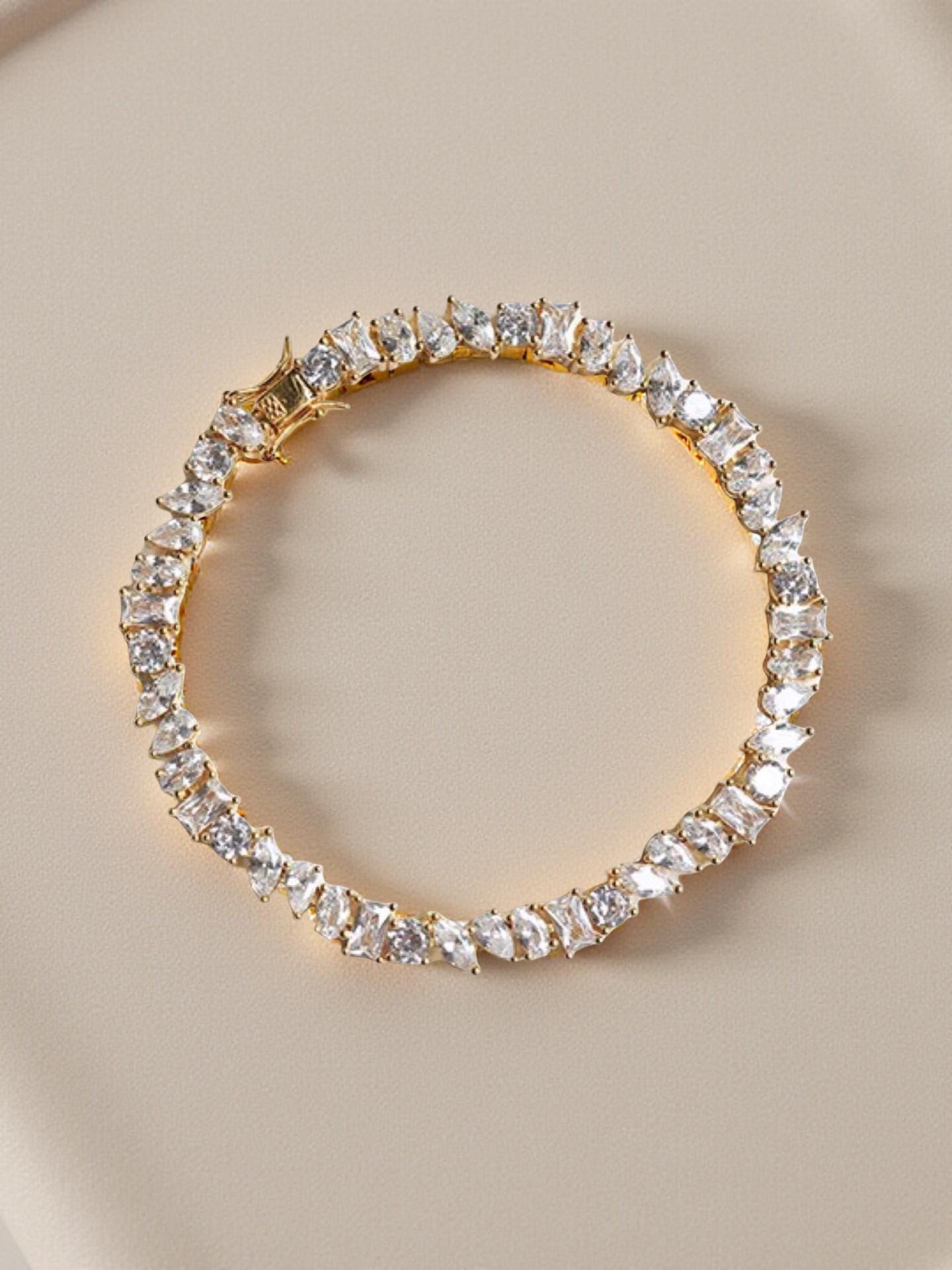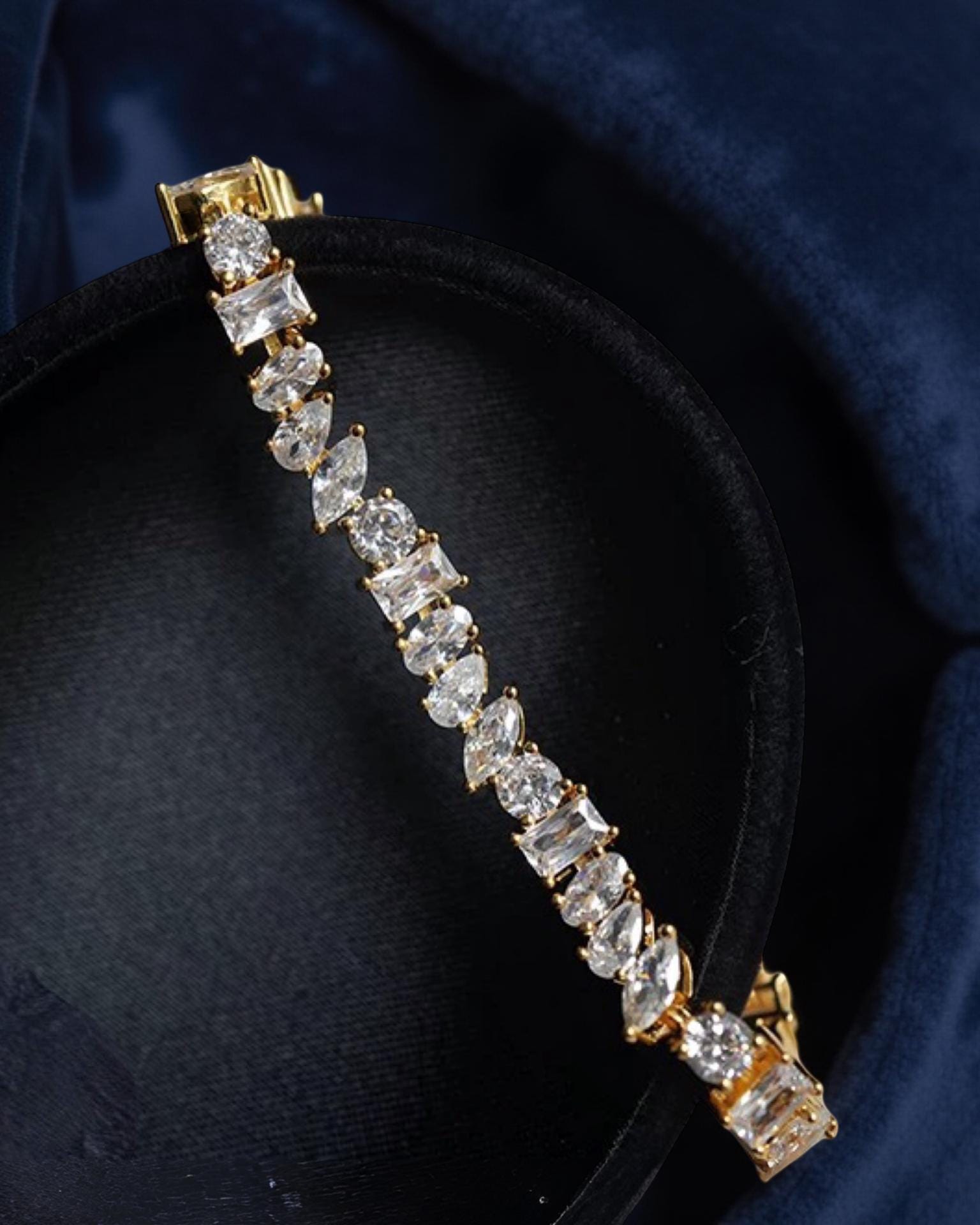 Crafted with premium 5A Zircon stones, the highest grade of diamond alternative but very affordable , each stone is precision-cut for brilliance and clarity that rivals fine diamonds. Set in an 18k gold finish , the result is a bracelet that feels supremely elegant, timeless, and versatile.