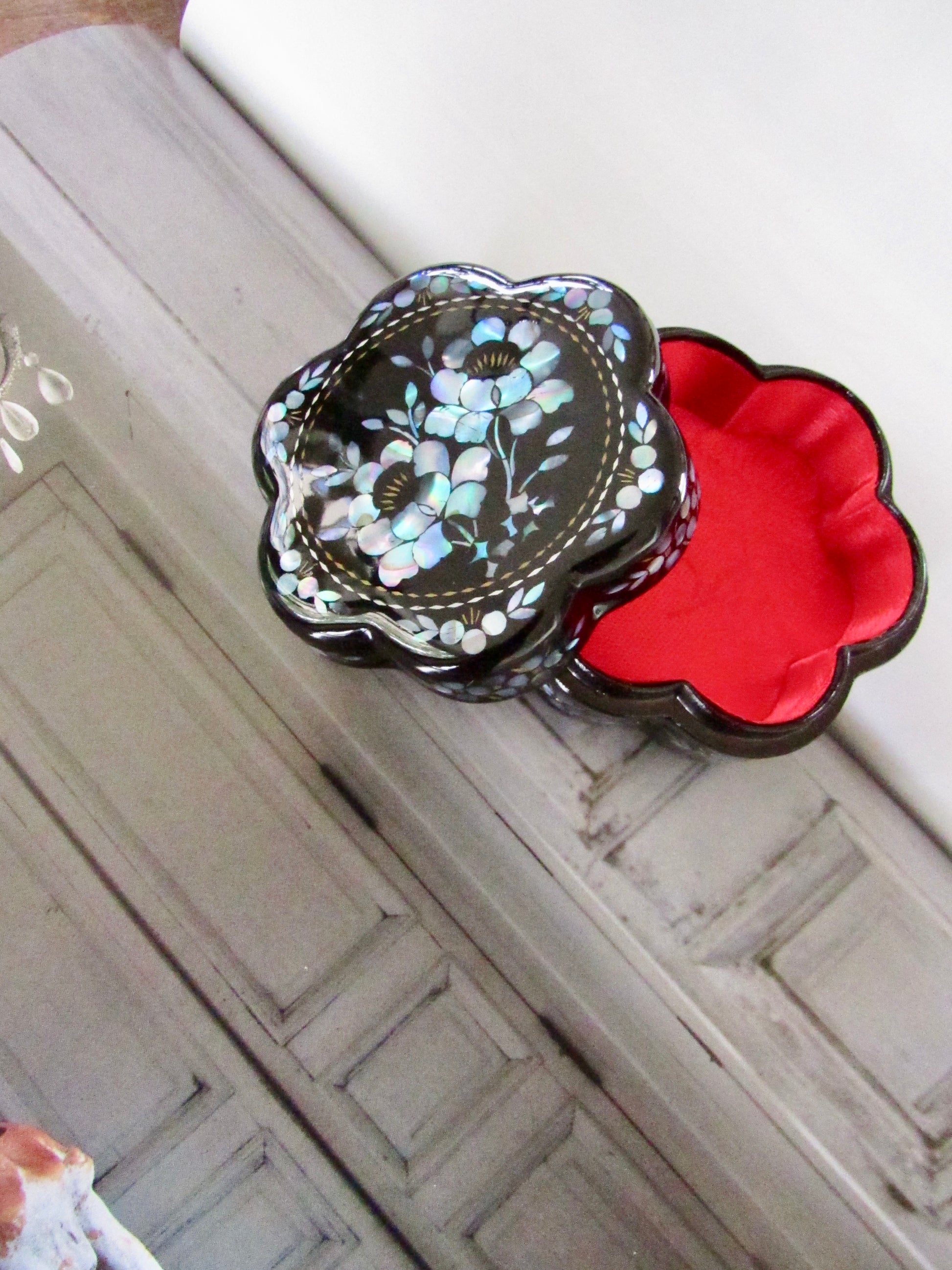 Floral Shape Mother of Pearl Lacquer Trinket box
