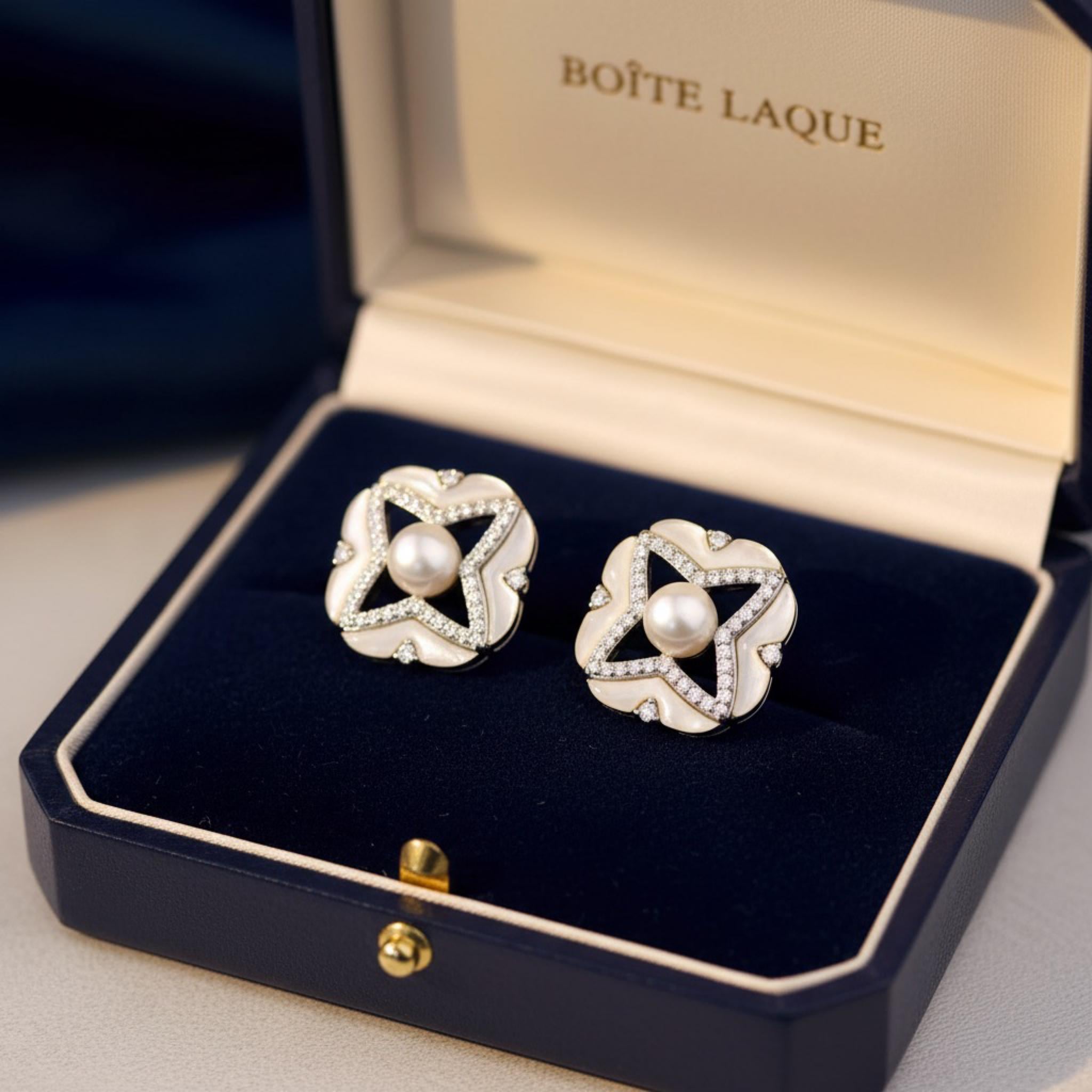 Designed with a soft Parisian elegance, these statement studs bring together natural Akoya pearls and hand-cut mother-of-pearl in a quiet-luxury silhouette. Each pair is crafted in small batches, giving you a piece that feels personal, thoughtful, and beautifully unique.