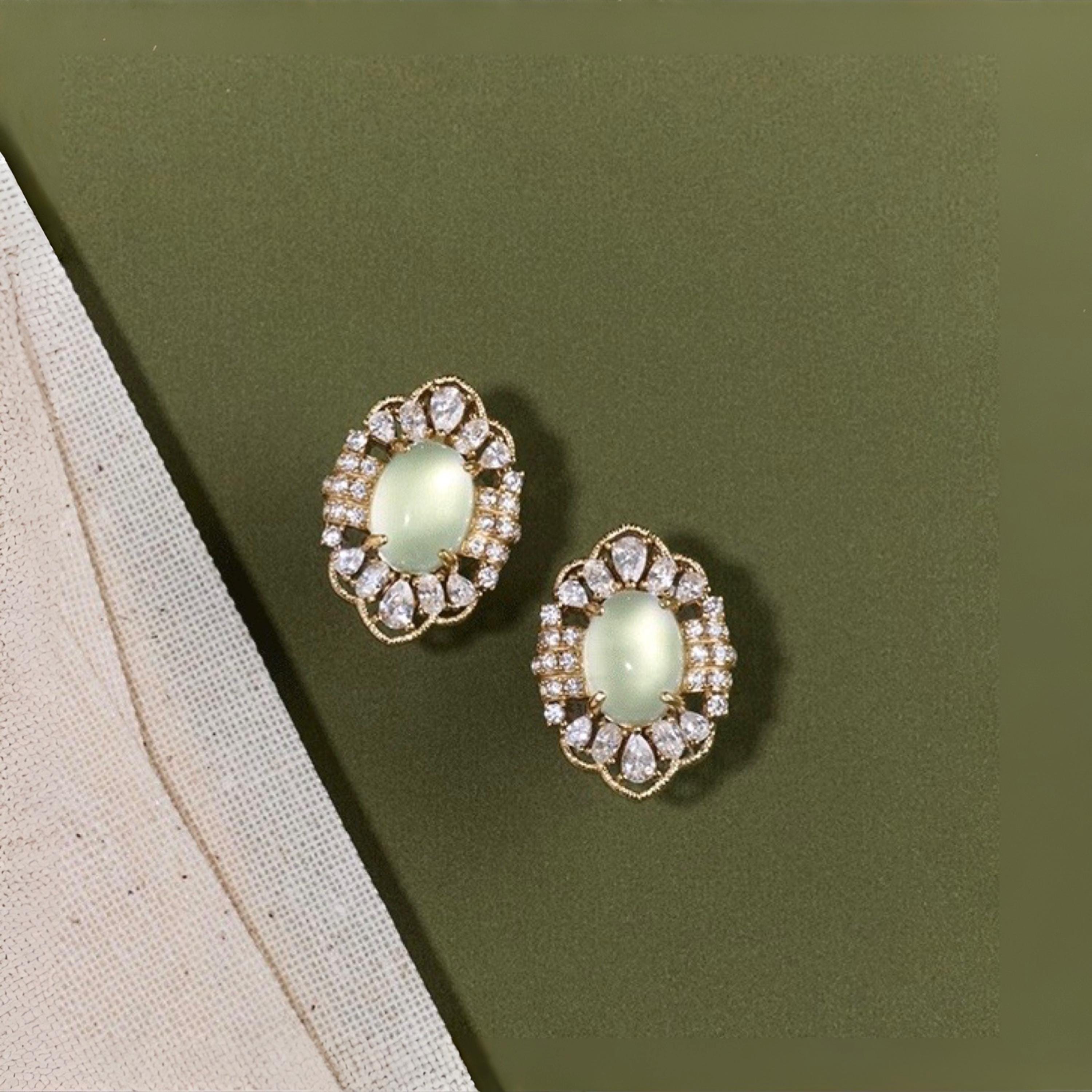 • Center stone: Natural Prehnite (oval cabochon, ~10mm)