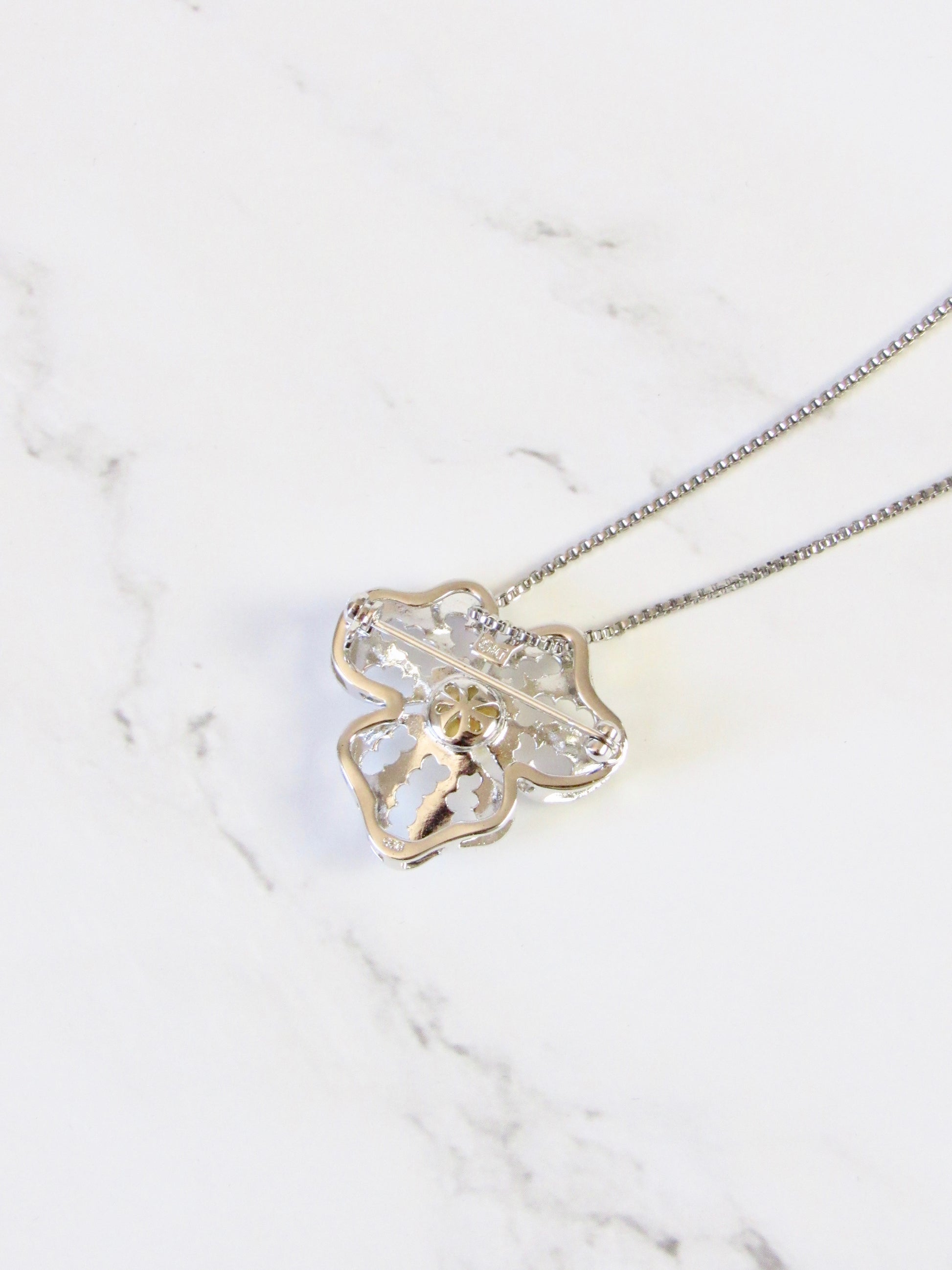 This elegant and refreshing pendant brooch features a gorgeous cream white freshwater button pearl with exquisite luster.