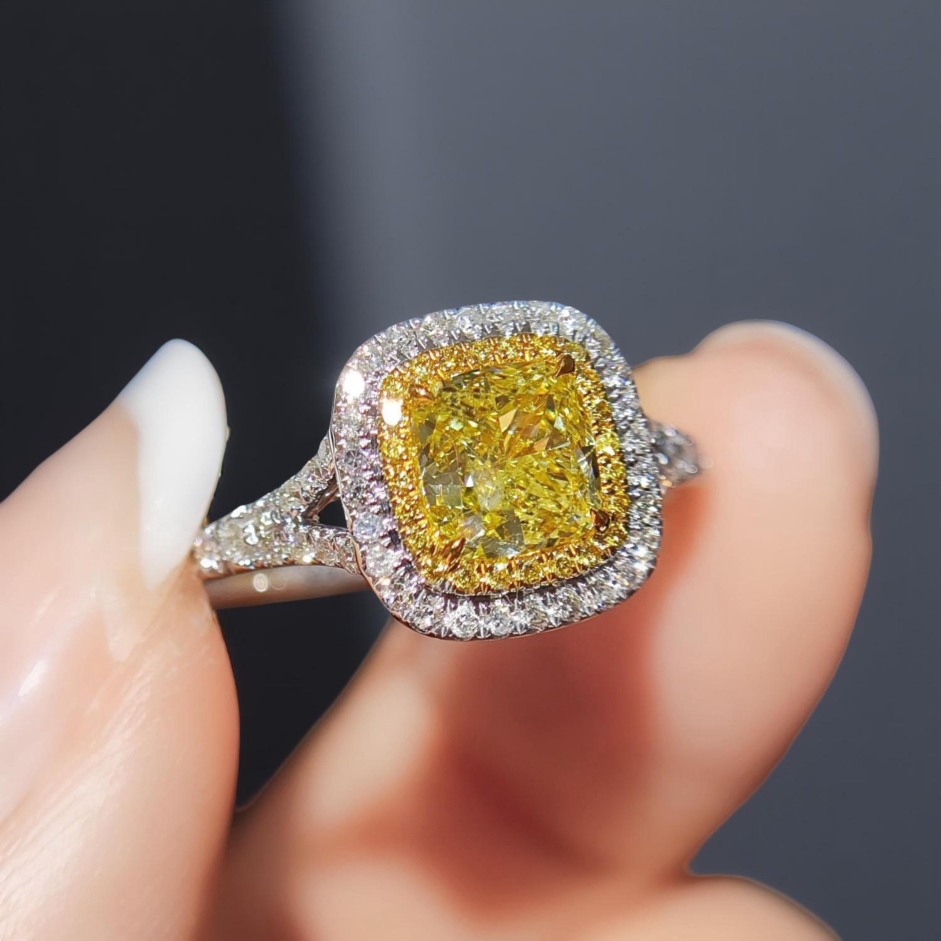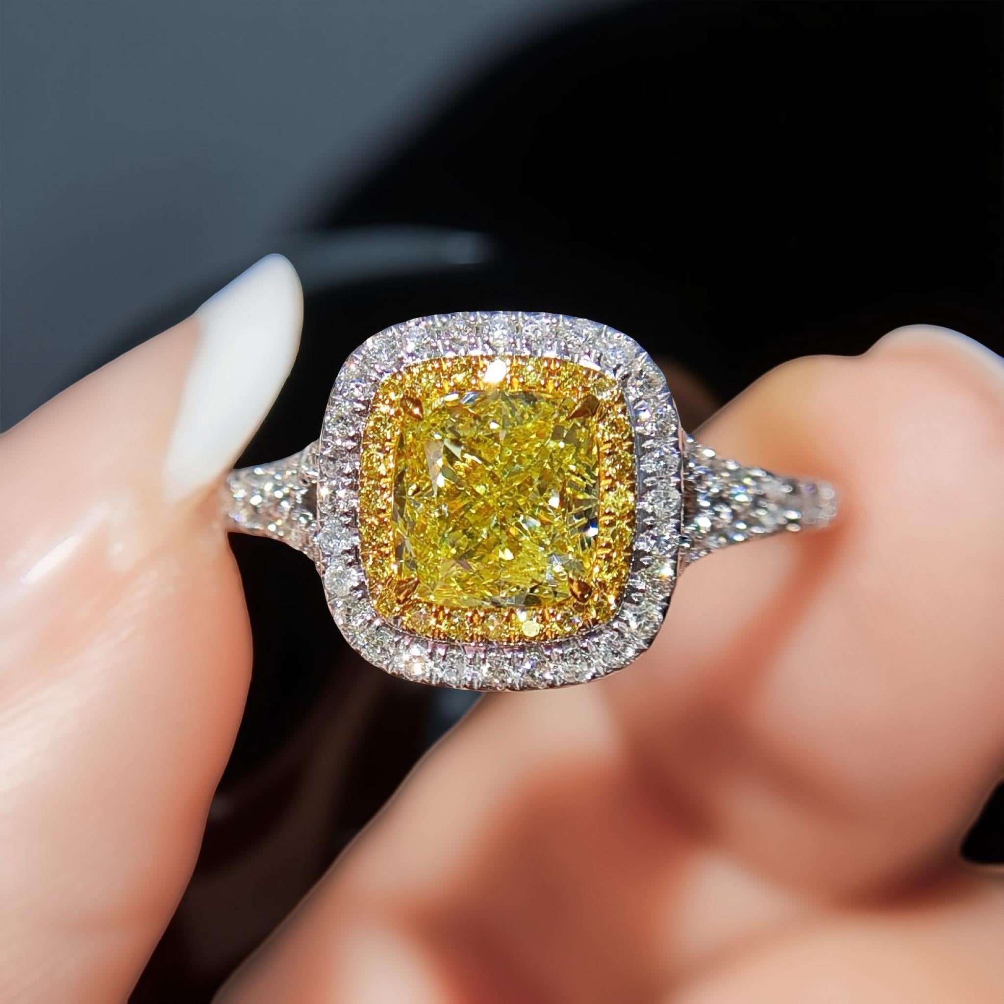 Natural fancy yellow diamonds of this saturation are increasingly rare, making this a future heirloom piece. The vibrant color symbolizes joy, prosperity, and eternal commitment—ideal for marking a milestone engagement, a wedding anniversary, or a once-in-a-lifetime celebration