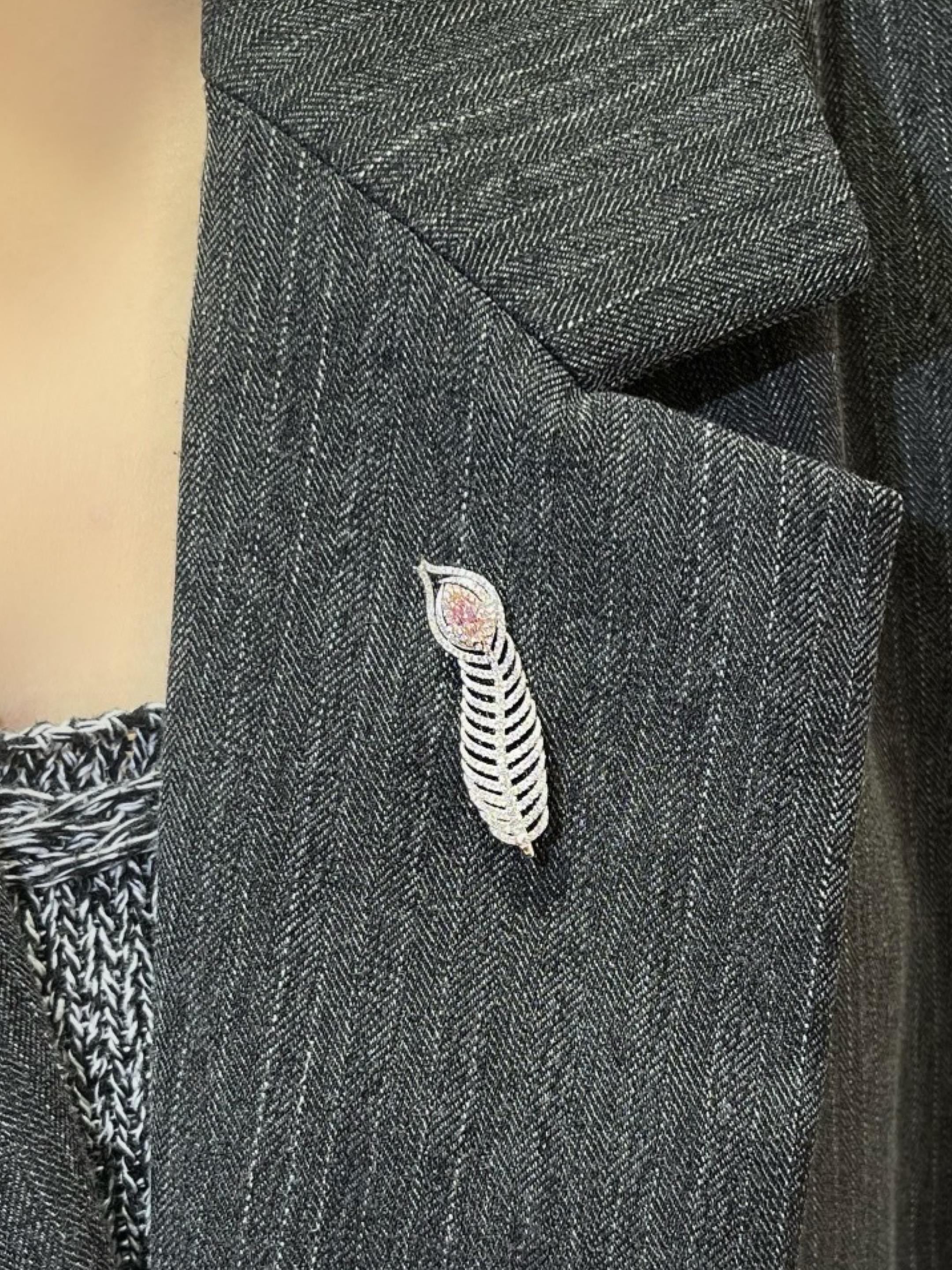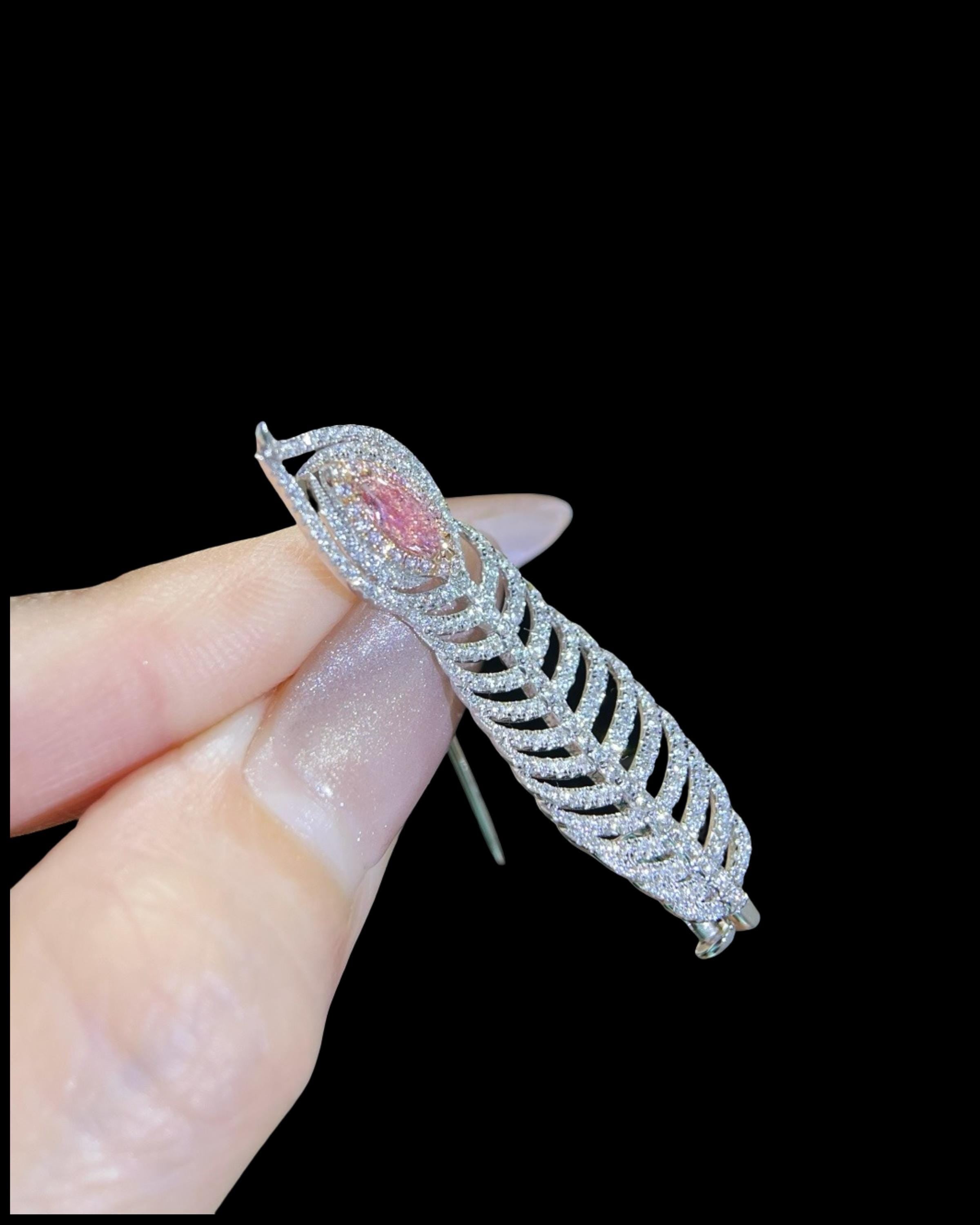 GIA Certified Natural Pink Diamond Feather Pendant Brooch | 0.35ct Marquise VS2