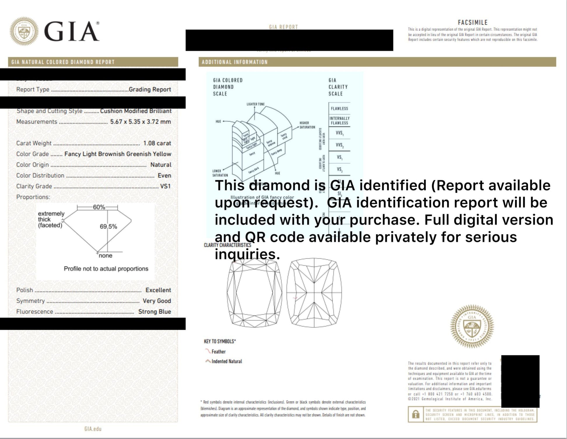 • Main Stone: Natural fancy light brownish greenish yellow diamond