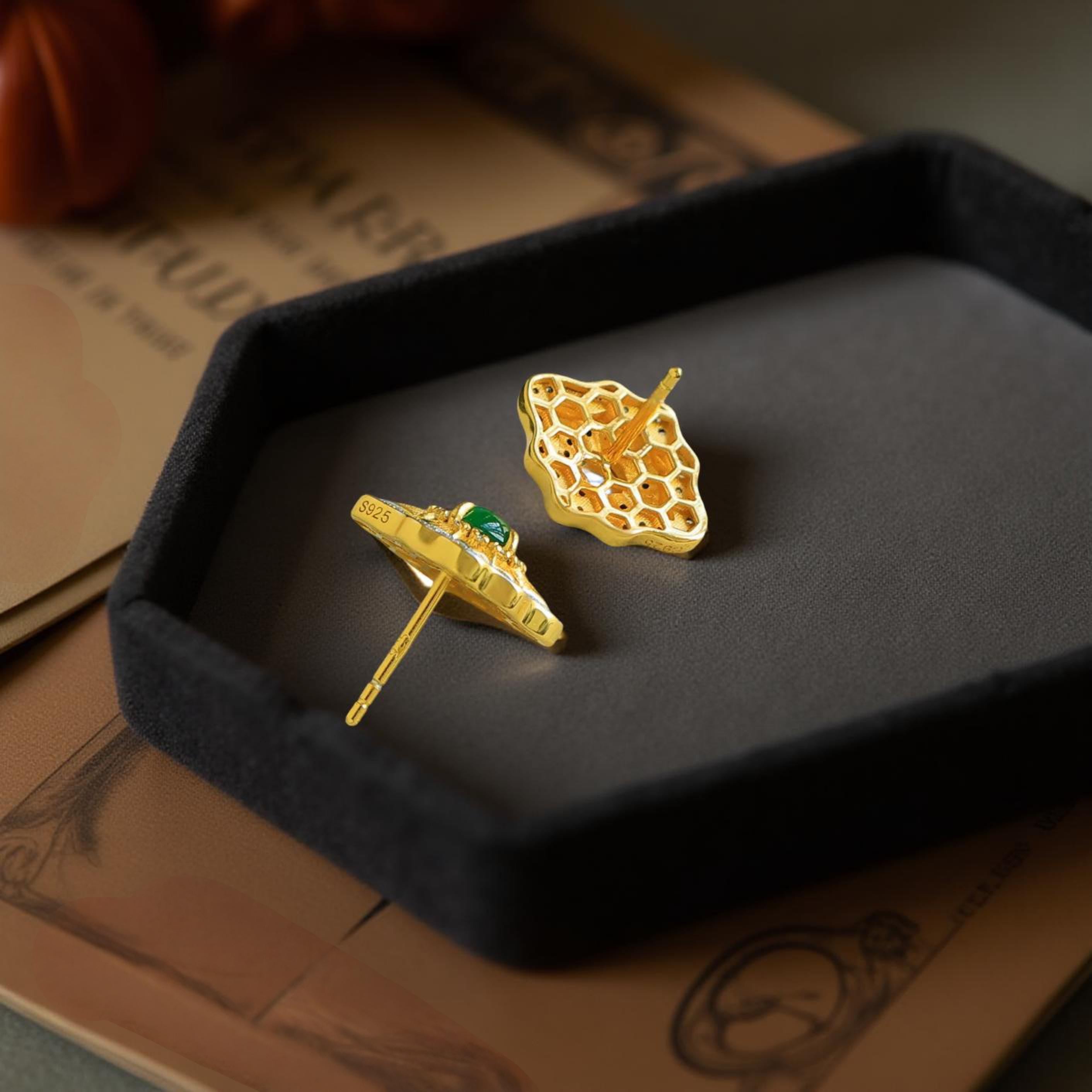 Green Jadeite Jade Earrings | Art Deco Studs | Gift For Her | 18k Gold Vermeil Earrings | Statement Stud Earrings | Quiet Luxury Jewelry