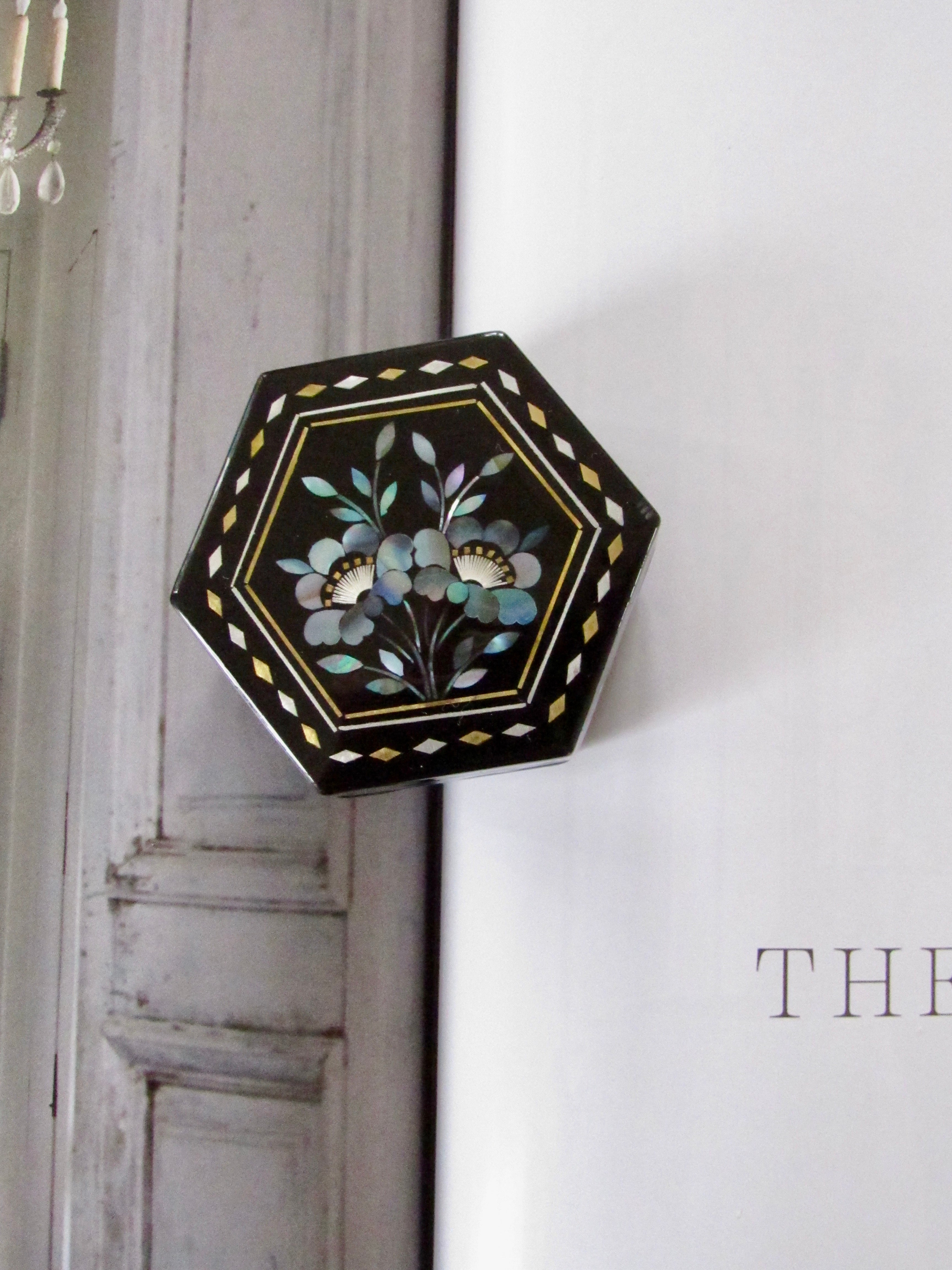 Hexagon Shape Mother of Pearl Lacquer Trinket box