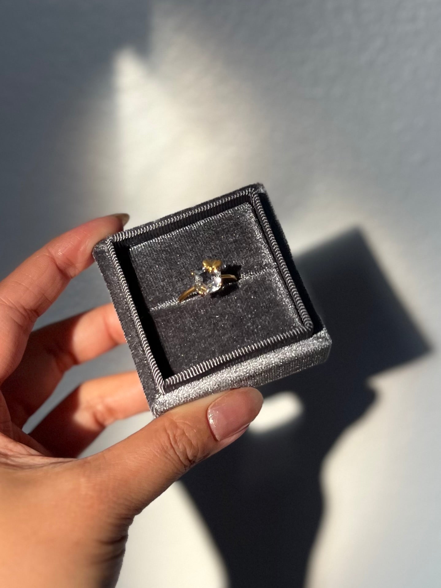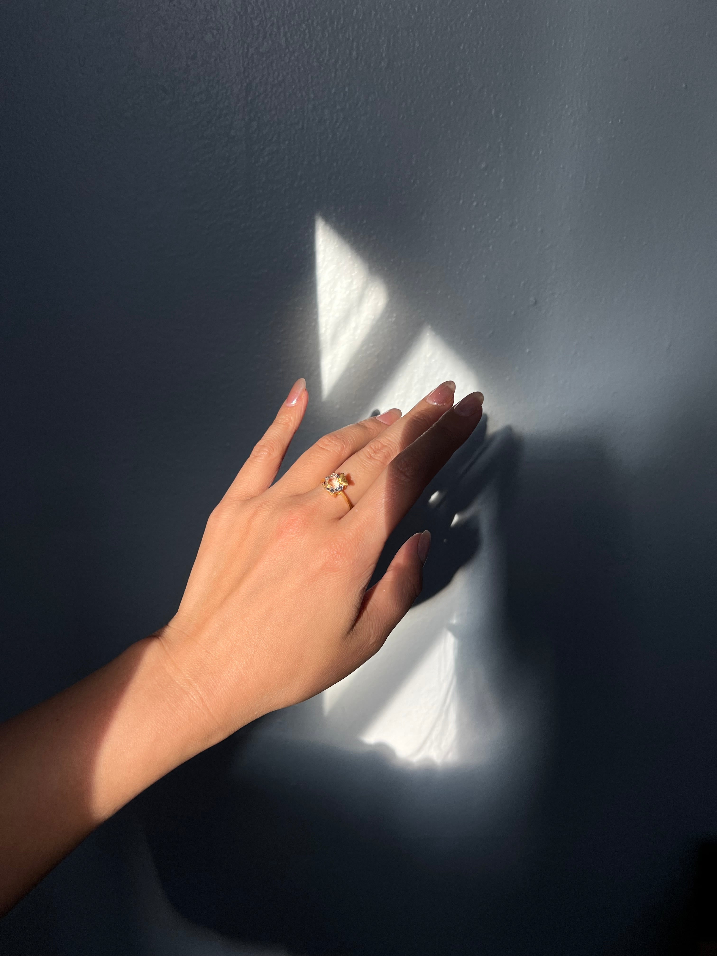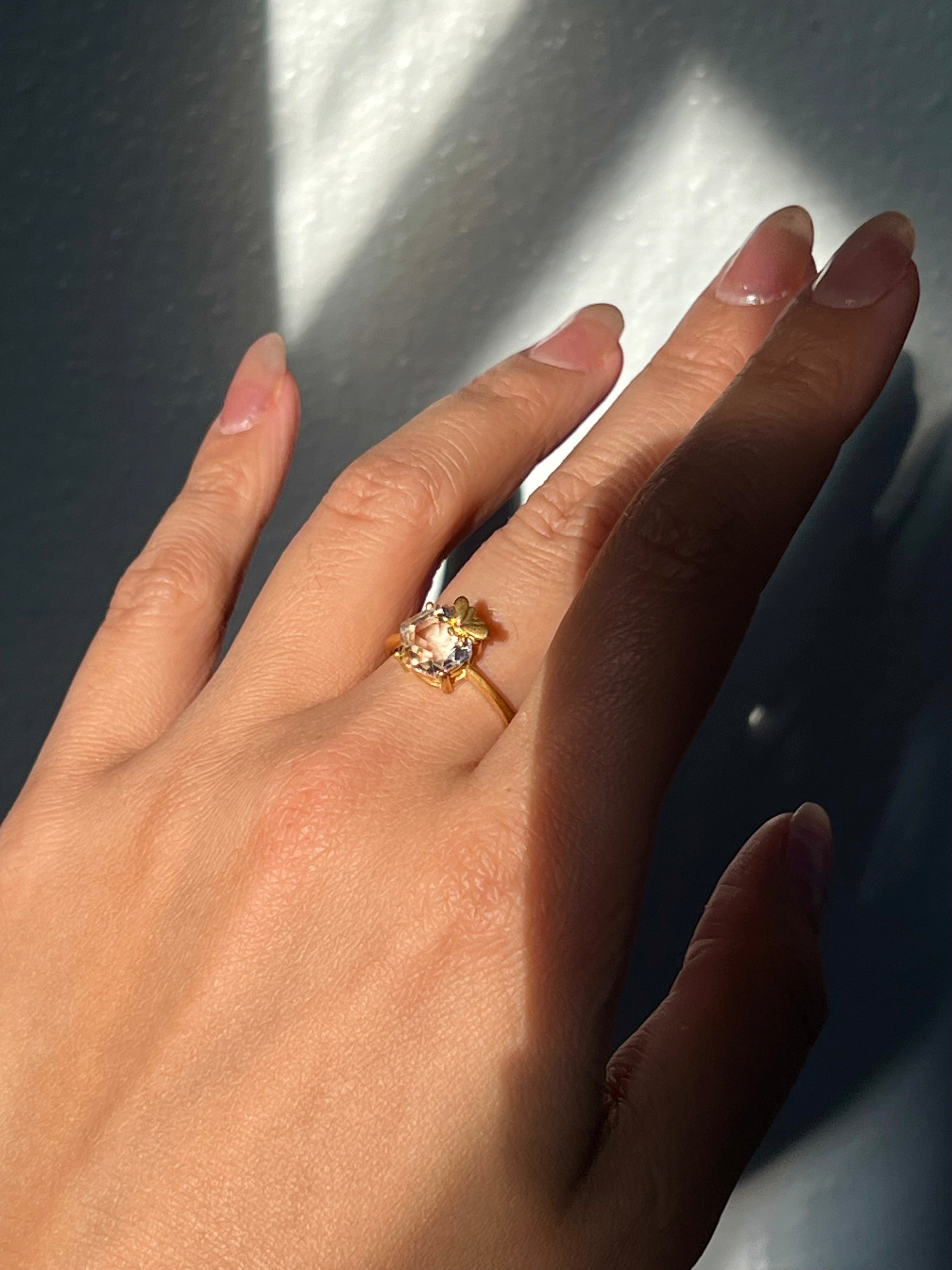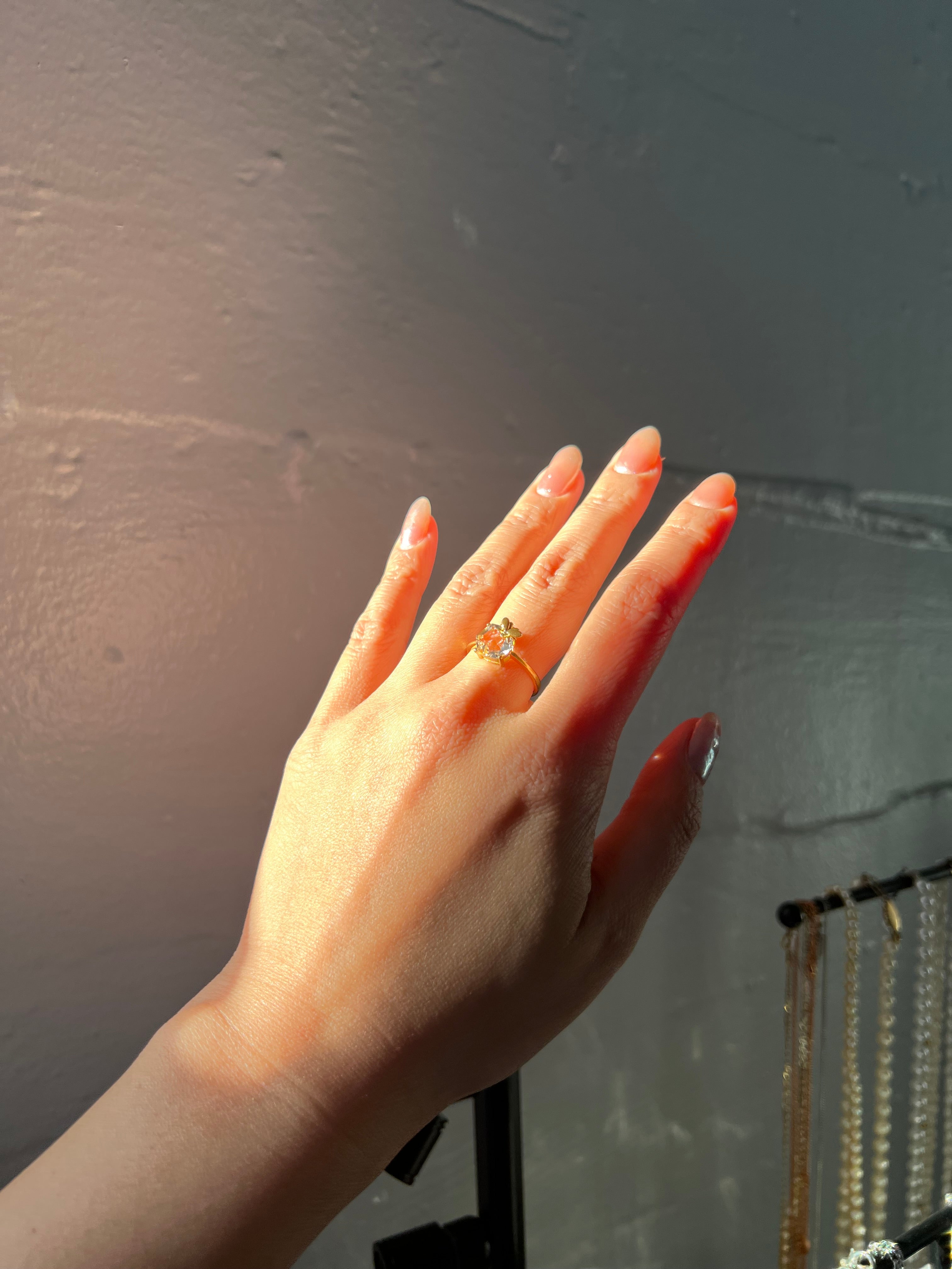 A gentle shimmer. A golden bee. A natural clear quartz cut into a perfect hexagon—just like the heart of a honeycomb. This ring brings quiet luxury to your warm-weather wardrobe, designed to reflect calm, clarity, and effortless style.