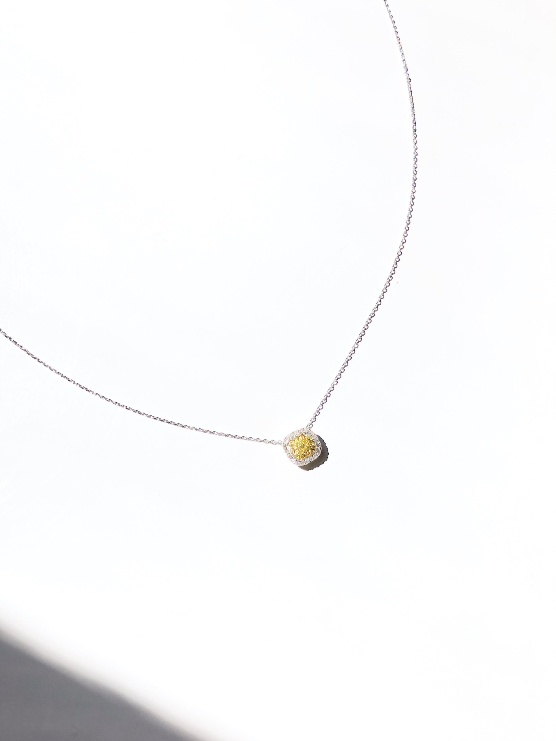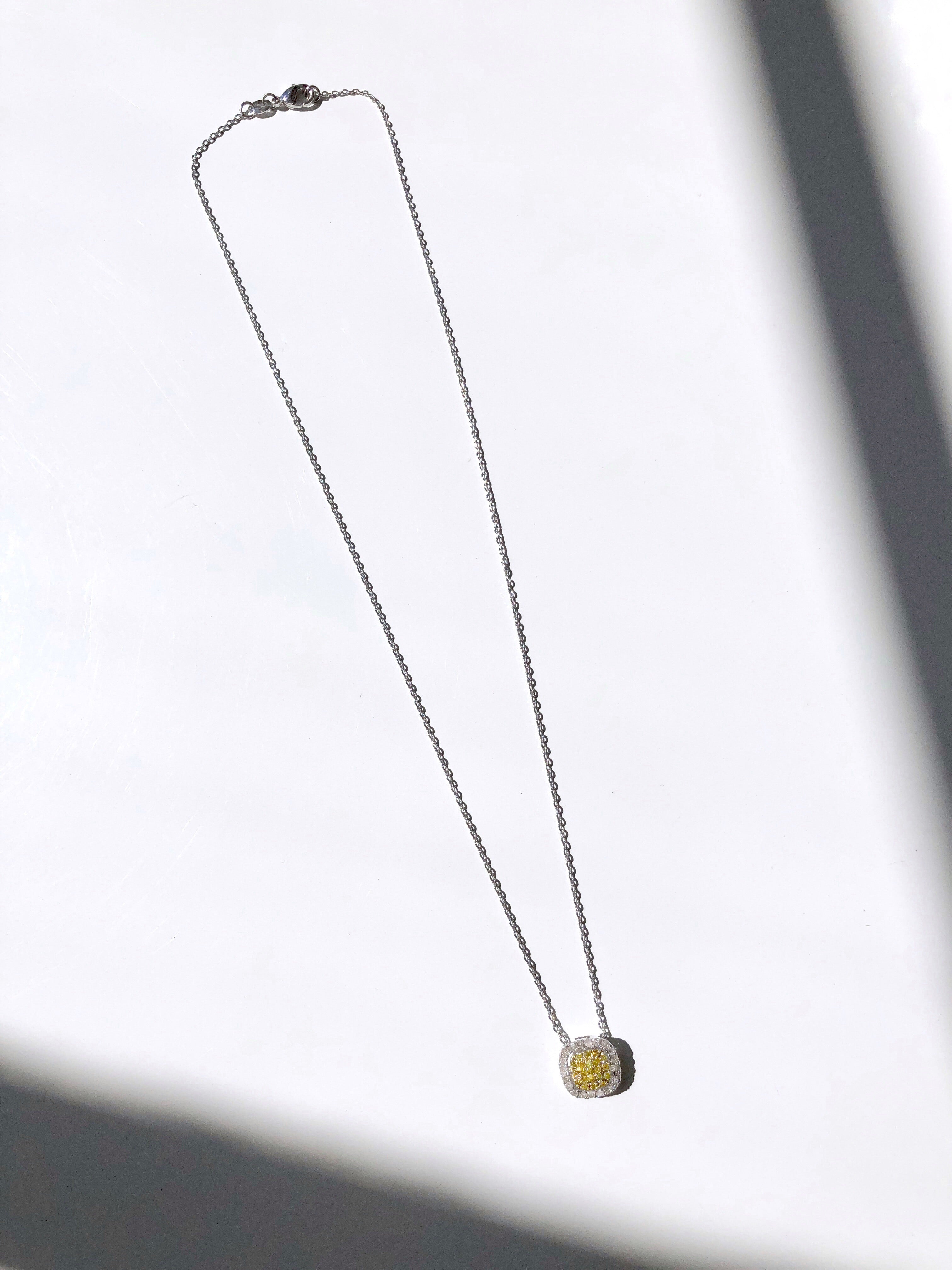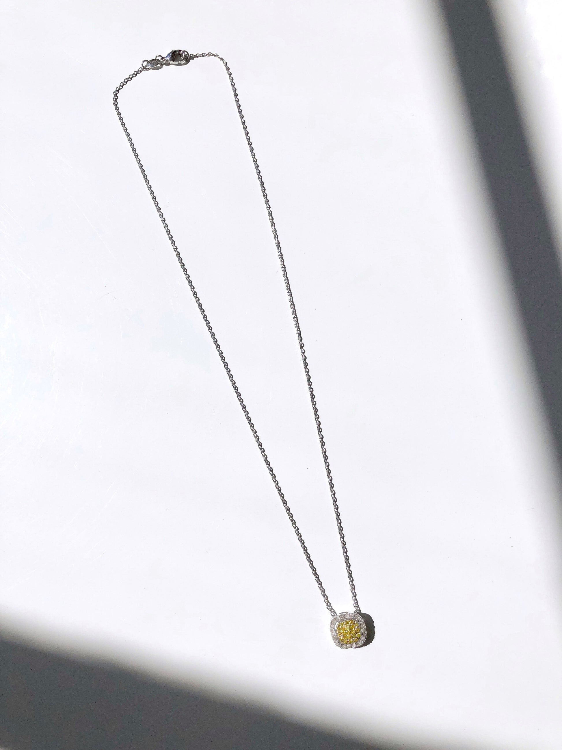 Hand-set honey and white diamonds dazzle in the exquisite honeycomb-inspired cushion setting of this elegant pendant necklace. Its sparkling simplicity and refined design make it perfect for modern layering.