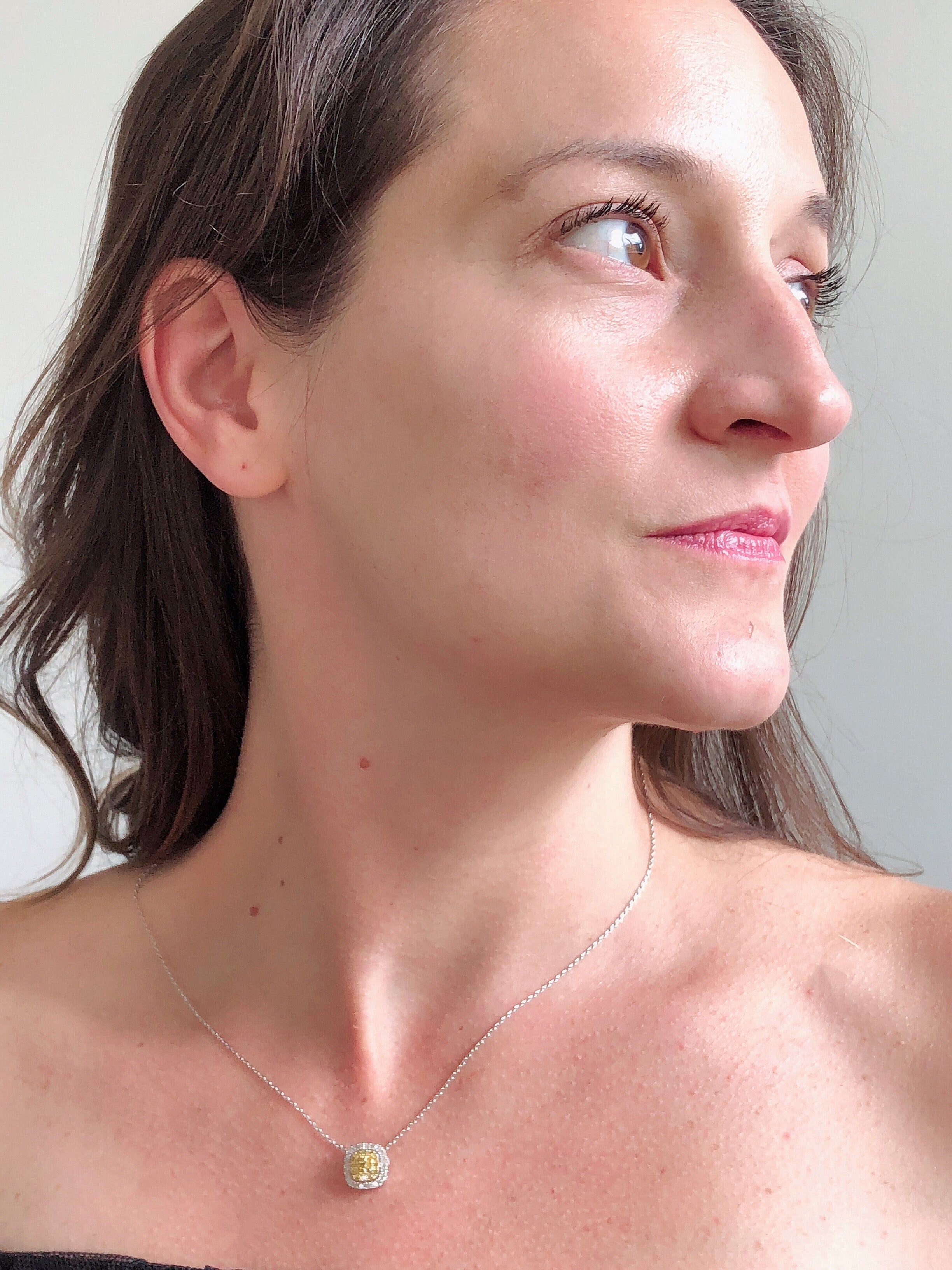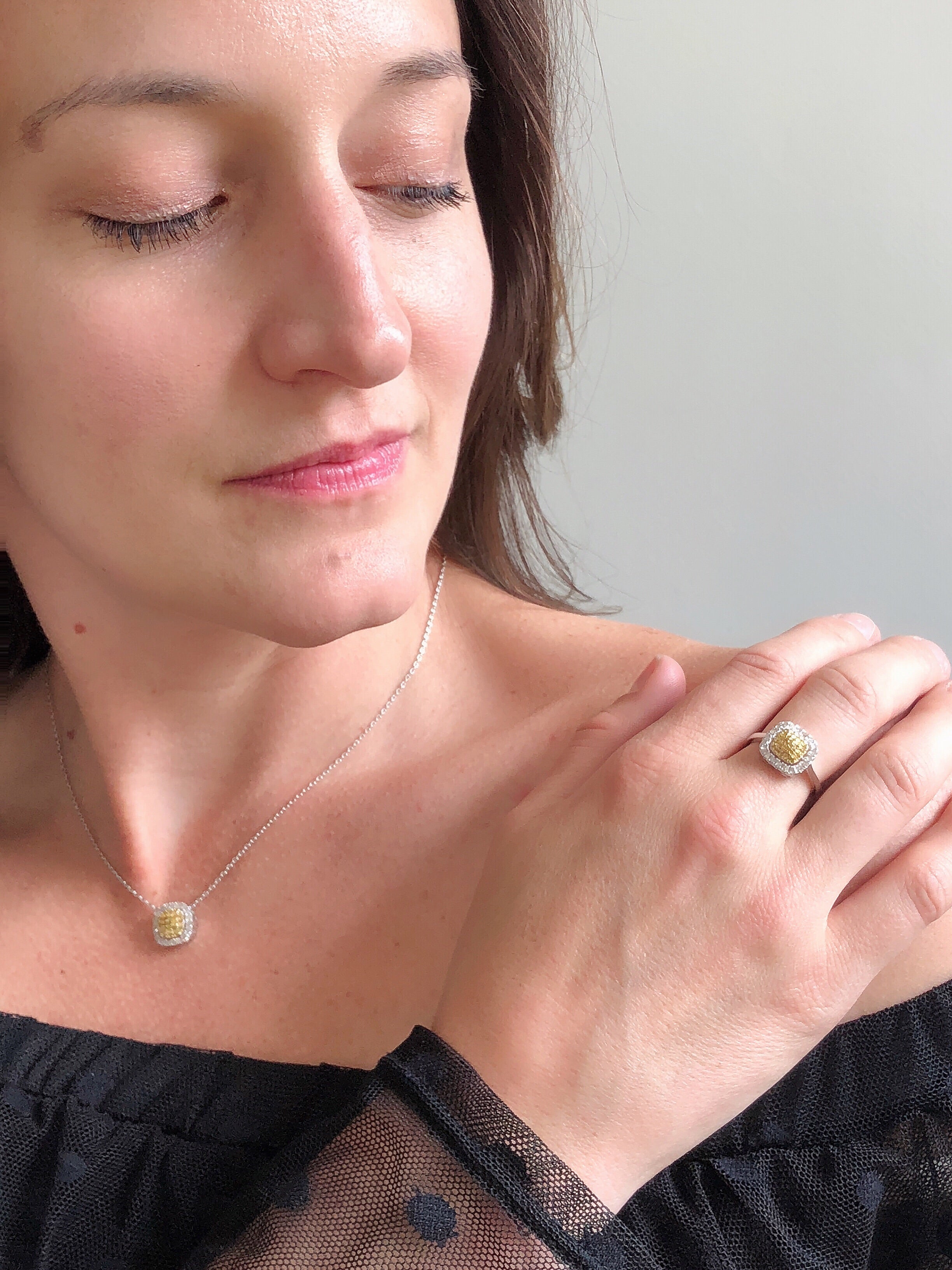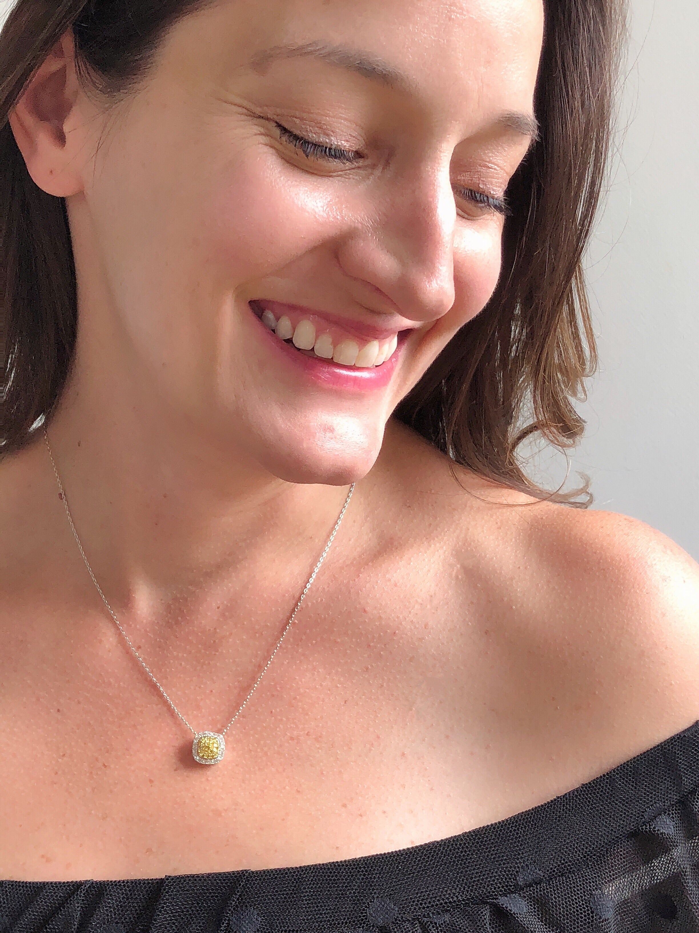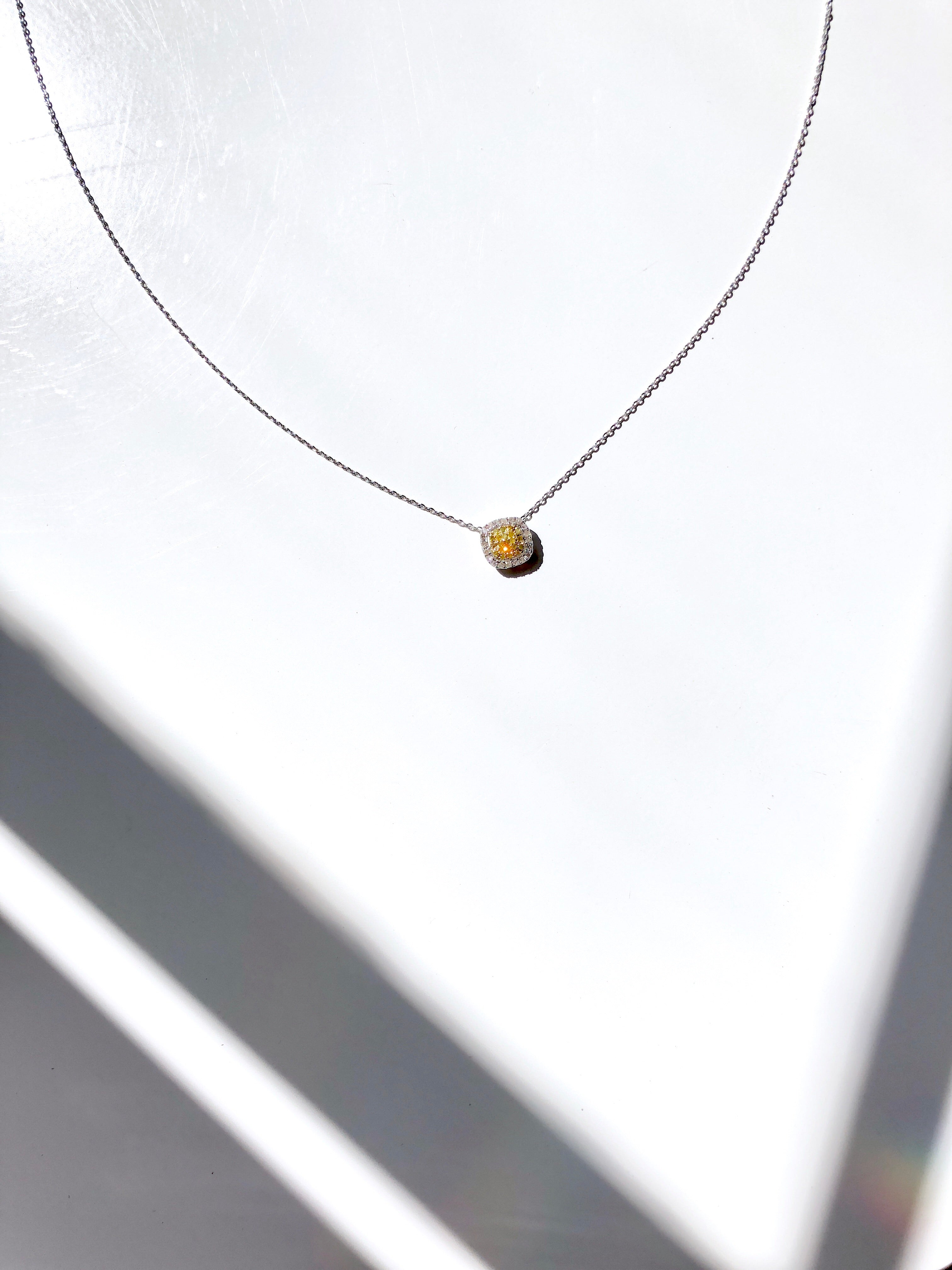 Hand-set honey and white diamonds dazzle in the exquisite honeycomb-inspired cushion setting of this elegant pendant necklace. Its sparkling simplicity and refined design make it perfect for modern layering.